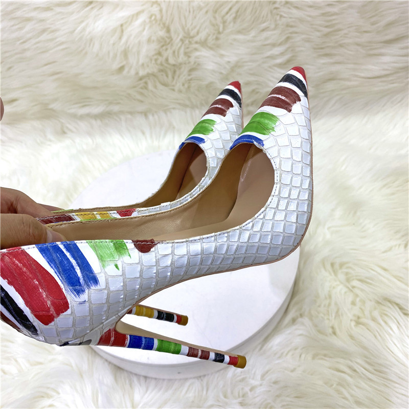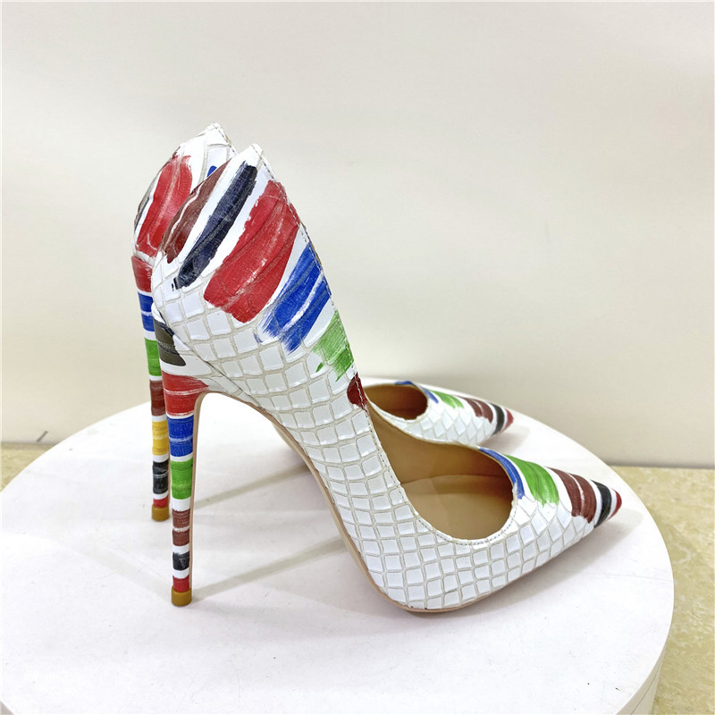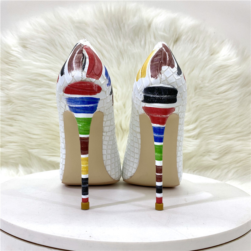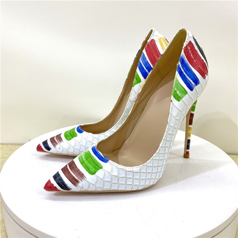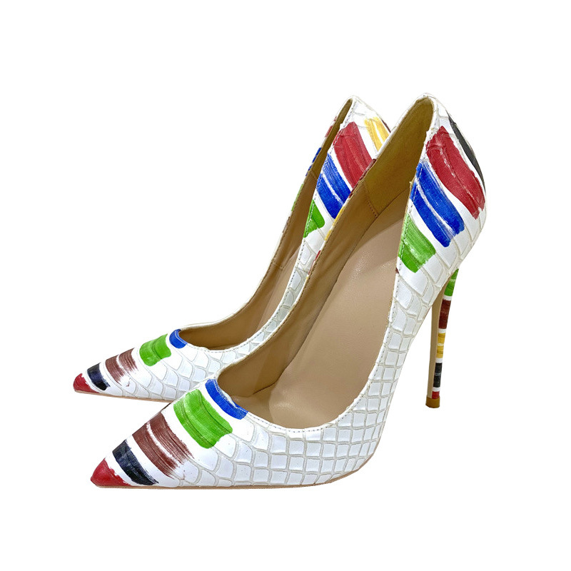 Giày cao gót nữ tính với phần mũi nhọn tinh tế. Sản phẩm có họa tiết vẽ tự do đầy nghệ thuật và vân da rắn độc đáo trên chất liệu. Đế cao mười hai phân cùng gót nhọn mang đến dáng đứng thanh thoát. Dễ dàng kết hợp cùng nhiều trang phục như quần âu hay váy liền. Bạn chỉ cần chọn đúng cỡ và bảo quản nơi khô ráo để sử dụng lâu dài. | Tên sản phẩm: Giày Cao Gót Nữ Mũi Nhọn Gót Nhọn - Giày Dép Nữ | Mã sản phẩm: E9521 - Giá: 1.350.000đ | Mã nhà sản xuất: HURYNG-G04Hình ảnh sản phẩm