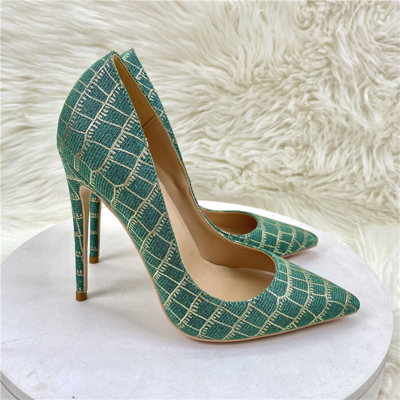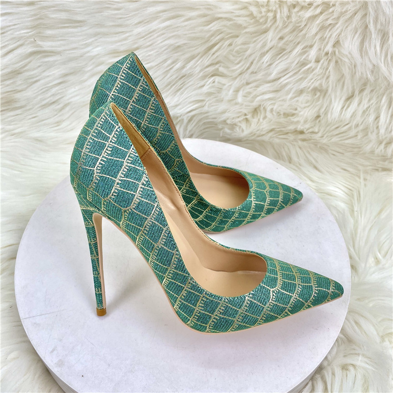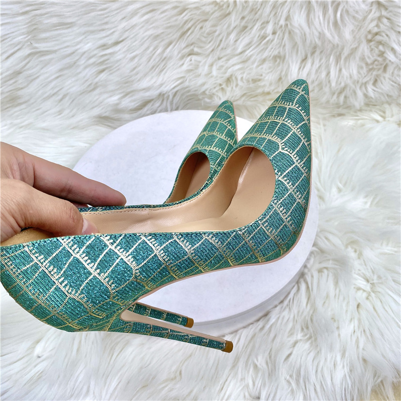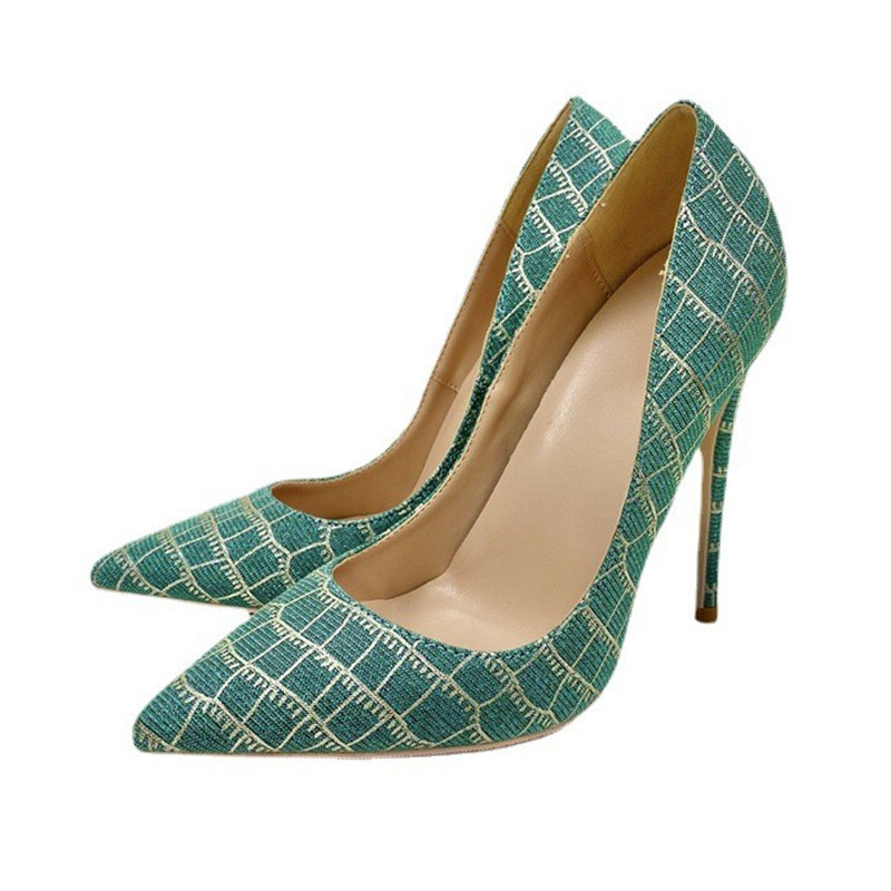 Đôi giày này có phần mũi nhọn và gót nhọn cao mười hai phân, tạo dáng thanh thoát. Chất liệu vải kẻ ô màu xanh nổi bật với điểm nhấn là những hạt kim tuyến lấp lánh phủ trên bề mặt. Kiểu dáng cổ thấp, phù hợp để mang trong các buổi tiệc hay sự kiện. Khi sử dụng, bạn nên chọn size vừa vặn với chân và kết hợp cùng những bộ trang phục dự tiệc để tôn lên vẻ đẹp. | Tên sản phẩm: Giày Cao Gót Nữ Mũi Nhọn Gót Nhọn Kẻ Caro - Giày Dép Nữ | Mã sản phẩm: E9543 - Giá: 1.250.000đ | Mã nhà sản xuất: HURYNG-G04Hình ảnh sản phẩm