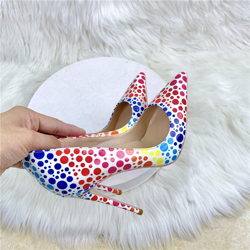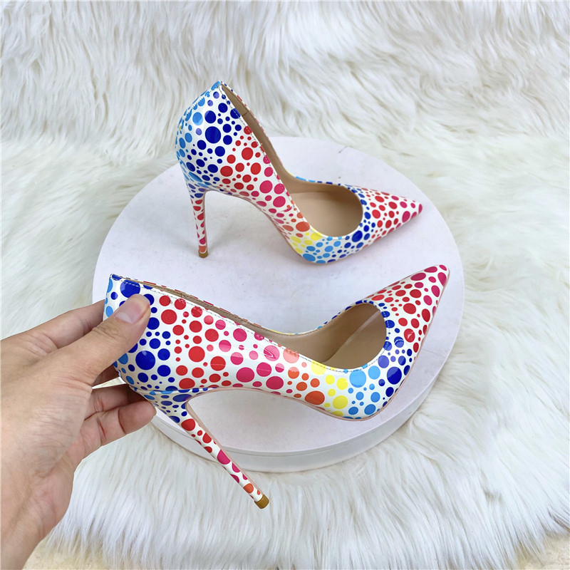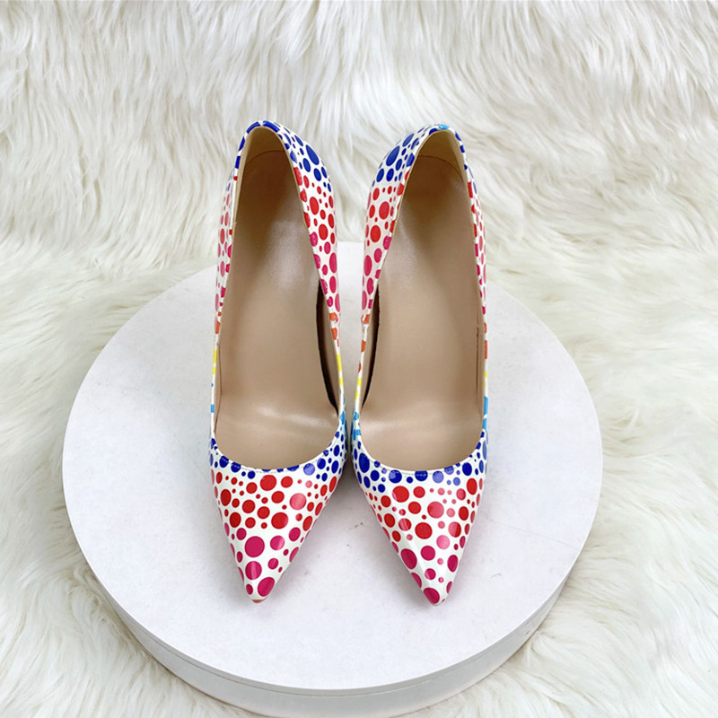 Đôi giày này có phần mũi nhọn và gót nhọn thanh thoát, chiều cao gót vừa phải, tạo dáng đứng rất đẹp. Mẫu giày được điểm xuyết họa tiết sóng nước nhiều màu sắc tinh tế, mang đến vẻ ngoại hình nổi bật nhưng vẫn rất dễ phối đồ. Kiểu dáng cổ thấp ôm vừa chân, phù hợp để mang trong nhiều dịp khác nhau. Bạn có thể dùng nó để đi làm, dự tiệc hoặc gặp gỡ bạn bè, đều rất phù hợp. | Tên sản phẩm: Giày Cao Gót Nữ Mũi Nhọn Gót Nhọn - Giày Dép Nữ | Mã sản phẩm: E9559 - Giá: 1.250.000đ | Mã nhà sản xuất: HURYNG-G04Hình ảnh sản phẩm
