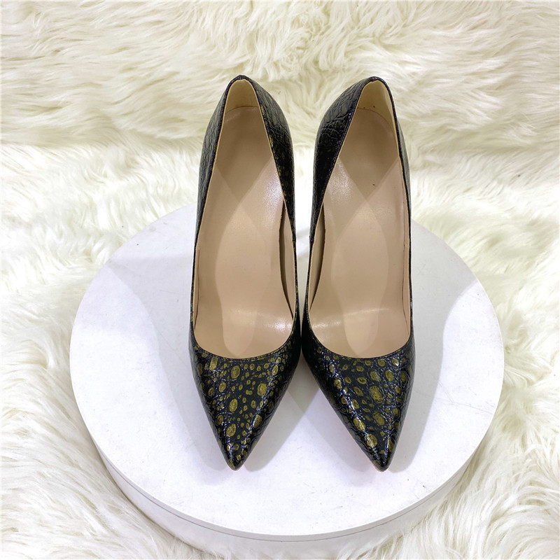 Giày cao gót kiểu dáng mới lấy cảm hứng từ hoa văn da rắn cổ điển. Phần mũi nhọn thanh thoát kết hợp cùng gót nhọn cao 12cm, tôn dáng tối đa. Thiết kế cổ thuyền nhẹ nhàng ôm sát bàn chân, dễ dàng phối cùng nhiều trang phục khác nhau. Sản phẩm phù hợp mang trong các dịp gặp mặt, dạo phố hay tiệc tùng. Khi sử dụng nên chọn size vừa vặn và hạn chế di chuyển lâu trên bề mặt gồ ghề. | Tên sản phẩm: Giày Cao Gót Nữ Mũi Nhọn Gót Nhọn Phục Cổ Cổ Điển - Giày Dép Nữ | Mã sản phẩm: E9566 - Giá: 1.250.000đ | Mã nhà sản xuất: HURYNG-G04Hình ảnh sản phẩm