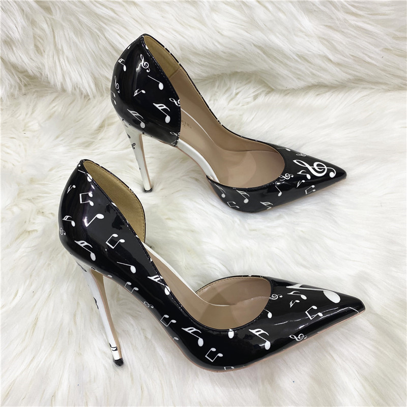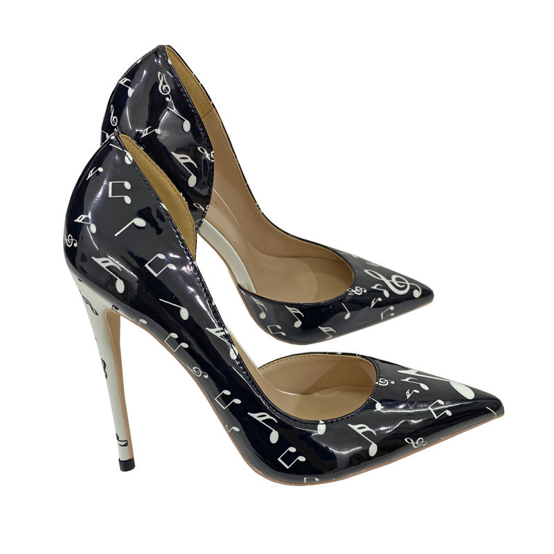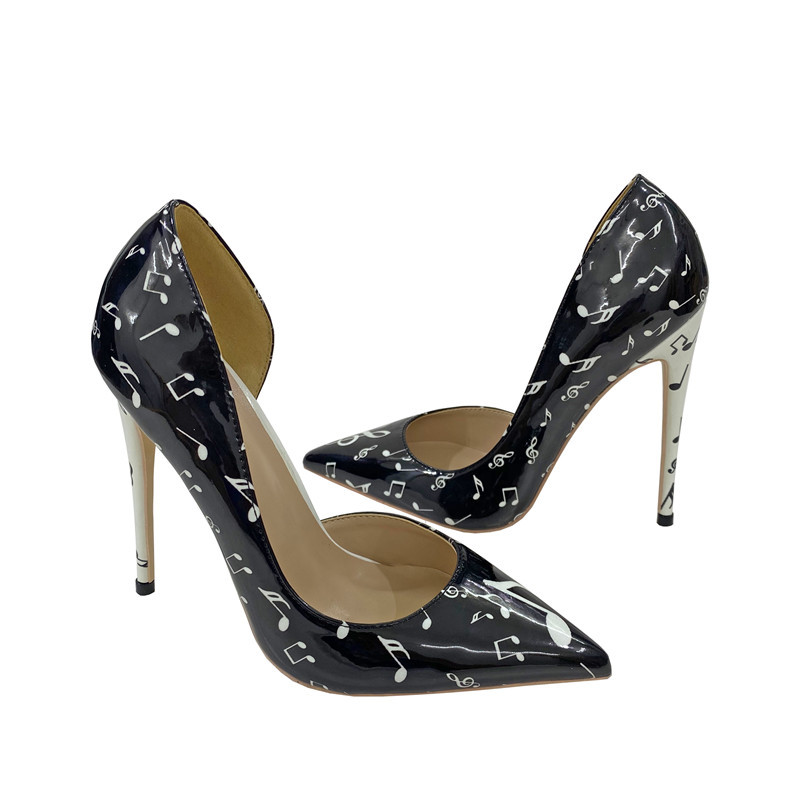 Giày cao gót nữ tính với kiểu dáng mũi nhọn thanh lịch. Phần thiết kế khoét hờ hai bên thân giày tạo điểm nhấn ấn tượng, kết hợp họa tiết vẽ tay độc đáo trên chất liệu da đen. Sản phẩm sử dụng gót nhọn cao 12cm, phù hợp cho những buổi tiệc hoặc sự kiện. Khi mang, bạn nên chọn size vừa vặn với chân và kết hợp cùng trang phục dạ hội, đi làm để tôn lên vẻ đẹp quyến rũ. | Tên sản phẩm: Giày Cao Gót Nữ Mũi Nhọn Gót Nhọn - Giày Dép Nữ | Mã sản phẩm: E9568 - Giá: 1.300.000đ | Mã nhà sản xuất: HURYNG-G04Hình ảnh sản phẩm