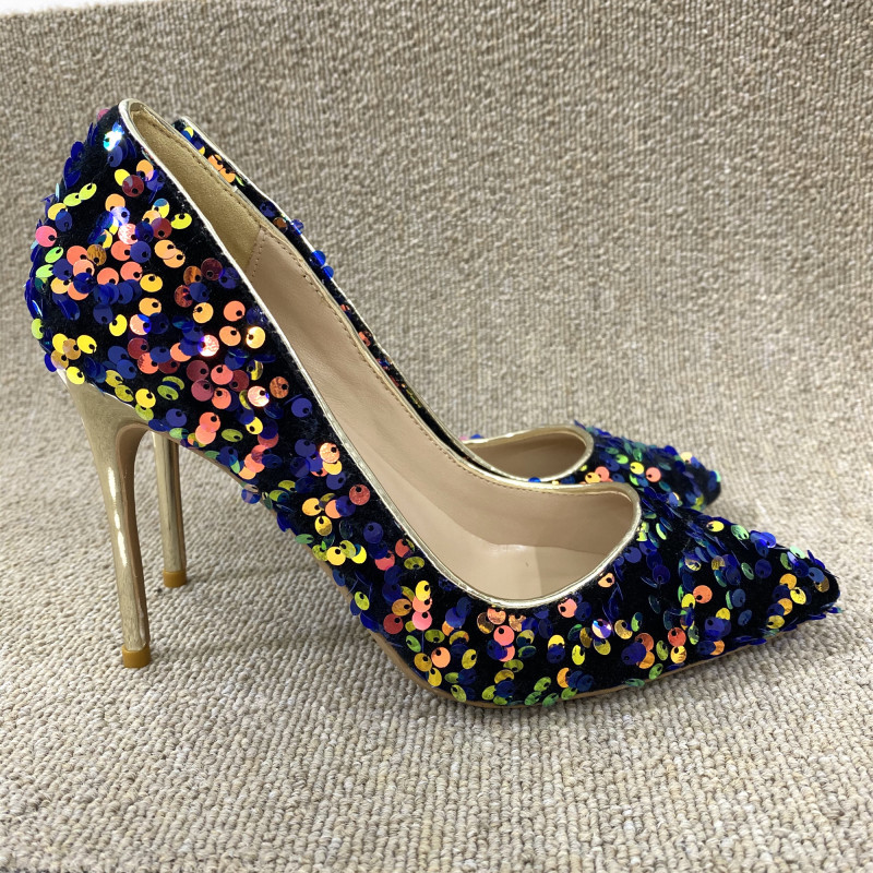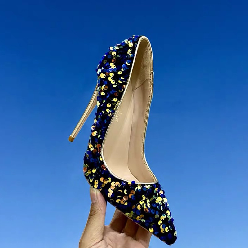 Giày cao gót nữ với phần mũi nhọn thanh thoát, gót cao mười hai phân. Điểm nhấn nổi bật là những hạt ngũ sắc lấp lánh được đính tinh xảo khắp thân giày, tạo nên vẻ đẹp thời thượng và quyến rũ. Kiểu dáng cổ thấp ôm gọn bàn chân, phù hợp để mang trong nhiều dịp khác nhau. Khi sử dụng, bạn nên chọn size vừa vặn và kết hợp cùng những bộ trang phục tôn vinh vẻ nữ tính. | Tên sản phẩm: Giày Cao Gót Nữ Mũi Nhọn Gót Nhọn - Giày Dép Nữ | Mã sản phẩm: E9570 - Giá: 1.300.000đ | Mã nhà sản xuất: HURYNG-G04Hình ảnh sản phẩm