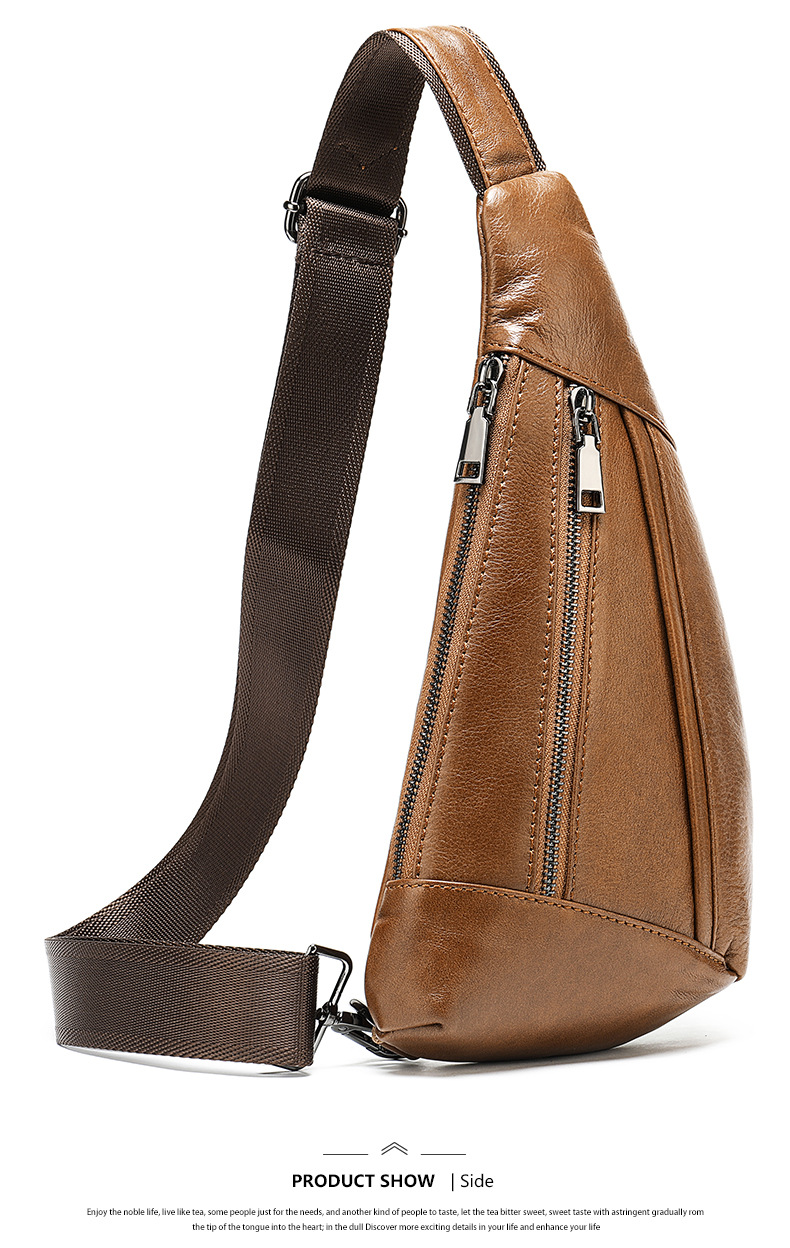 Chiếc túi này được làm từ chất liệu da mềm mại, dáng đeo chéo tiện lợi dành cho nam giới. Thiết kế trẻ trung với nhiều ngăn nhỏ giúp đựng ví, điện thoại và các vật dụng cá nhân gọn gàng. Bạn có thể điều chỉnh dây đeo để đeo vắt v hoặc đeo chéo trước ngực tùy thích. Sản phẩm phù hợp cho những chuyến đi chơi, dạo phố hay đi làm hàng ngày. | Tên sản phẩm: Túi Đeo Vai Nam Chất Liệu Da Bò - Túi Xách Ví Nam | Mã sản phẩm: G0723 - Giá: 1.000.000đ | Mã nhà sản xuất: GUDEA-G03Hình ảnh sản phẩm
