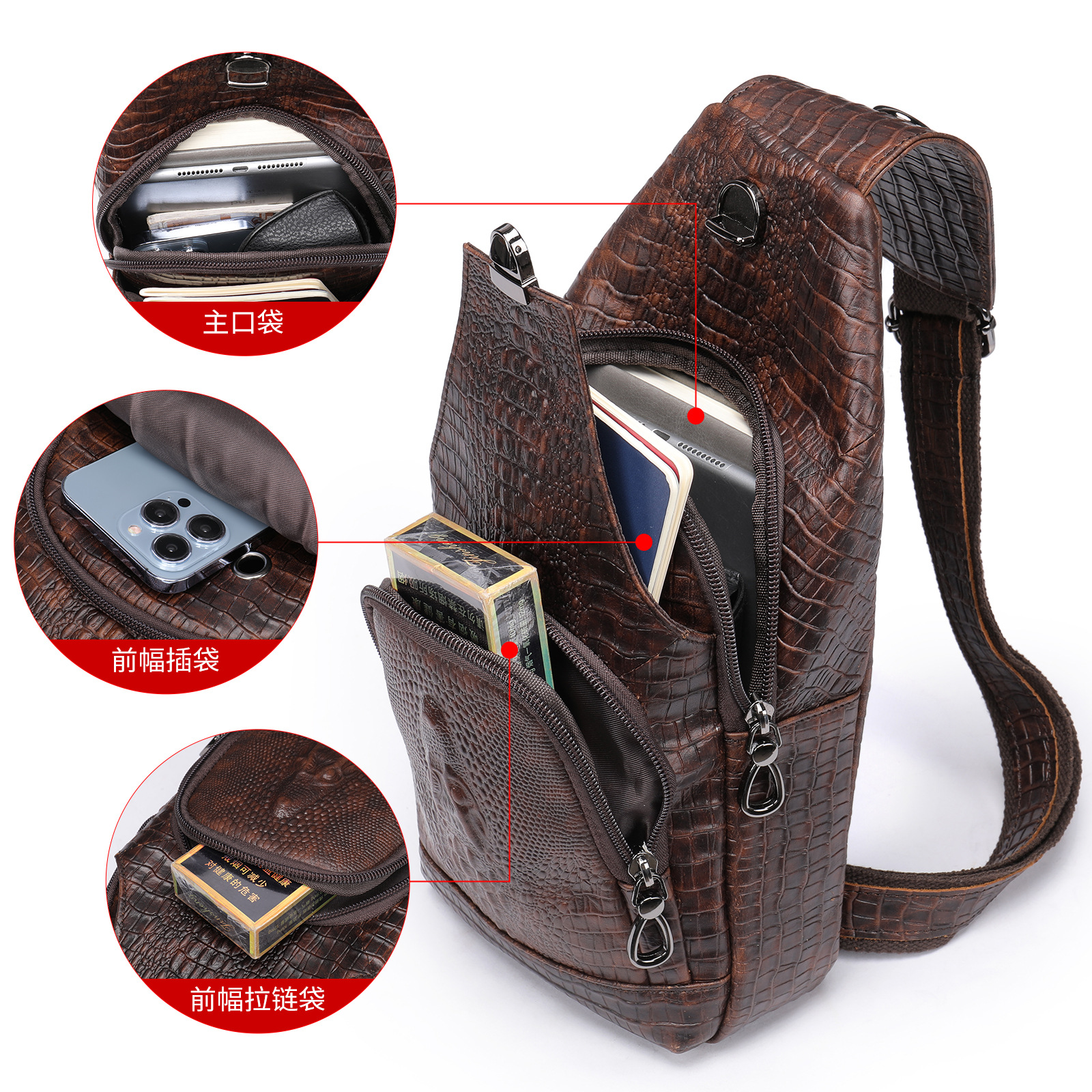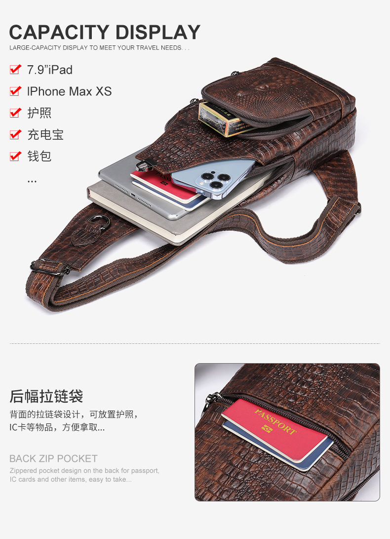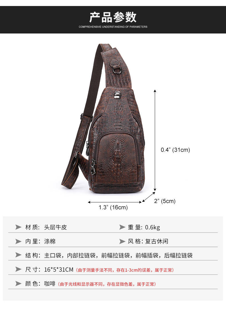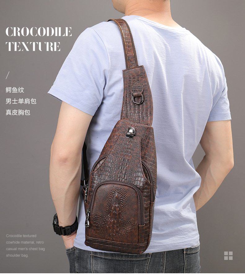 Chiếc túi đeo chéo dành cho nam, kiểu dáng thể thao năng động với bề mặt vân da cá sấu tinh tế. Thiết kế này rất phù hợp cho việc di chuyển trong công việc hằng ngày. Túi có nhiều ngăn tiện lợi, dễ dàng sắp xếp điện thoại, ví và các vật dụng cá nhân khác. Khi sử dụng, bạn chỉ cần đeo túi vắt chéo qua người hoặc đeo trước ngực, điều chỉnh dây đeo cho vừa vặn là được. | Tên sản phẩm: Túi Xách Nam Vân Da Cá Sấu - Túi Xách Ví Nam | Mã sản phẩm: G0786 - Giá: 1.060.000đ | Mã nhà sản xuất: GUDEA-G03Hình ảnh sản phẩm