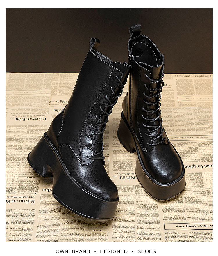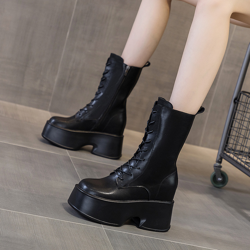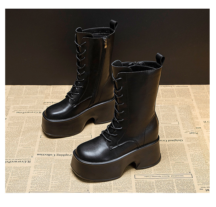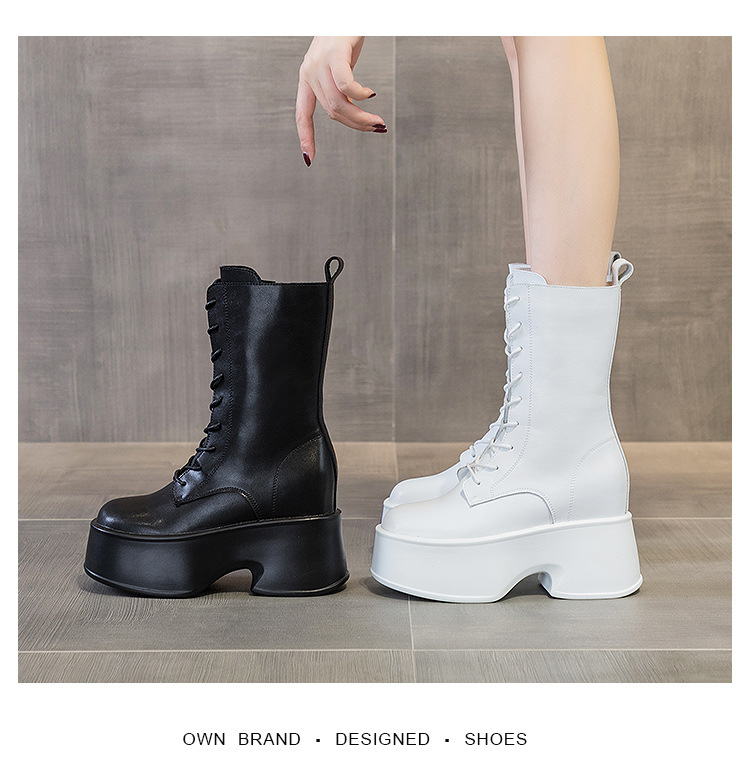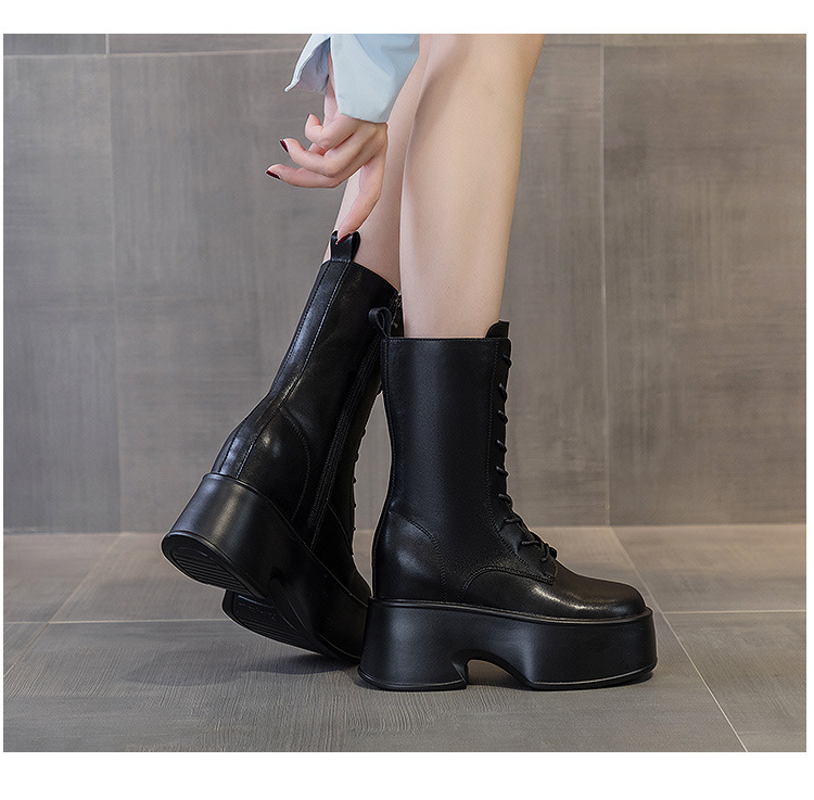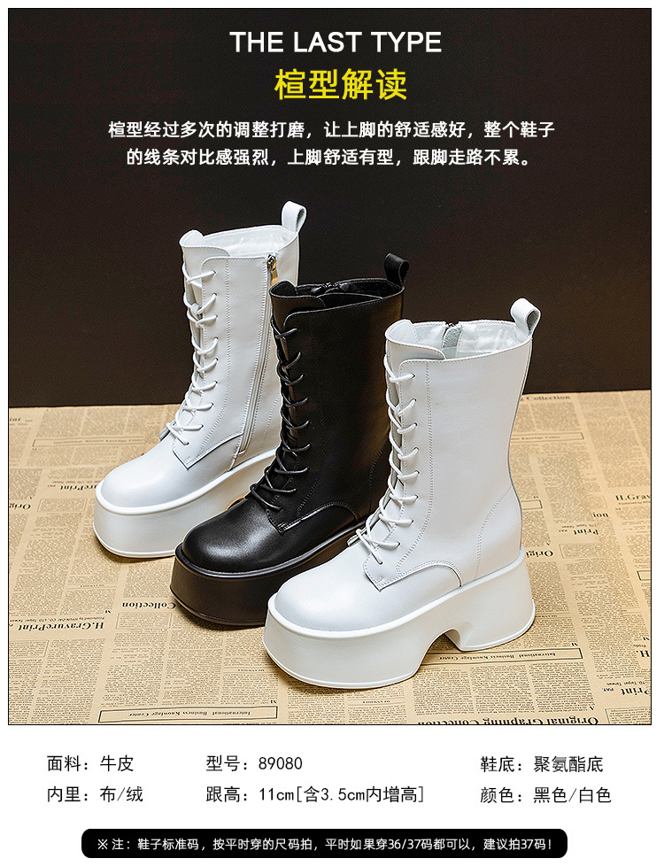 Đôi bốt này có phần đế dày và gót thấp vững chãi, bên trong được thiết kế thêm lớp lót giúp tăng chiều cao một cách tự nhiên. Kiểu dáng ống ngang bắp chân, phong cách đơn giản, dễ dàng phối hợp với nhiều trang phục khác nhau như quần jeans hay váy. Chất liệu bền đẹp, phù hợp để sử dụng trong những tháng tiết trời mát mẻ. Bạn có thể mang chúng hàng ngày cho các hoạt động đi làm, đi học hay dạo phố. | Tên sản phẩm: Cao Gót Nữ Gót Vuông Tăng Chiều Cao Đế Cao Hàng Mùa Xuân Thu Đông - Giày Dép Nữ | Mã sản phẩm: G0822 - Giá: 1.220.000đ | Mã nhà sản xuất: WERYAN-G04Hình ảnh sản phẩm