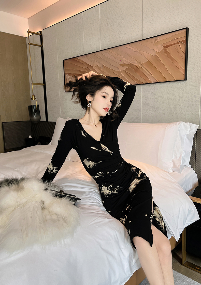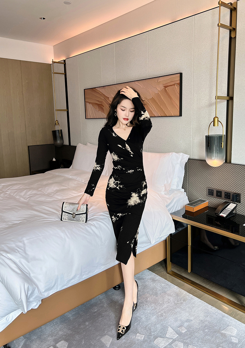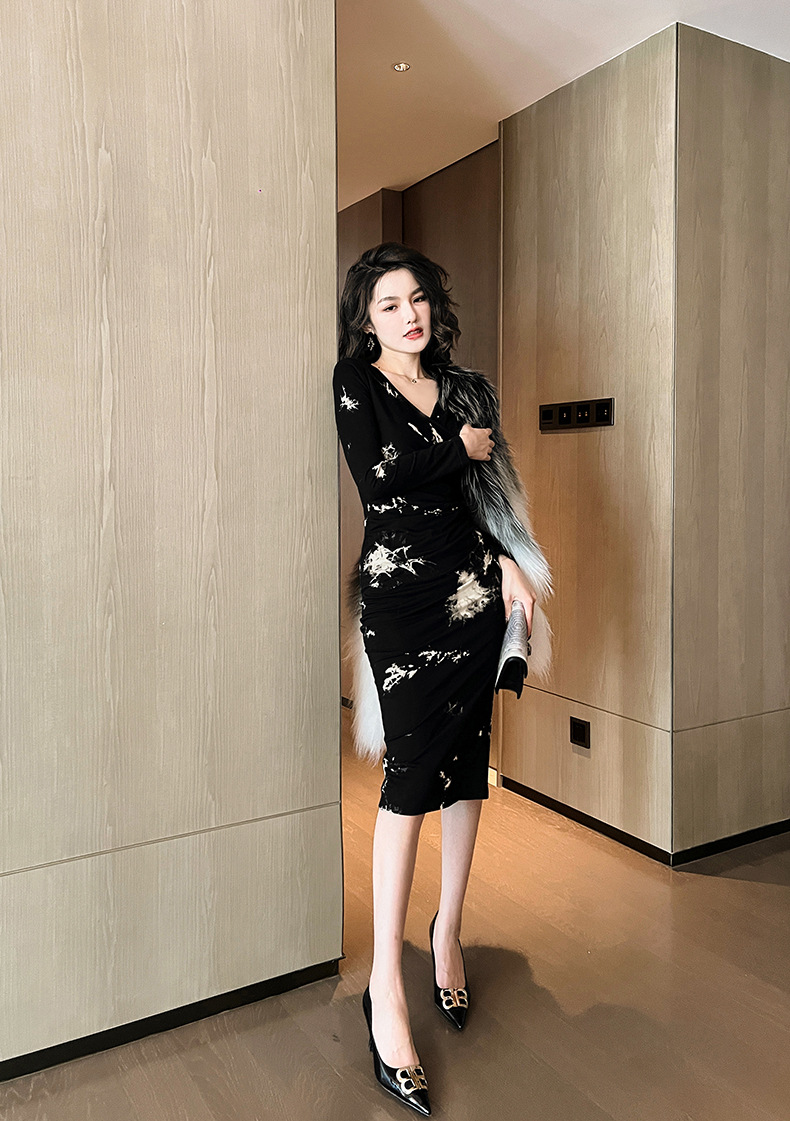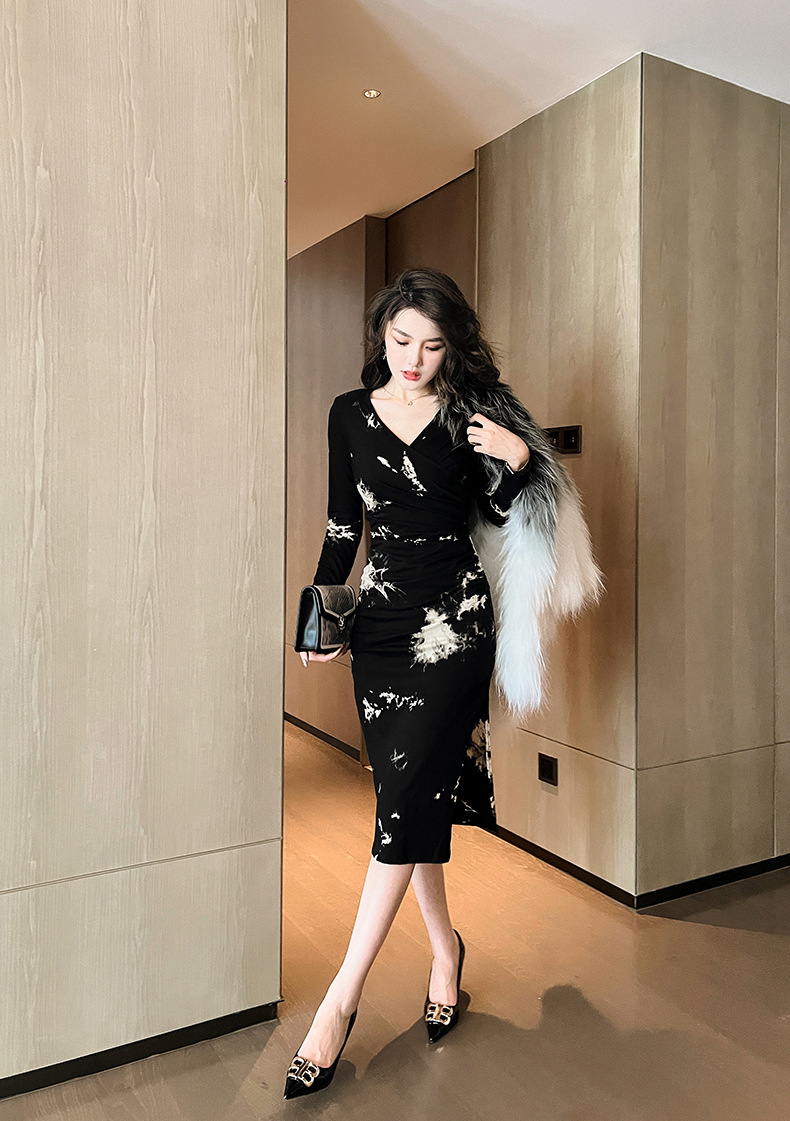 Chiếc đầm dáng ôm dành cho nữ, điểm nhấn là cổ chữ V tạo nên nét cổ điển. Họa tiết in nổi bật trên nền vải dài tay, kiểu dáng ôm sát phần eo và bó nhẹ ở mông. Sản phẩm thích hợp để mặc nhiều lớp bên trong hoặc diện ngoài cùng trong tiết trời mát mẻ. Dễ dàng phối cùng giày cao gót hay balo để tạo nên những phong cách khác nhau. | Tên sản phẩm: Váy Đầm Liền Thân Dáng Dài Nữ Dáng Ôm Họa Tiết Hoa Cổ Chữ V Hàng Mùa Xuân Thu Đông Phục Cổ Cổ Điển - Thời Trang Nữ | Mã sản phẩm: G1565 - Giá: 880.000đ | Mã nhà sản xuất: CHDG-G03Hình ảnh sản phẩm