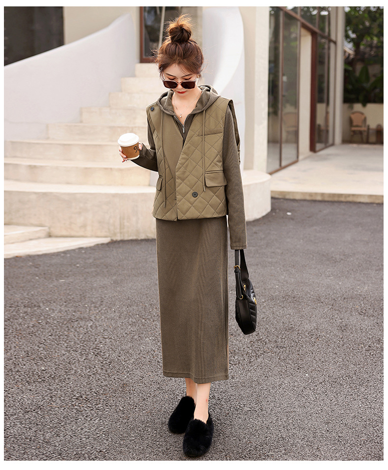 Bộ trang phục hai mảnh này gồm áo khoác dạng vét và đầm dài tay, phù hợp cho thời tiết mát mẻ. Chất vải dệt kim mềm mại, ấm áp và thoải mái khi mặc. Kiểu dáng kết hợp thể thao và nữ tính, dễ dàng phối đồ. Bạn có thể mặc nguyên bộ hoặc tách rời để phối với các trang phục khác, tạo nên những vẻ ngoài đa dạng cho những dịp khác nhau. | Tên sản phẩm: Đồ Bộ Nữ Áo Len Dài Tay Cả Bộ 2 Món Hàng Mùa Xuân Thu Đông - Thời Trang Nữ | Mã sản phẩm: G1935 - Giá: 1.970.000đ | Mã nhà sản xuất: HADA-G05Hình ảnh sản phẩm