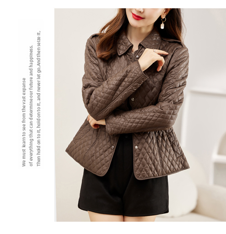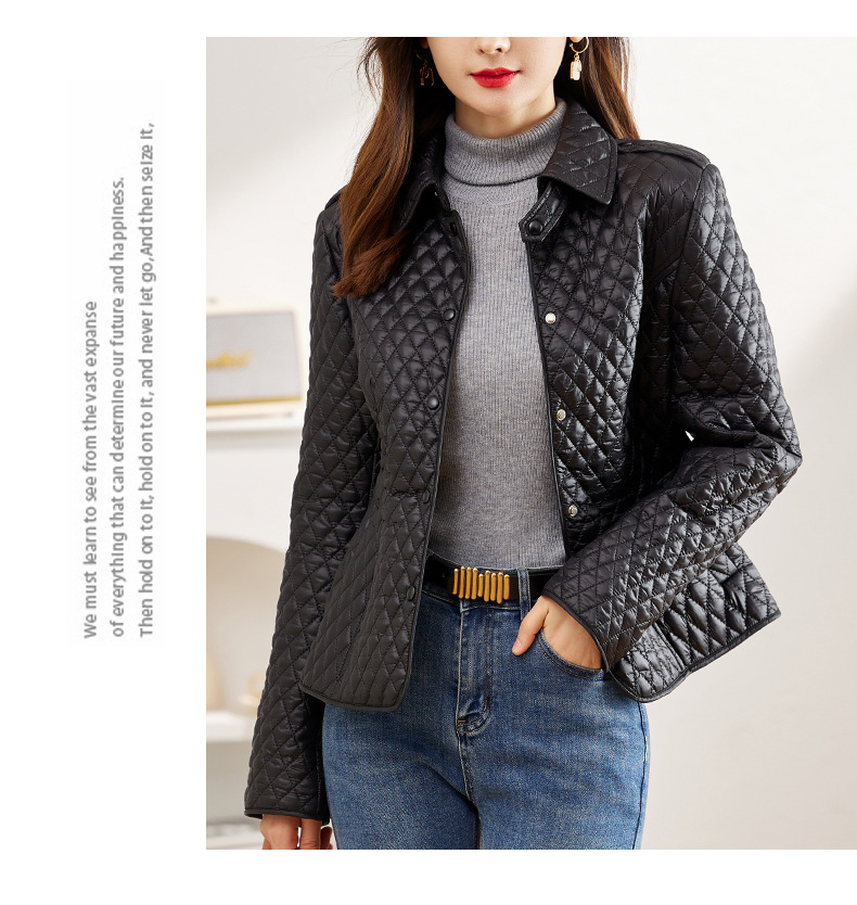 Áo khoác mùa đông dáng ngắn, thiết kế dành riêng cho các bạn nữ có chiều cao nhỏ nhắn. Chất liệu bông mỏng nhẹ được may nổi các đường gân hình thoi tinh tế. Áo có cổ bẻ và sử dụng khuy cài ẩn tiện lợi. Kiểu dáng gọn gàng, dễ dàng phối cùng nhiều trang phục khác nhau. Mặc ấm trong những ngày thời tiết se lạnh, tạo vẻ ngoài trẻ trung và năng động. | Tên sản phẩm: Áo Khoác Nữ Chất Liệu Vải Bông Áo Khoác Bông Kẻ Caro Kẻ Caro Kín Cổ Hàng Mùa Xuân Thu Đông - Thời Trang Nữ | Mã sản phẩm: G1956 - Giá: 1.730.000đ | Mã nhà sản xuất: HADA-G05Hình ảnh sản phẩm