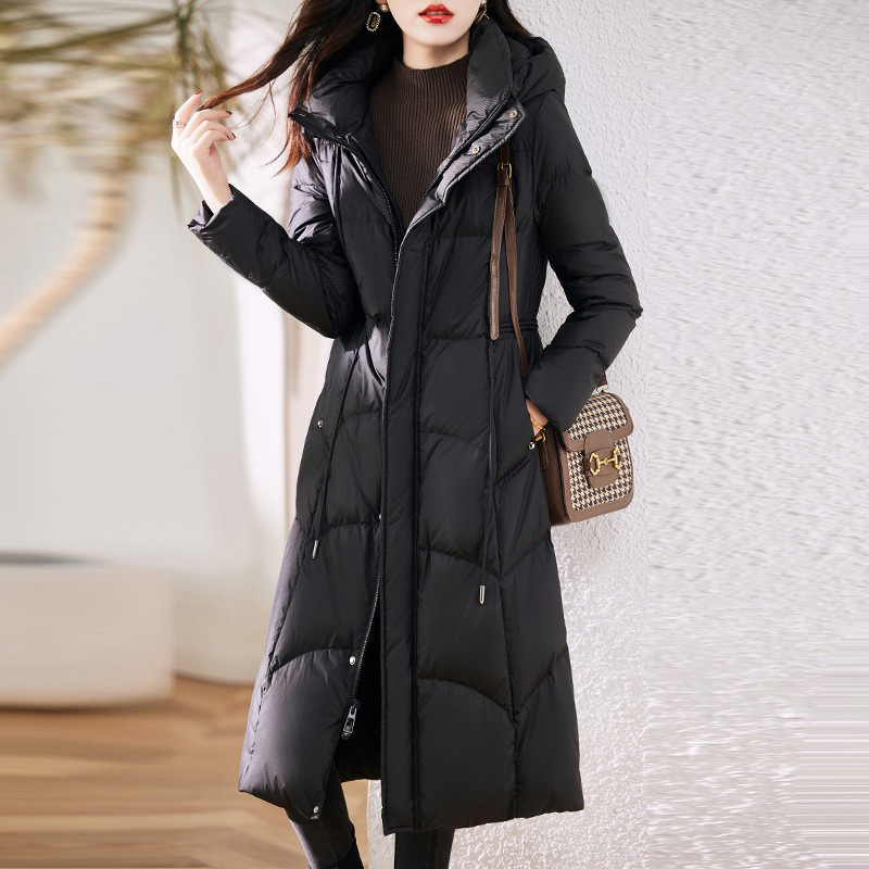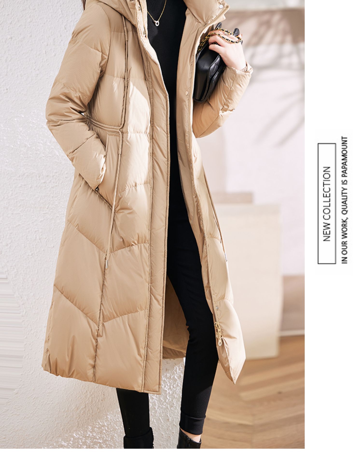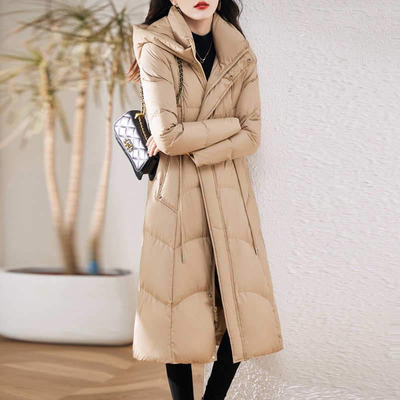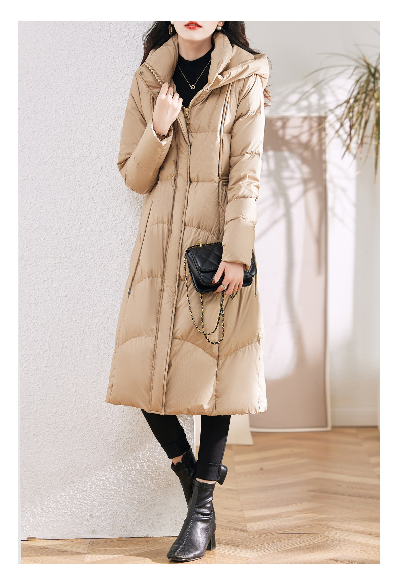 Áo khoác dáng dài dành cho nữ, thiết kế vừa vặn tôn dáng. Sản phẩm có mũ trùm tiện lợi, chiều dài thân áo qua gối, giúp giữ ấm toàn thân trong tiết trời lạnh. Bên trong áo được lót bằng lớp lông vũ tự nhiên, mang lại cảm giác ấm áp và nhẹ nhàng. Bạn có thể mặc chiếc áo này khi đi làm, dạo phố hay tham gia các hoạt động ngoài trời. Dễ dàng phối cùng nhiều loại trang phục khác nhau để có những vẻ ngoài ưng ý. | Tên sản phẩm: Áo Khoác Nữ Dài Quá Gối Mũ Liền Dày Ấm Hàng Mùa Xuân Thu Đông - Thời Trang Nữ | Mã sản phẩm: G1983 - Giá: 4.630.000đ | Mã nhà sản xuất: HADA-G06Hình ảnh sản phẩm