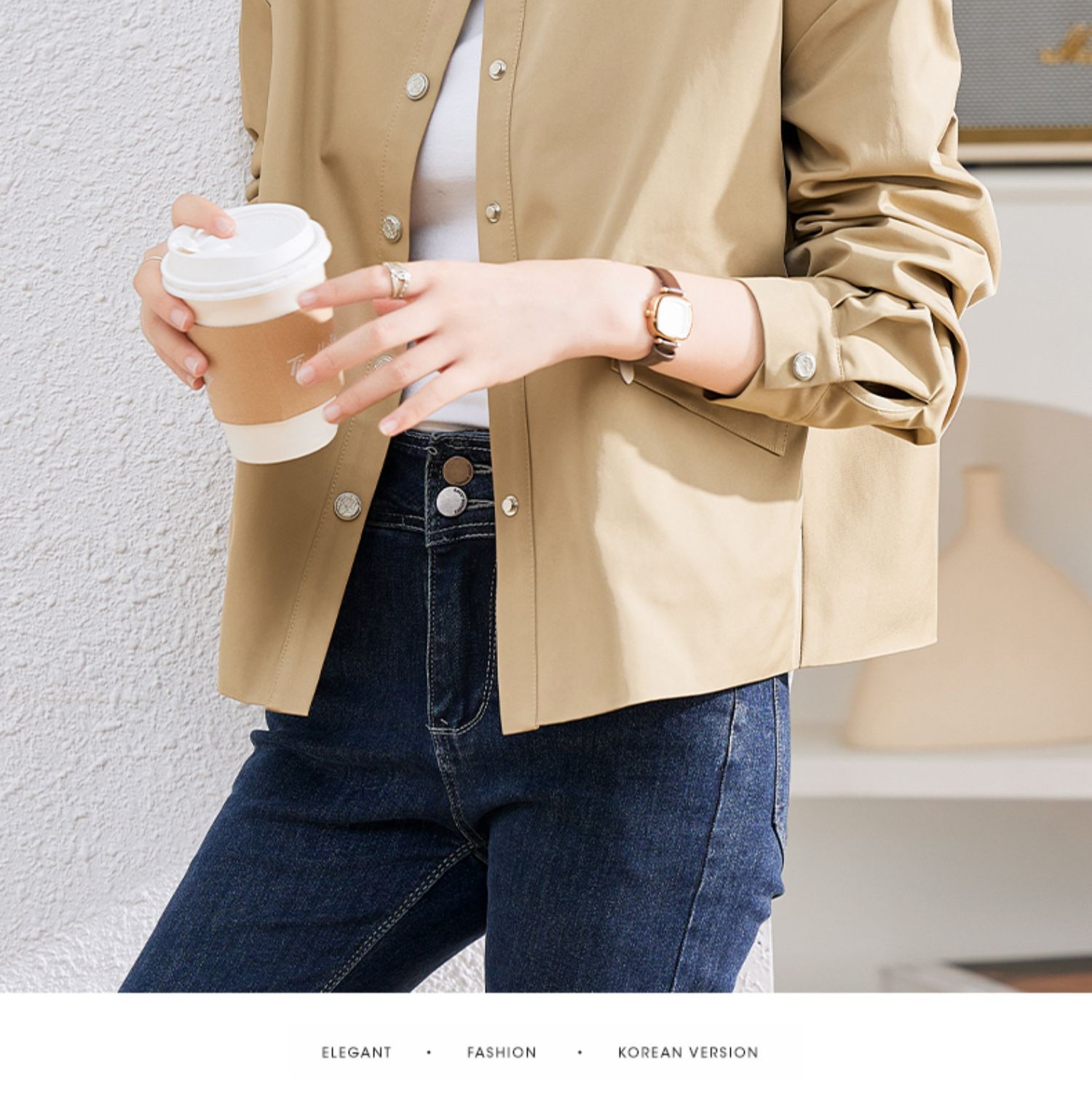 Áo khoác dáng ngắn kiểu áo sơ mi dành cho nữ, thiết kế hợp thời trang cho tiết trời thu đông. Sản phẩm có form dáng thoải mái, dễ dàng phối cùng nhiều trang phục như quần jeans hay váy liền. Chất vải mềm mại, tạo cảm giác dễ chịu khi mặc. Bạn có thể mặc như một chiếc áo khoác mỏng bên ngoài hoặc mặc lẻ như áo thun thời trang. Kiểu dáng trẻ trung, phù hợp cho nhiều dịp sinh hoạt hằng ngày. | Tên sản phẩm: Áo Khoác Nữ Hàng Mùa Xuân Thu Đông - Thời Trang Nữ | Mã sản phẩm: G2082 - Giá: 1.540.000đ | Mã nhà sản xuất: HADA-G04Hình ảnh sản phẩm