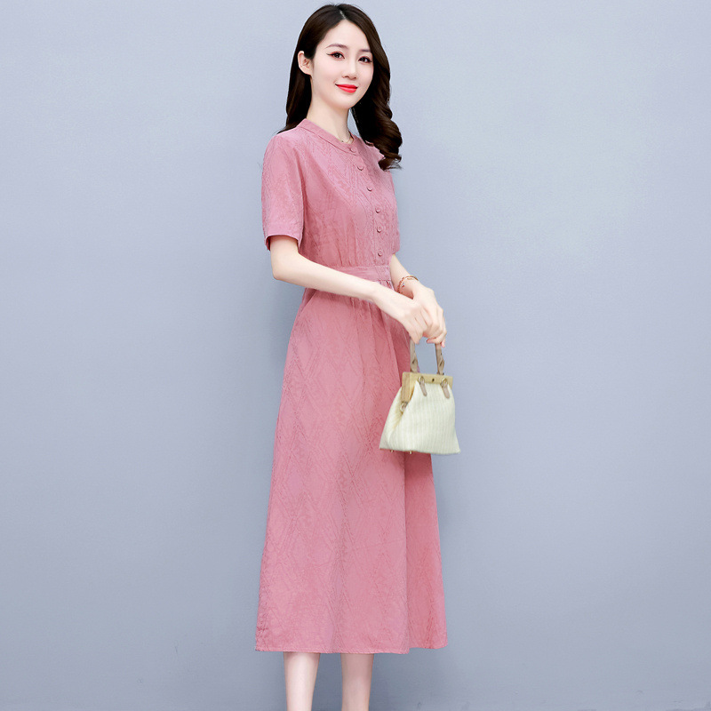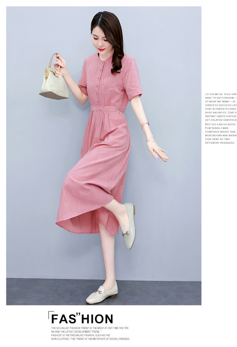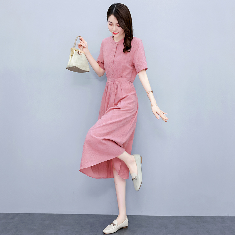 Chiếc đầm này được dệt từ sợi bông và lanh tự nhiên, cho cảm giác mặc thoáng mát, dễ chịu. Thiết kế ôm nhẹ ở eo giúp tôn dáng, trong khi phần vải ở bụng được may khéo léo để che đi những khuyết điểm nhỏ. Màu hồng phấn dịu nhẹ cùng kiểu dáng cổ điển mang đến vẻ ngoại hình nhẹ nhàng, thanh lịch. Sản phẩm phù hợp để mặc đi làm, dạo phố hay trong những dịp gặp mặt thân mật. | Tên sản phẩm: Váy Đầm Liền Thân Nữ Chất Liệu Vải Bông Trung Niên Phục Cổ Cổ Điển - Thời Trang Nữ | Mã sản phẩm: G2447 - Giá: 1.400.000đ | Mã nhà sản xuất: HADA-G04Hình ảnh sản phẩm