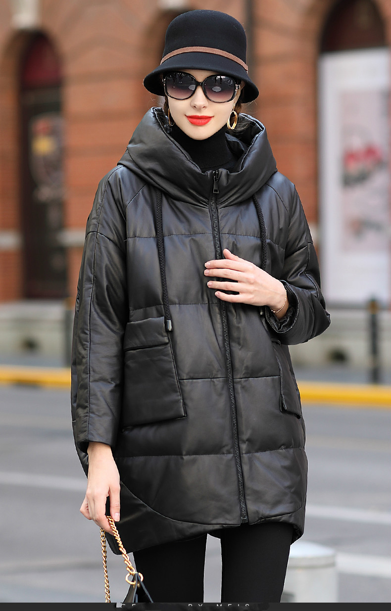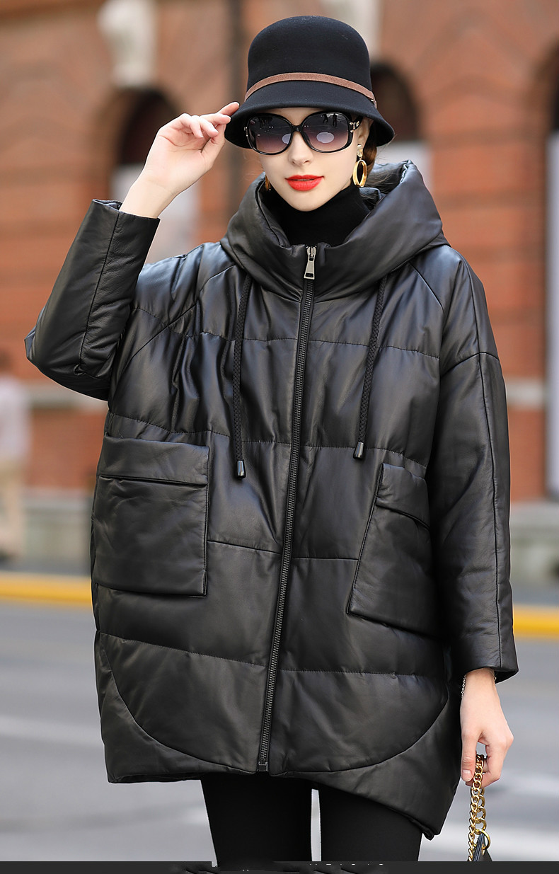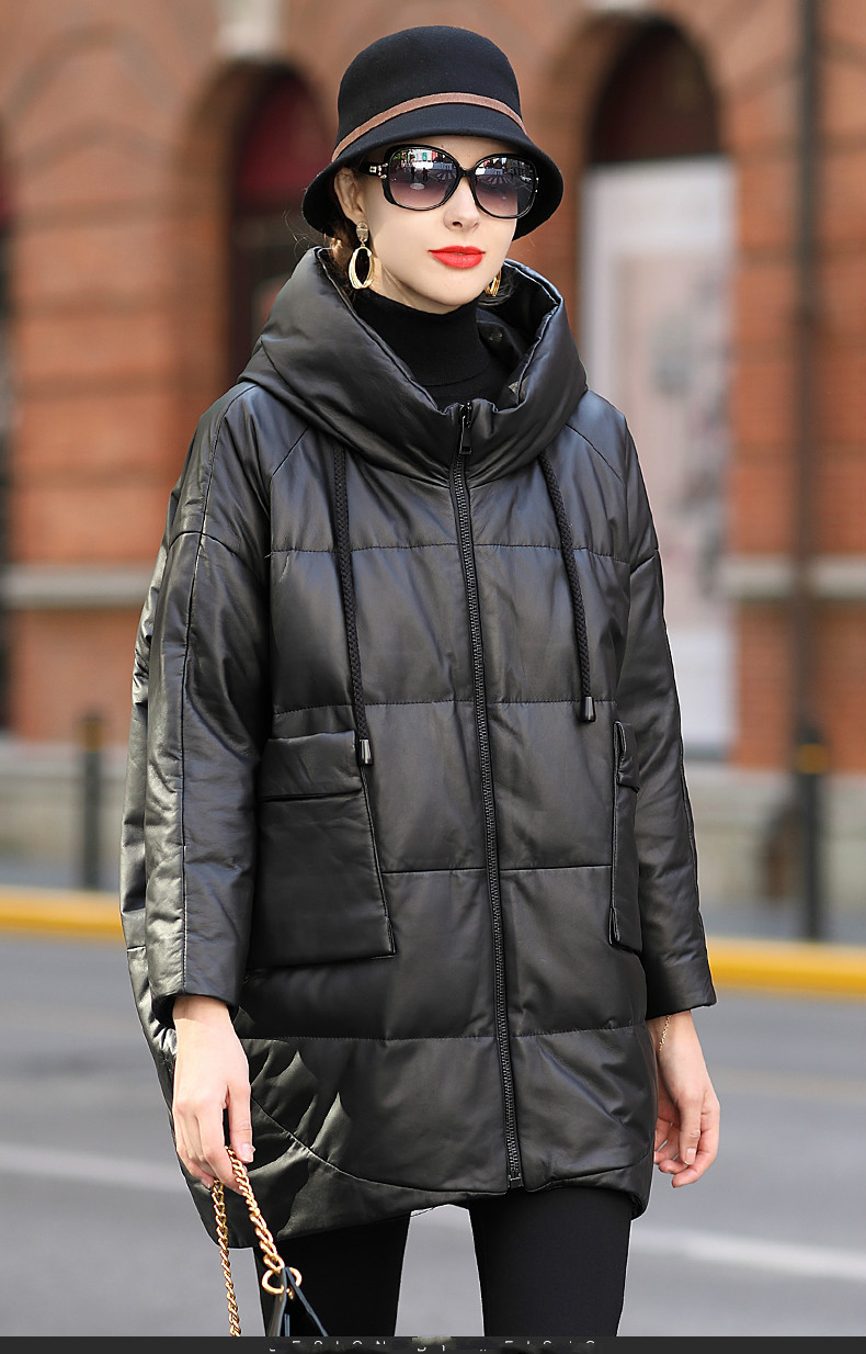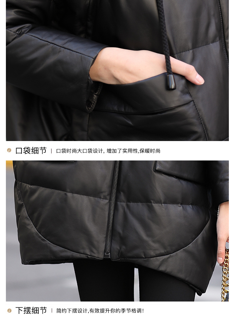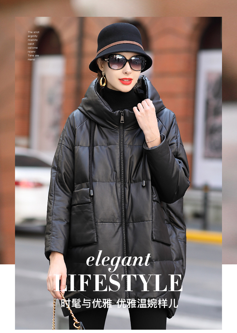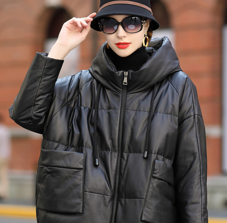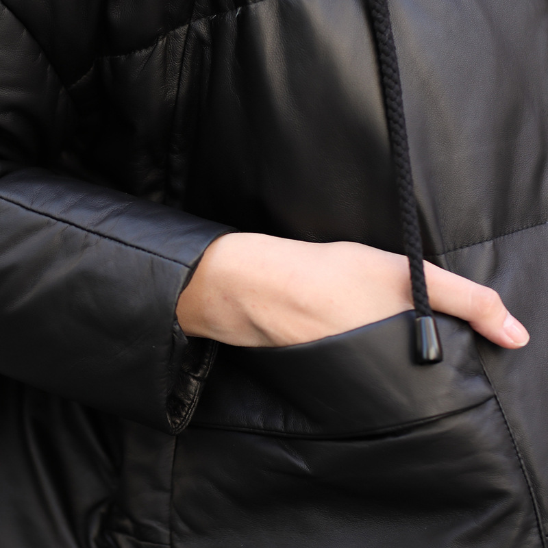 Áo khoác dành cho nữ, thiết kế dáng dài thoải mái, phù hợp cho những ngày đông lạnh giá. Chất liệu da thật từ cừu giúp giữ ấm tốt, kết hợp cùng lớp lông vũ bên trong tạo cảm giác nhẹ nhàng, ấm áp. Kiểu dáng có mũ trùm và thân áo rộng rãi mang đến sự tiện lợi, dễ chịu khi mặc. Sản phẩm phù hợp để mặc hàng ngày, đi làm hoặc dạo phố. Chỉ cần mặc trực tiếp như các loại áo khoác thông thường khác. | Tên sản phẩm: Áo Da Nữ Chất Liệu Da Bò Mũ Liền Hàng Mùa Xuân Thu Đông - Thời Trang Nữ | Mã sản phẩm: G2547 - Giá: 6.660.000đ | Mã nhà sản xuất: HADGA-G06Hình ảnh sản phẩm
