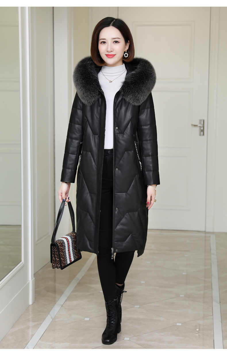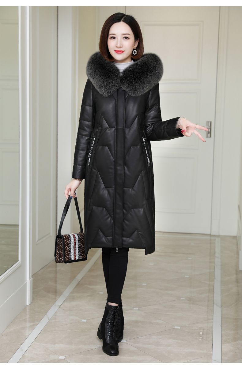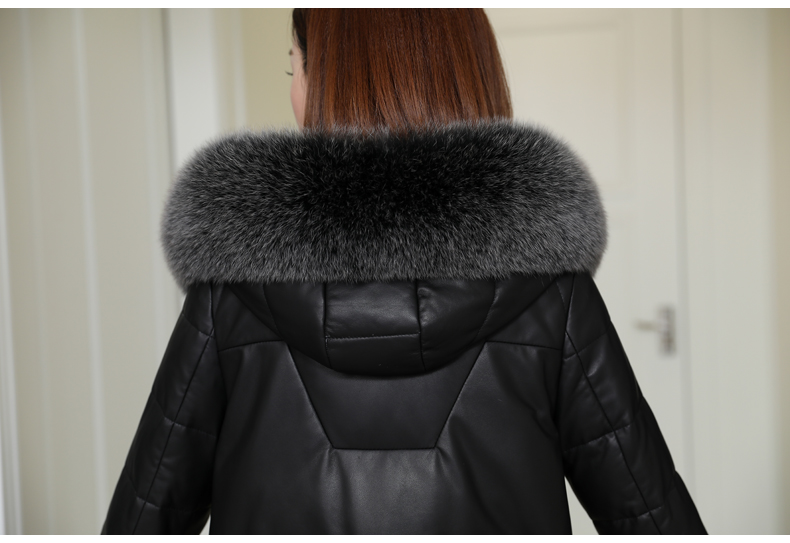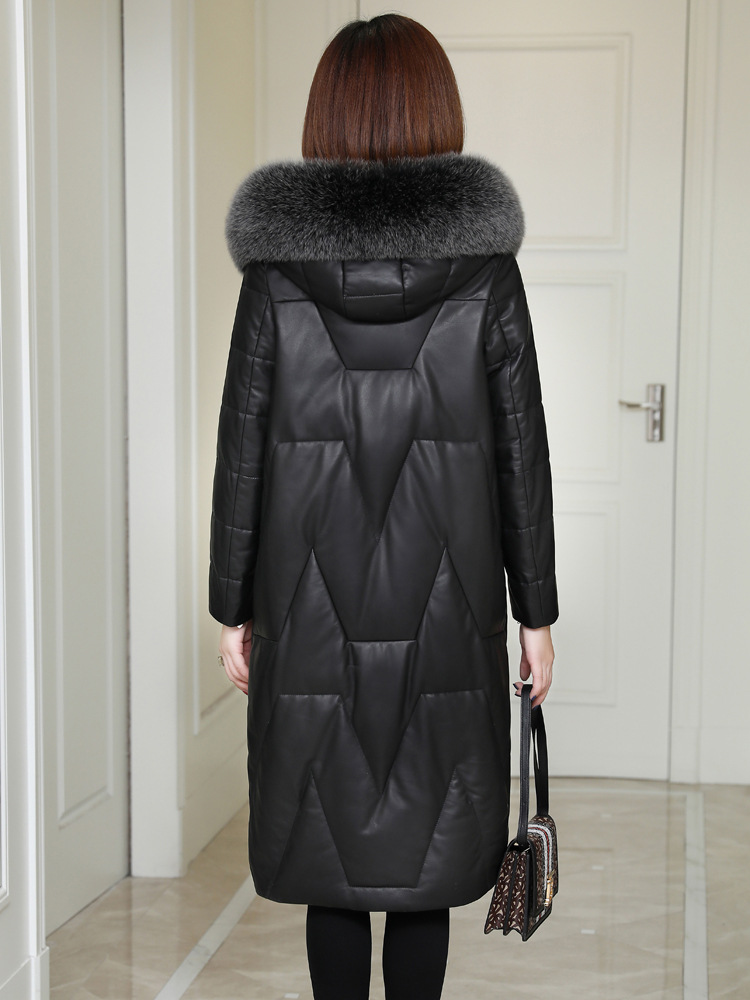 Áo khoác nữ dáng dài, có mũ trùm được viền lông cáo tự nhiên. Chất liệu da cừu mềm mại bên ngoài kết hợp với lớp lông vũ giữ ấm bên trong, mang đến khả năng chống gió và giữ nhiệt tốt. Thiết kế cổ áo và mũ được viền lông dày dặn, vừa tạo điểm nhấn lại thêm phần ấm áp. Sản phẩm thích hợp mặc trong tiết trời lạnh giá, phối cùng quần jeans và bốt để có diện mật cân đối và năng động. | Tên sản phẩm: Áo Da Nữ Chất Liệu Da Bò Mũ Liền Hàng Mùa Xuân Thu Đông - Thời Trang Nữ | Mã sản phẩm: G2559 - Giá: 7.760.000đ | Mã nhà sản xuất: HADGA-G06Hình ảnh sản phẩm