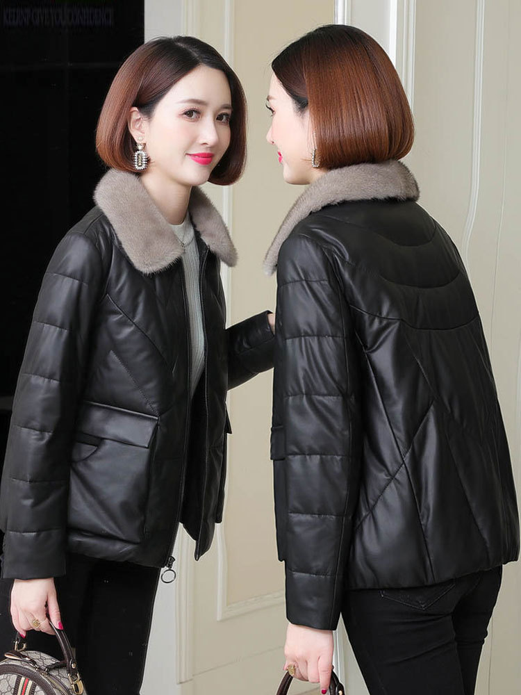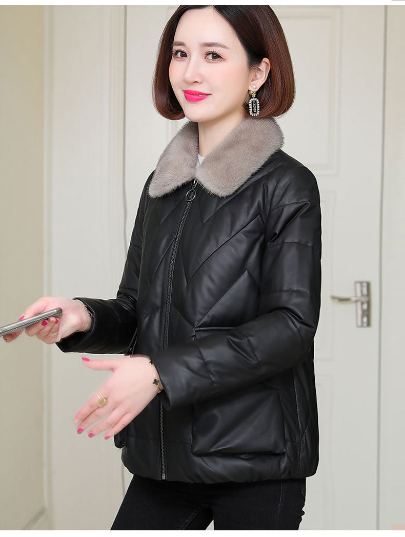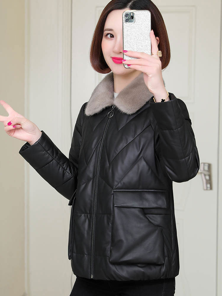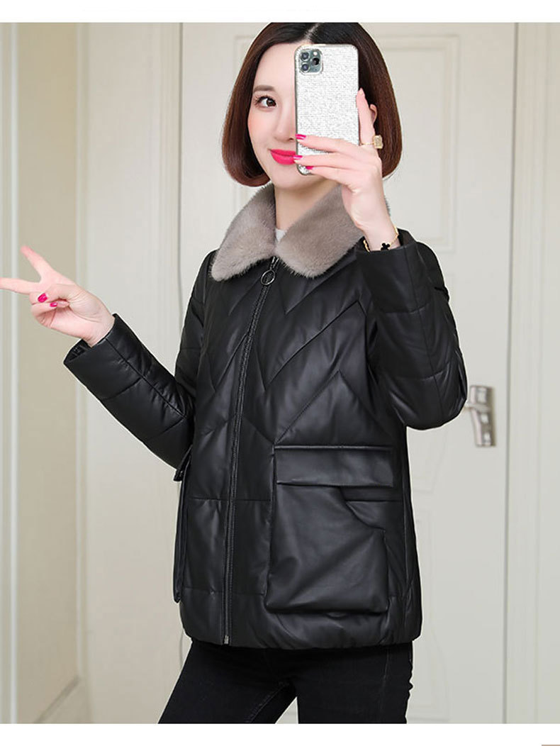 Áo khoác nữ ngắn kiểu dáng mới, có cổ lật và đường may tinh tế. Chất liệu da cừu mềm mại kết hợp cùng lớp lông vũ giữ ấm bên trong, giúp giữ nhiệt tốt trong tiết trời lạnh. Phần cổ áo được điểm xuyến bằng lớp lông mềm tăng thêm nét duyên dáng. Sản phẩm dễ dàng phối cùng nhiều trang phục, phù hợp cho những buổi đi chơi hay gặp gỡ. Khi sử dụng, lau nhẹ bằng khăn ẩm và bảo quản nơi khô ráo. | Tên sản phẩm: Áo Khoác Nữ Chất Liệu Da Bò Kín Cổ Hàng Mùa Xuân Thu Đông - Thời Trang Nữ | Mã sản phẩm: G2560 - Giá: 6.380.000đ | Mã nhà sản xuất: HADGA-G06Hình ảnh sản phẩm