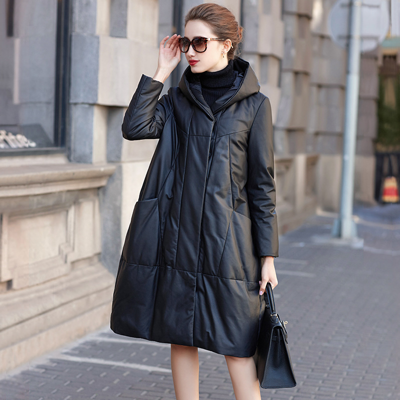 Áo khoác nữ dáng dài rộng rãi, có mũ trùm, phù hợp mặc trong tiết trời lạnh. Sản phẩm được làm từ da cừu mềm mại, bên trong là lớp lông vũ tự nhiên giúp giữ ấm tốt. Kiểu dáng thoải mái, dễ dàng phối hợp với nhiều trang phục khác nhau. Bạn có thể mặc hằng ngày khi đi làm, đi chơi hoặc dạo phố. Chỉ cần mặc trực tiếp và điều chỉnh mũ, khóa kéo cho vừa vặn. | Tên sản phẩm: Áo Da Nữ Chất Liệu Da Bò Mũ Liền Hàng Mùa Xuân Thu Đông - Thời Trang Nữ | Mã sản phẩm: G2573 - Giá: 6.660.000đ | Mã nhà sản xuất: HADGA-G06Hình ảnh sản phẩm