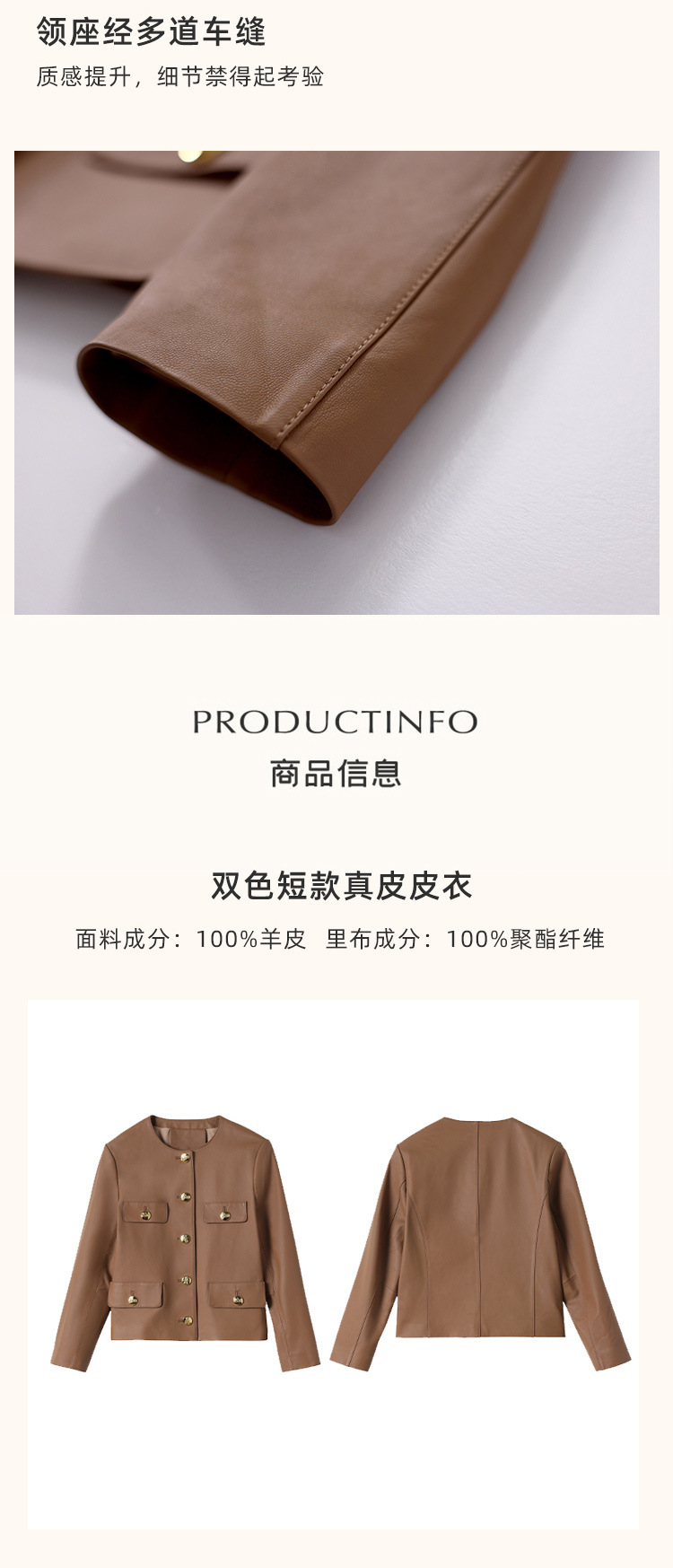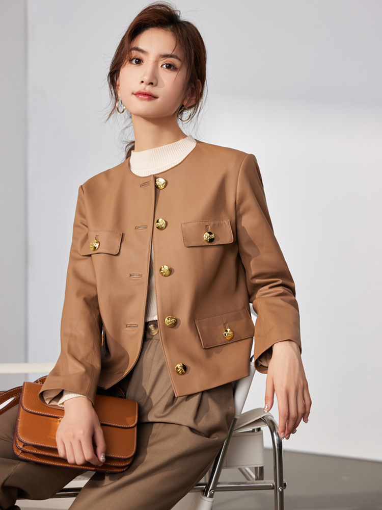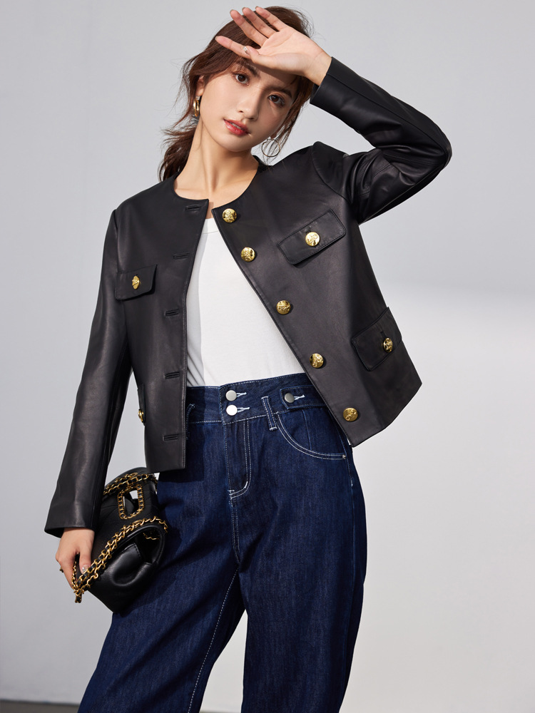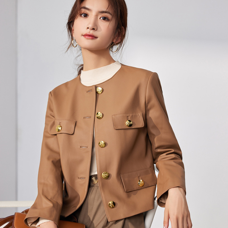 Áo khoác mùa thu với kiểu dáng ngắn gọn, cổ tròn dễ mặc. Sản phẩm được làm từ da cừu mềm mại, tạo cảm giác dễ chịu khi mặc. Điểm nhấn là hàng khuy cài bằng kim loại phía trước, giúp bạn mặc vào hoặc cởi ra một cách thuận tiện. Kiểu áo này dễ dàng kết hợp với nhiều trang phục khác nhau trong tủ đồ. Bạn có thể mặc như áo khoác nhẹ bên ngoài áo thun hay đầm váy để tạo nên vẻ ngoài cân đối. | Tên sản phẩm: Áo Khoác Nữ Chất Liệu Da Bò Hàng Mùa Xuân Thu Đông - Thời Trang Nữ | Mã sản phẩm: G2590 - Giá: 4.900.000đ | Mã nhà sản xuất: HADGA-G06Hình ảnh sản phẩm
