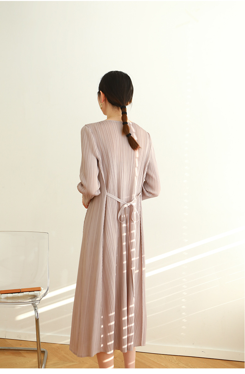 Chiếc đầm này có chất vải tạo nếp gấp đặc trưng, mang đến vẻ đẹp nhẹ nhàng và nữ tính. Thiết kế có dây cột nơ tạo điểm nhấn, phù hợp cho những buổi đi làm hay gặp mặt thường ngày. Kiểu dáng thanh lịch giúp bạn dễ dàng phối hợp với các loại giày dép và phụ kiện khác nhau. Chỉ cần mặc vào và điều chỉnh dây thắt cho vừa vặn là đã có một set đồ hoàn chỉnh. | Tên sản phẩm: Váy Đầm Liền Thân Nữ Hàng Mùa Xuân Thu Đông - Thời Trang Nữ | Mã sản phẩm: G3417 - Giá: 1.390.000đ | Mã nhà sản xuất: DODLE-G04Hình ảnh sản phẩm