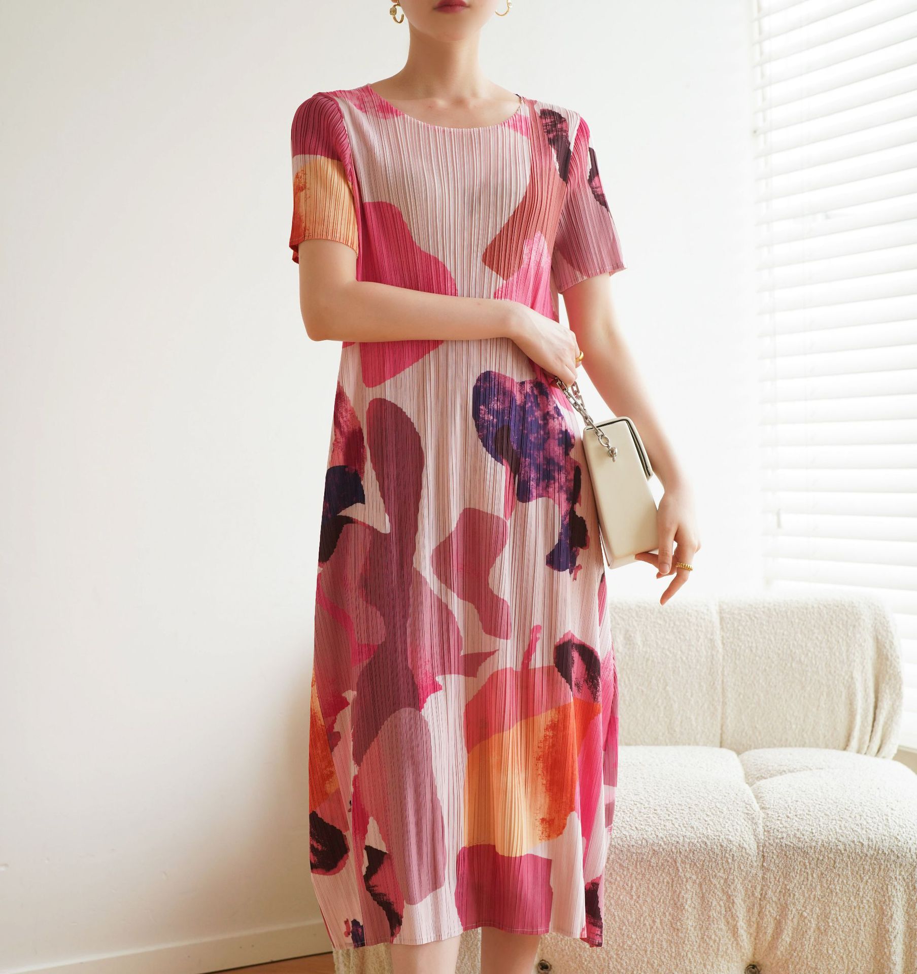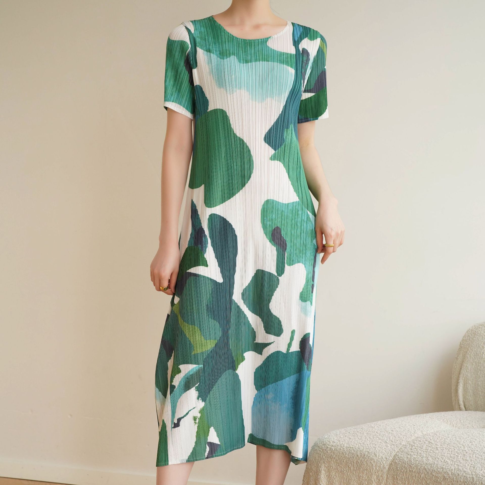 Chiếc áo dạng váy ngắn tay này có họa tiết in mực nước độc đáo, mang phong cách đơn giản của Nhật. Chất vải tạo nếp nhăn nhẹ giúp mặc thoải mái và dễ chịu. Kiểu dáng rộng rãi phù hợp cho nhiều dáng người. Bạn có thể mặc đi chơi, đi làm hàng ngày một cách thoải mái. Chỉ cần giặt nhẹ và phơi khô tự nhiên để giữ áo bền đẹp. | Tên sản phẩm: Váy Đầm Liền Thân Nữ Big Size Ngoại Cỡ Ngắn Tay Họa Tiết Hoa Hàng Mùa Hè - Thời Trang Nữ | Mã sản phẩm: G3453 - Giá: 1.350.000đ | Mã nhà sản xuất: DODLE-G04Hình ảnh sản phẩm