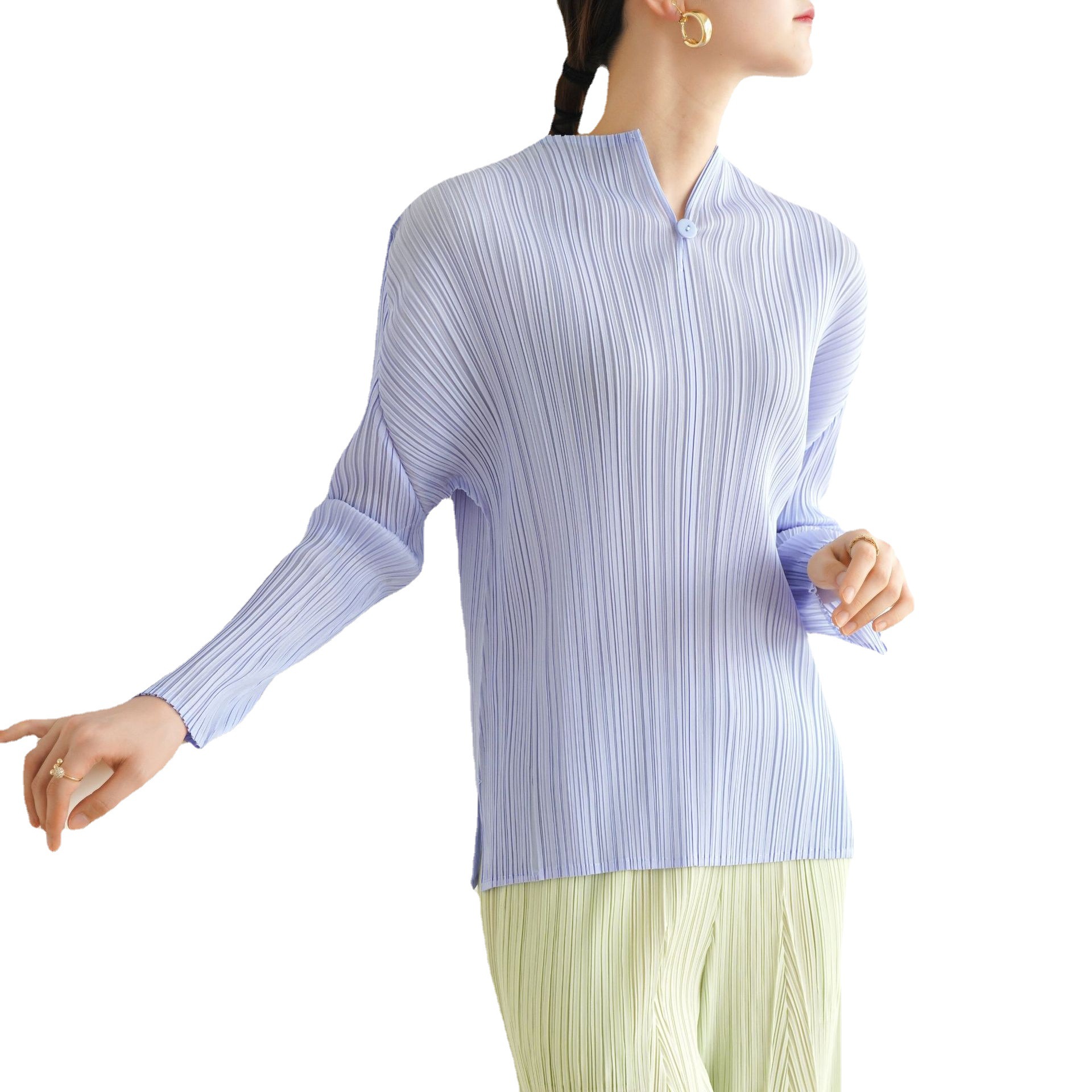 Áo thun dáng dài tay, cổ chữ V mang phong cách đơn giản nhưng có điểm nhấn riêng. Chất vải tạo những nếp gấp mềm mại, co giãn nhẹ tạo cảm giác dễ chịu khi mặc. Kiểu áo này dễ phối cùng nhiều trang phục như quần jeans hay chân váy. Có thể giặt máy nhẹ nhàng, phù hợp dùng trong tiết trời mát mẻ của mùa xuân và mùa thu. | Tên sản phẩm: Áo Thun Nữ Dài Tay Cổ Chữ V Hàng Mùa Xuân Thu Đông - Thời Trang Nữ | Mã sản phẩm: G3455 - Giá: 1.070.000đ | Mã nhà sản xuất: DODLE-G03Hình ảnh sản phẩm