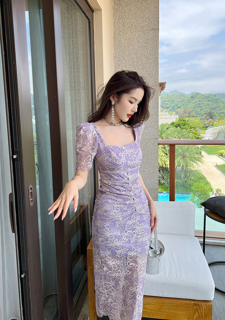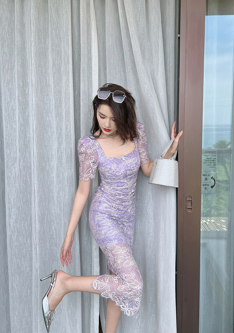 Chiếc đầm dáng dài qua gối với thiết kế cổ vuông thanh lịch, tôn vinh đường nét cơ thể. Chất liệu ren mềm mại kết hợp cùng màu tím hoa cà nhẹ nhàng, tạo nên vẻ đẹp dịu dàng và nữ tính. Sản phẩm phù hợp cho nhiều dịp tham dự khác nhau. Cách sử dụng đơn giản, mặc kết hợp cùng giày sandal hoặc giày gót thấp để hoàn thiện phong cách. | Tên sản phẩm: Váy Đầm Liền Thân Nữ Chất Liệu Ren Dáng Ôm Hàng Mùa Hè - Thời Trang Nữ | Mã sản phẩm: G3608 - Giá: 1.280.000đ | Mã nhà sản xuất: CHDG-G04Hình ảnh sản phẩm