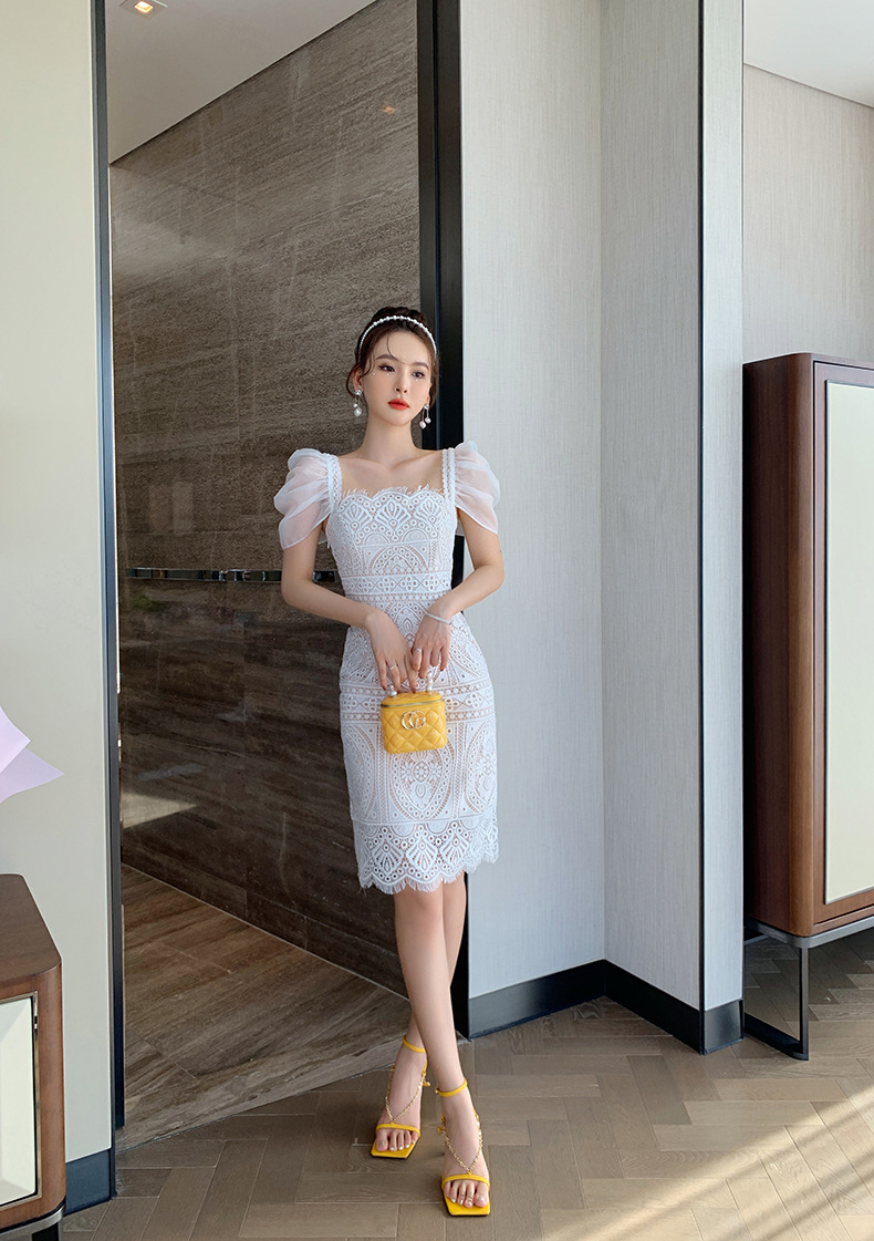 Chiếc đầm mới ra mắt, mang phong cách thanh lịch với điểm nhấn là phần tay bồng bềnh và cổ vuông tinh tế. Chất liệu kết hợp ren mỏng manh tạo nên vẻ đẹp nhẹ nhàng, duyên dáng. Kiểu dáng phù hợp cho những dịp gặp mặt thân mật hoặc dạo phố cuối tuần. Mặc cùng giày sandal hoặc giày gót thấp để hoàn thiện bộ trang phục. Dễ dàng giặt bằng tay và phơi trong bóng râm để giữ form vải lâu bền. | Tên sản phẩm: Váy Đầm Liền Thân Nữ Chất Liệu Ren Tay Phồng Hàng Mùa Hè - Thời Trang Nữ | Mã sản phẩm: G3642 - Giá: 1.120.000đ | Mã nhà sản xuất: CHDG-G04Hình ảnh sản phẩm