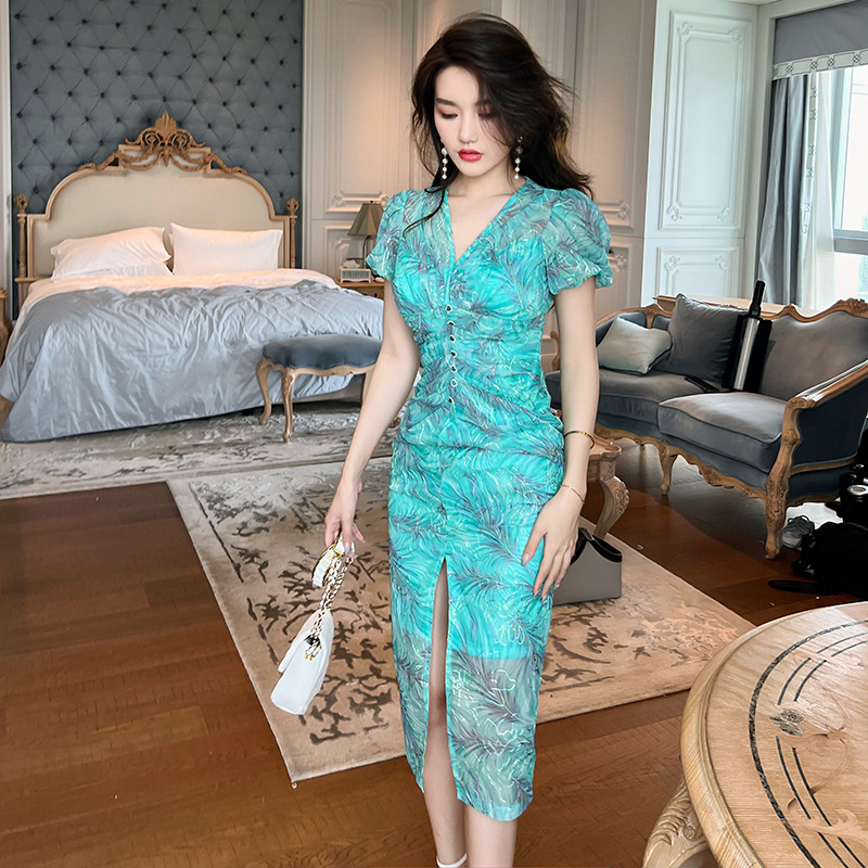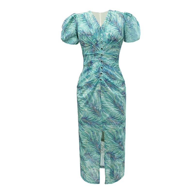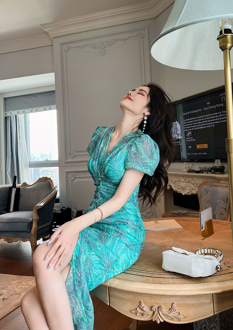 Chiếc đầm mới dành cho phụ nữ, điểm nhấn là cổ chữ V tạo dáng thanh lịch. Hoa văn nhỏ xinh trên nền xanh lá tươi mát, kết hợp cùng các đường nhún tinh tế giúp ôm nhẹ vào cơ thể. Kiểu dáng nhẹ nhàng, phù hợp cho những dịp gặp mặt thường ngày. Có thể mặc đi làm hoặc dạo phố, dễ dàng phối cùng giày sandal và túi xách. | Tên sản phẩm: Váy Đầm Liền Thân Nữ Dáng Ôm Họa Tiết Hoa Hàng Mùa Hè - Thời Trang Nữ | Mã sản phẩm: G3674 - Giá: 1.100.000đ | Mã nhà sản xuất: CHDG-G03Hình ảnh sản phẩm