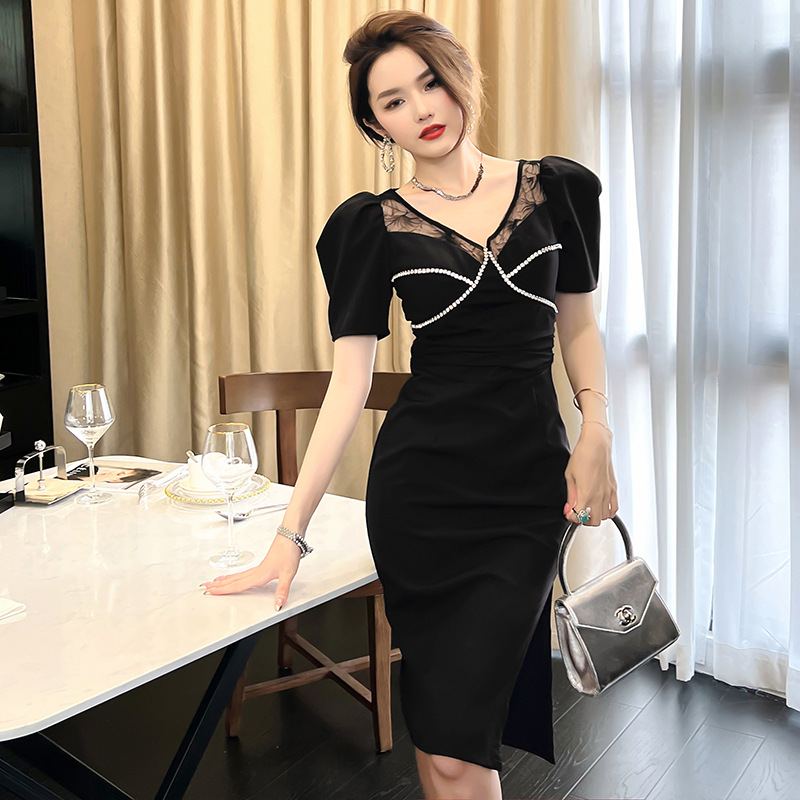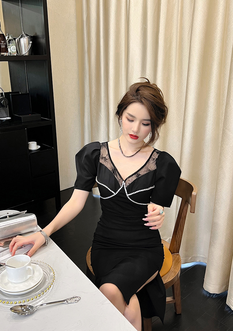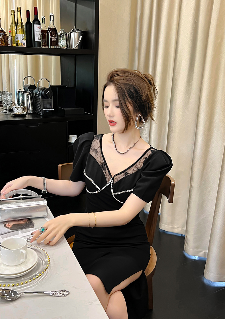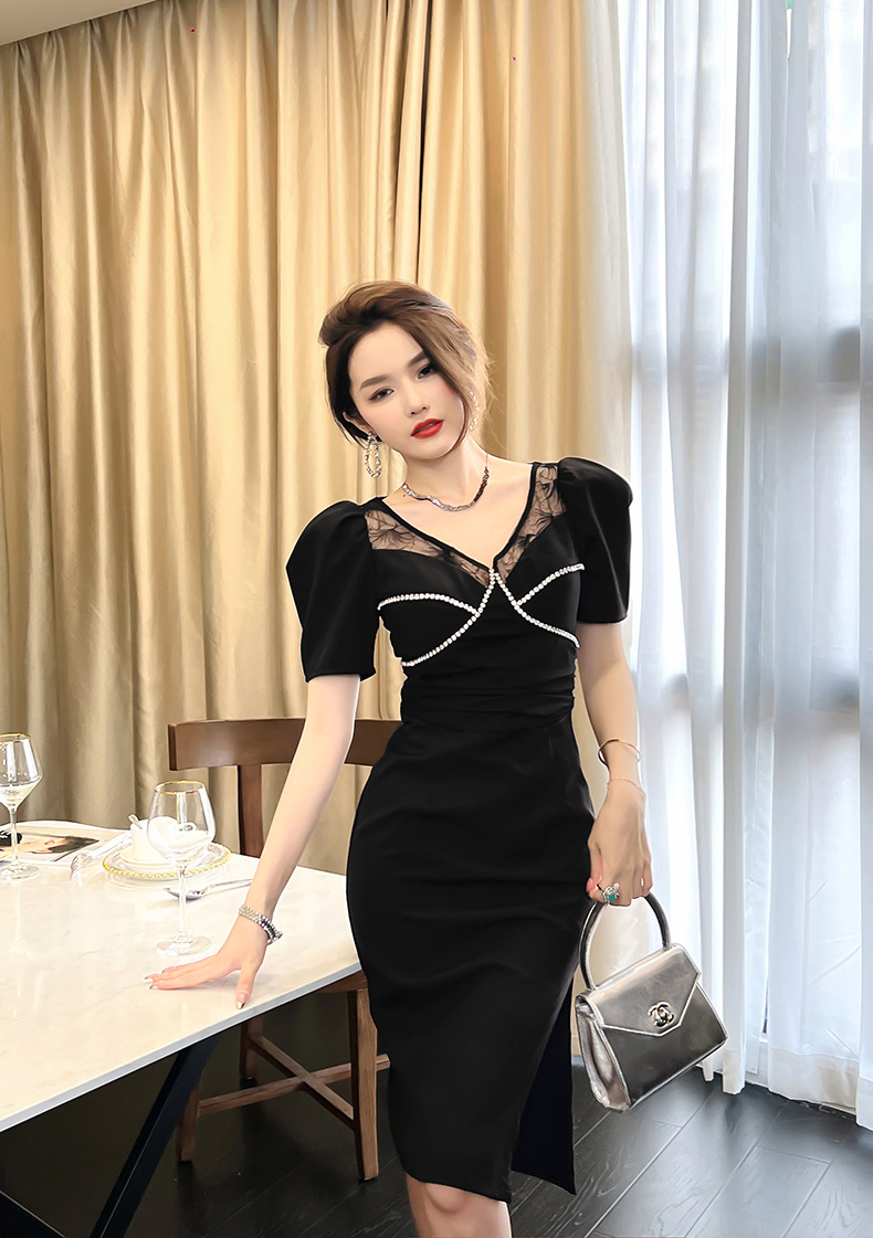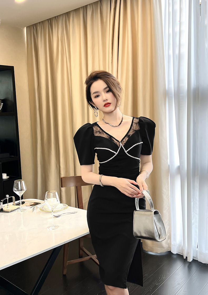 Đầm thiết kế kiểu Pháp với cổ chữ V tôn dáng. Tay bồng và thân ôm nhẹ giúp tạo điểm nhấn cho người mặc. Phần tà xẻ nhẹ phía dưới tăng thêm sự nữ tính và thoải mái khi di chuyển. Trên trang phục có điểm xuyết các chi tiết đá nhỏ lấp lánh tạo nên vẻ đẹp tinh tế. Sản phẩm phù hợp cho nhiều dịp đi chơi hay gặp mặt. Giặt nhẹ và phơi khô trong bóng râm để giữ form vải lâu bền. | Tên sản phẩm: Váy Đầm Liền Thân Nữ Dáng Ôm Cổ Chữ V Hàng Mùa Hè - Thời Trang Nữ | Mã sản phẩm: G3811 - Giá: 1.190.000đ | Mã nhà sản xuất: CHDG-G04Hình ảnh sản phẩm
