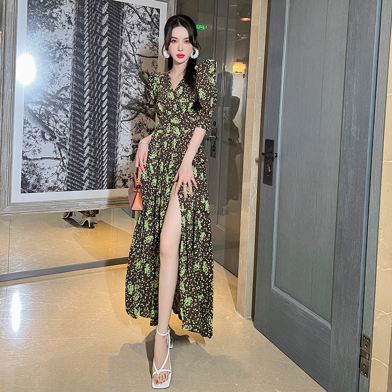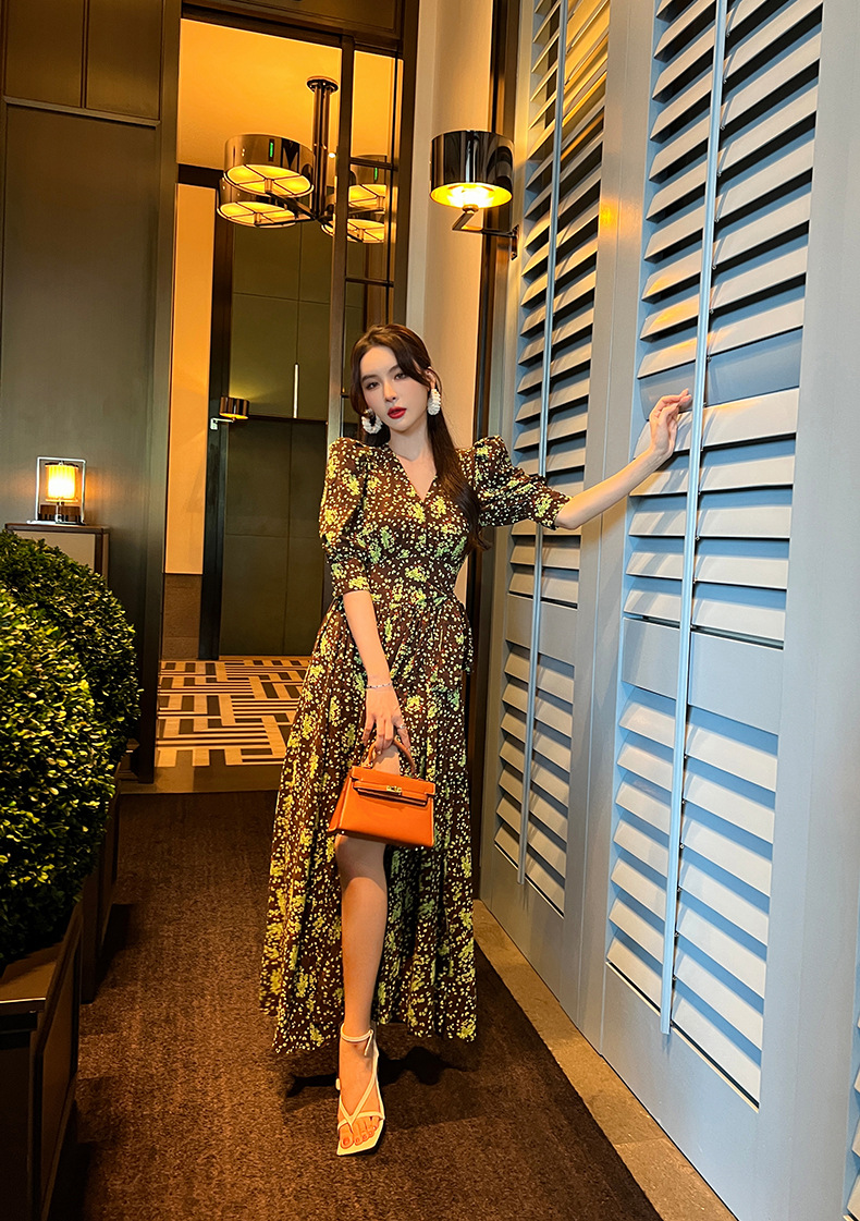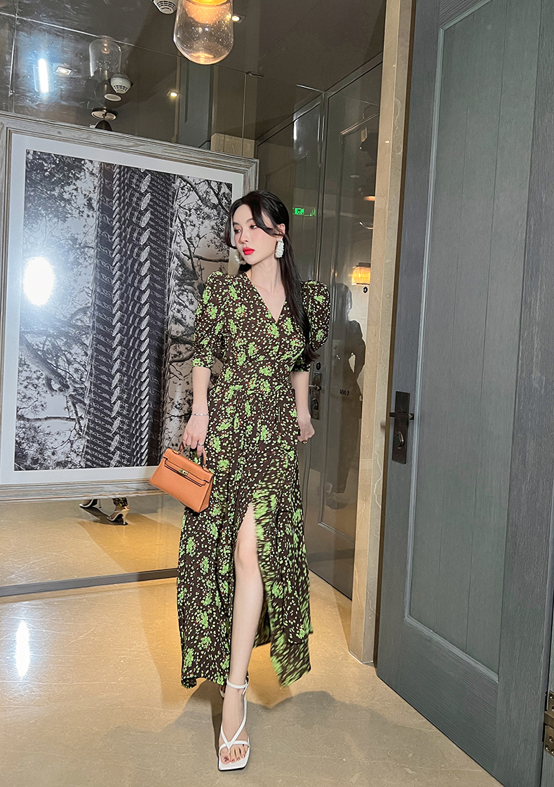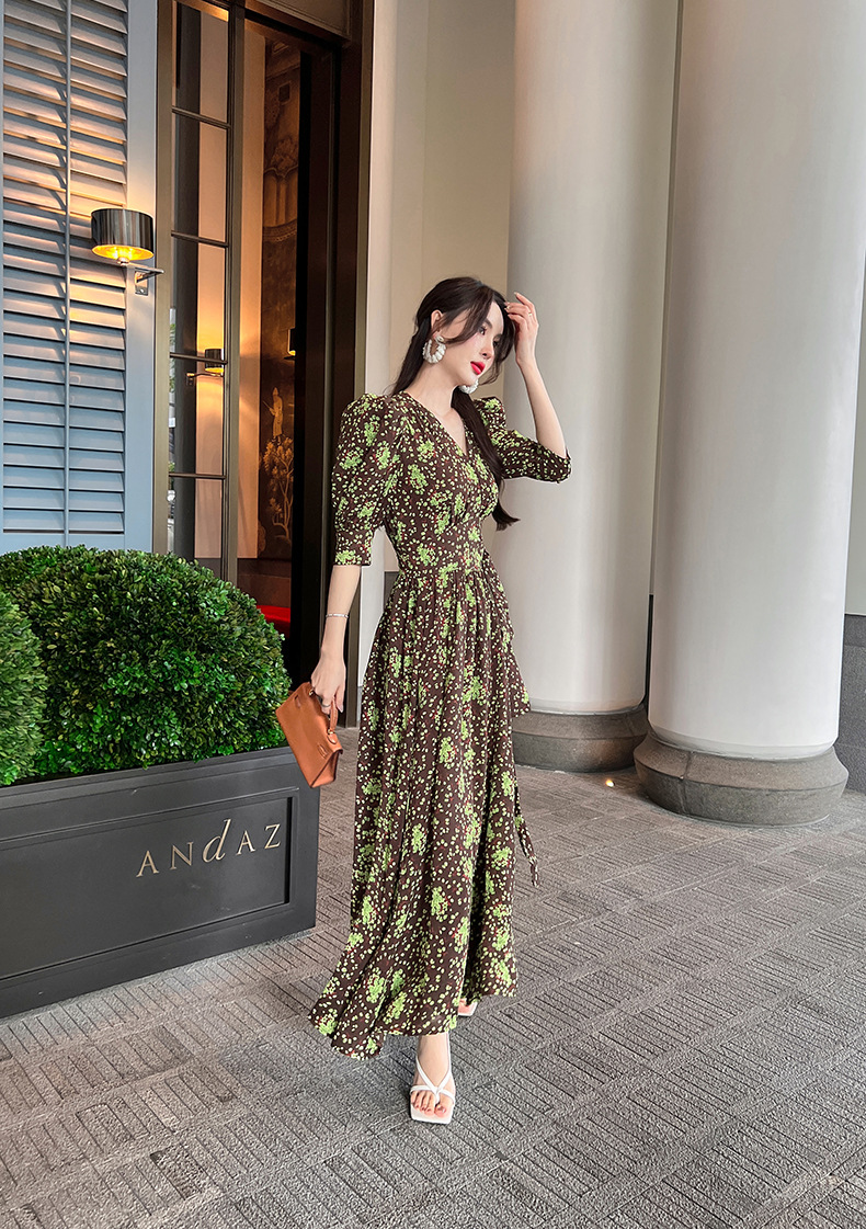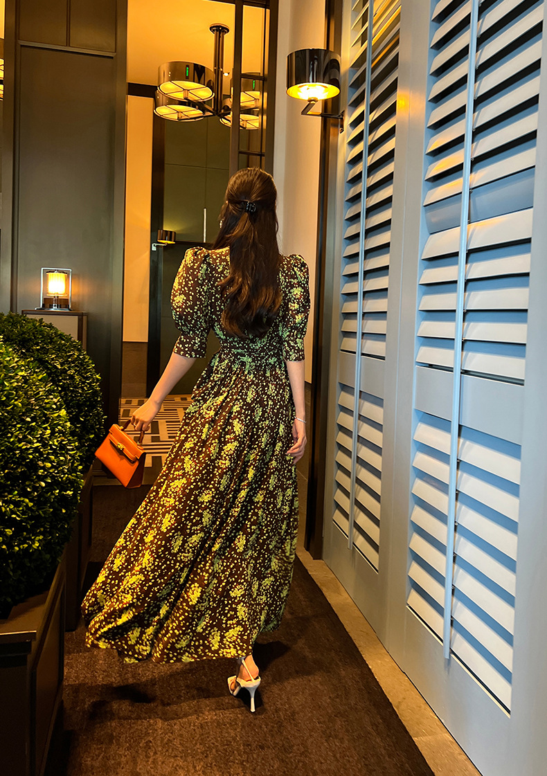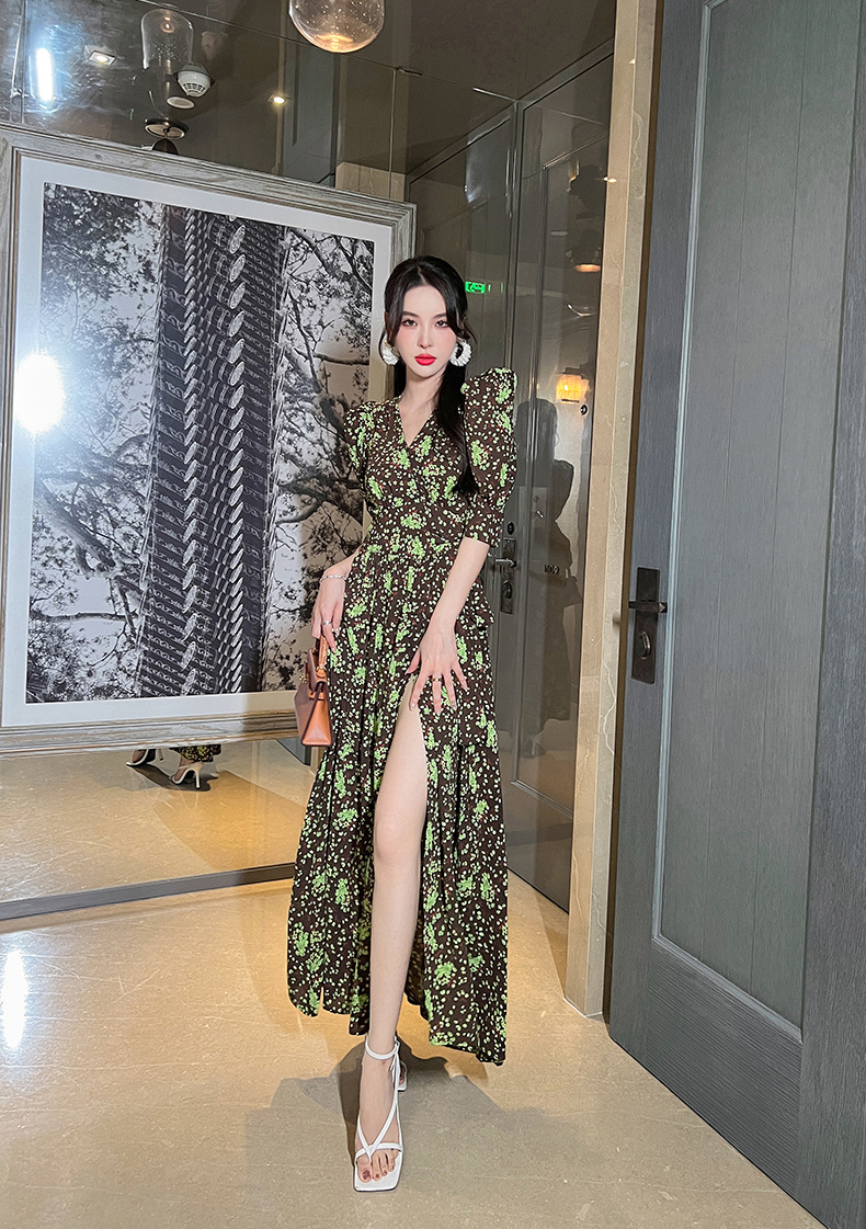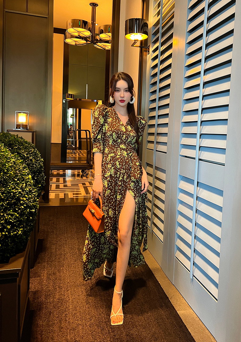 Chiếc váy dài với phần eo cao tôn dáng, tay bồng duyên dáng cùng thiết kế xẻ nhẹ ở vạt tạo nên phong cách thoải mái, phù hợp cho những kỳ nghỉ. Chất vải mỏng nhẹ, in họa tiết hoa nhỏ bay bổng giúp người mặc cảm thấy dễ chịu và năng động. Sản phẩm dễ phối cùng dép qu hậu hoặc giày bệt, mặc đi dạo phố hay các buổi gặp gỡ hằng ngày đều thích hợp. | Tên sản phẩm: Váy Đầm Liền Thân Dáng Dài Nữ Chất Liệu Vải Voan Tay Phồng Họa Tiết Hoa Hàng Mùa Hè - Thời Trang Nữ | Mã sản phẩm: G3815 - Giá: 1.250.000đ | Mã nhà sản xuất: CHDG-G04Hình ảnh sản phẩm