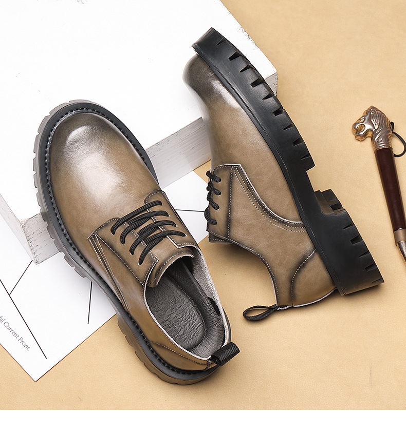 Đôi giày này mang phong cách Anh cổ điển với kiểu dáng đầu hơi tròn và đế dày vừa phải. Chất da mềm mại tạo cảm giác dễ chịu khi mang trong thời gian dài. Thiết kế gót thấp kết hợp cùng phong cách lao động giúp đôi giàu phù hợp cho nhiều dịp sử dụng. Bạn có thể dễ dàng phối cùng quần jeans hoặc quần vải để tạo nên vẻ ngoài cá tính. Chỉ cần vệ sinh bề mặt da bằng khăn mềm là có thể giữ giày luôn sạch đẹp. | Tên sản phẩm: Giày Da Nam Đế Cao - Giày Dép Nam | Mã sản phẩm: G4023 - Giá: 1.110.000đ | Mã nhà sản xuất: WEDG-G04Hình ảnh sản phẩm