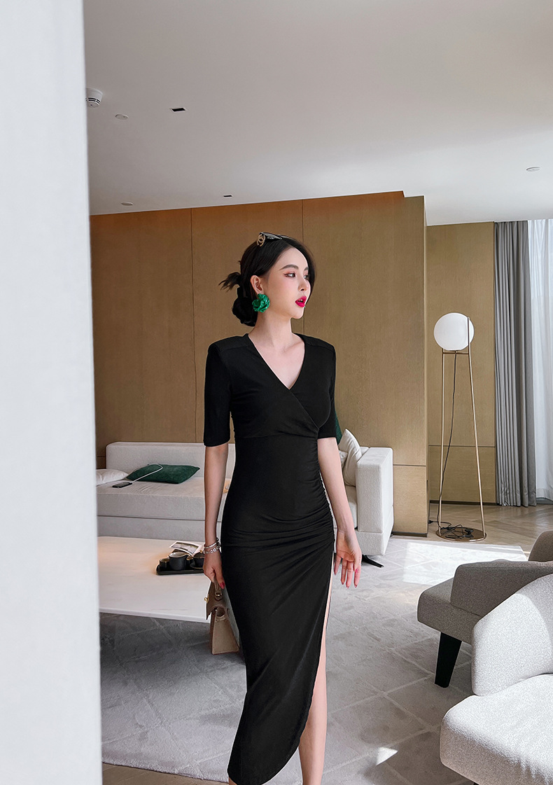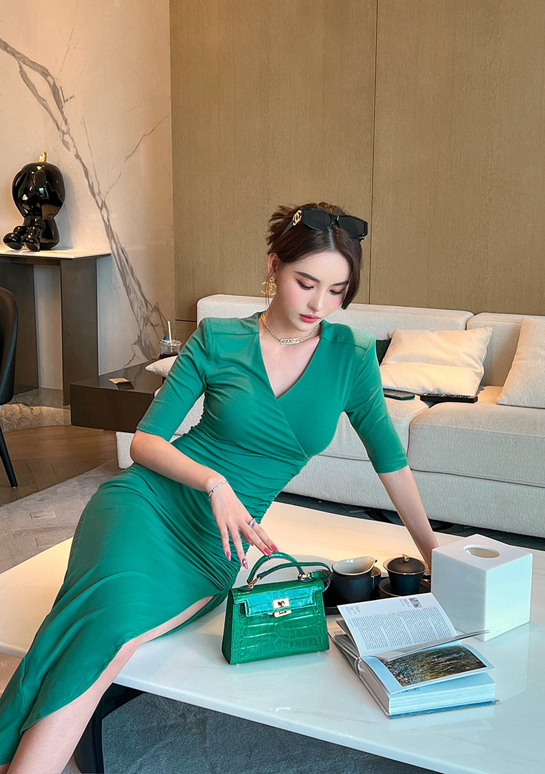 Chiếc đầm ôm dáng này có điểm nhấn từ cổ chữ V tạo nên vẻ thanh thoát. Thiết kế theo phong cách cổ điển châu Âu với màu trơn, dáng người mặc sẽ thêm phần thon gọn. Phần l váy xẻ nhẹ kết hợp đường cắt không đều đem lại nét mới mẻ, năng động. Sản phẩm thích hợp cho những dịp đi chơi, gặp gỡ bạn bè. Bạn có thể phối cùng giày cao gót và túi xách nhỏ để hoàn thiện bộ trang phục. | Tên sản phẩm: Váy Đầm Liền Thân Nữ Dáng Ôm Hàng Mùa Hè Phong Cách Âu Mỹ - Thời Trang Nữ | Mã sản phẩm: G4065 - Giá: 990.000đ | Mã nhà sản xuất: CHDG-G03Hình ảnh sản phẩm