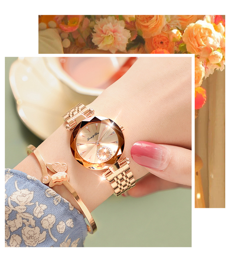 Chiếc đồng hồ nữ này có thiết kế đơn giản và phong cách, rất phù hợp để đeo khi phát trực tiếp hoặc trong đời sống hằng ngày. Sản phẩm sử dụng máy pin, kim chỉ gồm kim giờ và kim phút. Đặc biệt, đồng hồ có khả năng chống nước cơ bản, tiện lợi khi rửa tay hay gặp trời mưa. Bạn chỉ cần đeo nó trên tay, điều chỉnh giờ giấc cho chính xác là có thể sử dụng ngay. | Tên sản phẩm: Đồng Hồ Nữ Chống Nước Máy Pin, Máy Thạch Anh - Đồng Hồ Phụ Kiện Nữ | Mã sản phẩm: G4204 - Giá: 590.000đ | Mã nhà sản xuất: ZHDTC-G01Hình ảnh sản phẩm