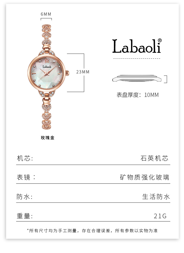 Chiếc đồng hồ dây đeo này có mặt tròn và kết hợp cùng dây đeo kiểu vòng tay trang trí đá lấp lánh. Sản phẩm sử dụng máy pin, có khả năng chống nước cơ bản, phù hợp cho bạn sử dụng hàng ngày. Bạn chỉ cần đeo nó lên tay, điều chỉnh độ rộng của dây cho vừa vặn là có thể dùng được ngay. Kiểu dáng thời trang, dễ dàng phối hợp với nhiều loại trang phục khác nhau. | Tên sản phẩm: Trang Sức Phụ Kiện Nữ Chống Nước Lắc Tay Vòng Tay Máy Pin, Máy Thạch Anh - Đồng Hồ Phụ Kiện Nữ | Mã sản phẩm: G4208 - Giá: 830.000đ | Mã nhà sản xuất: ZHDTC-G03Hình ảnh sản phẩm