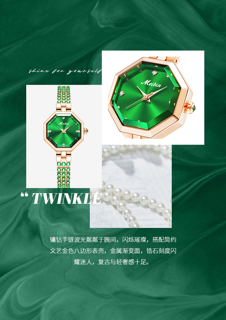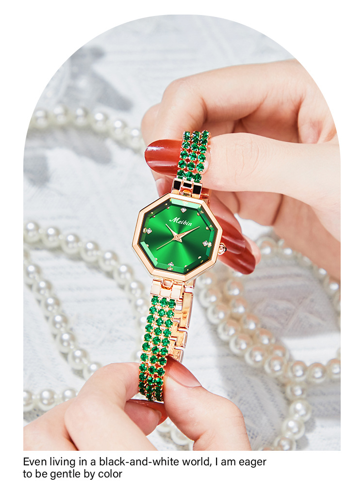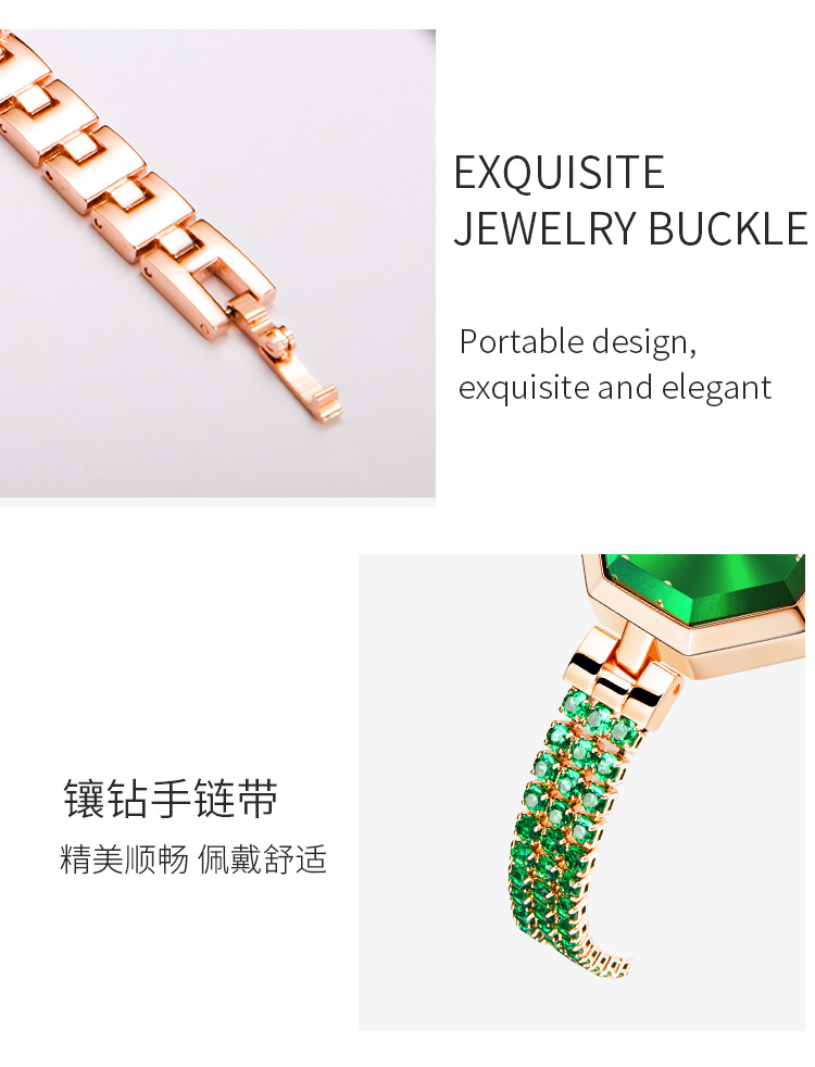 Đồng hồ nữ có dây đeo làm từ chất liệu giống trang sức, kết hợp cùng dây vòng tay thời trang. Mặt số được thiết kế theo hình tám cạnh độc đáo, tạo điểm nhấn ấn tượng. Sản phẩm sử dụng bộ máy pin với kim chỉ thời gian chính xác. Khóa đeo được tạo hình tinh xảo như một món trang sức nhỏ. Bạn chỉ cần đeo nó lên tay và cài khóa là có thể sử dụng ngay. | Tên sản phẩm: Trang Sức Phụ Kiện Nữ Lắc Tay Vòng Tay Máy Pin, Máy Thạch Anh - Đồng Hồ Phụ Kiện Nữ | Mã sản phẩm: G4210 - Giá: 970.000đ | Mã nhà sản xuất: ZHDTC-G03Hình ảnh sản phẩm