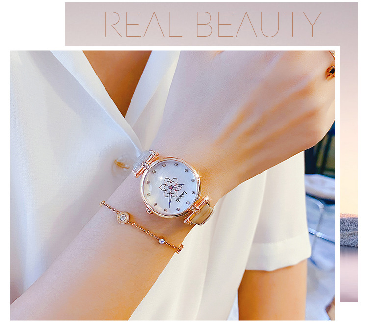 Chiếc đồng hồ dây da này có kiểu dáng mới, phù hợp cho nhiều dịp sử dụng. Dây đeo bằng chất liệu da mềm mại, ôm vừa vặn cổ tay. Mặt đồng hồ lớn dễ dàng xem giờ, với kim chỉ và vạch số rõ ràng. Bạn chỉ cần đeo vào cổ tay và điều chỉnh khóa cài cho vừa vặn. Sản phẩm dùng để xem giờ hàng ngày, kết hợp cùng các trang phục thông thường. | Tên sản phẩm: Đồng Hồ Nữ - Đồng Hồ Phụ Kiện Nữ | Mã sản phẩm: G4224 - Giá: 570.000đ | Mã nhà sản xuất: ZHDTC-G01Hình ảnh sản phẩm