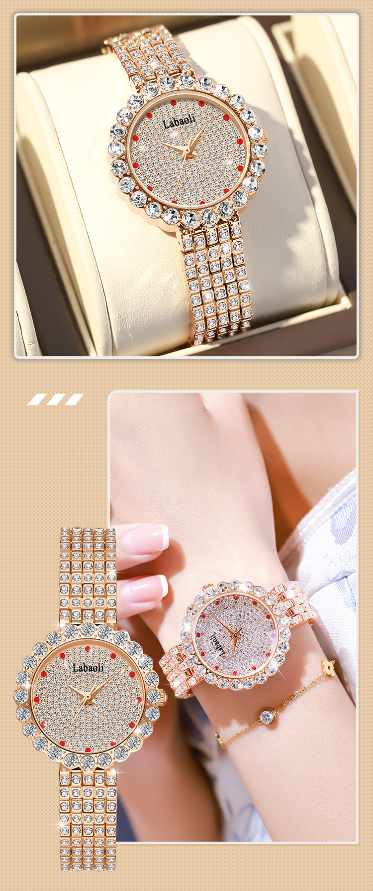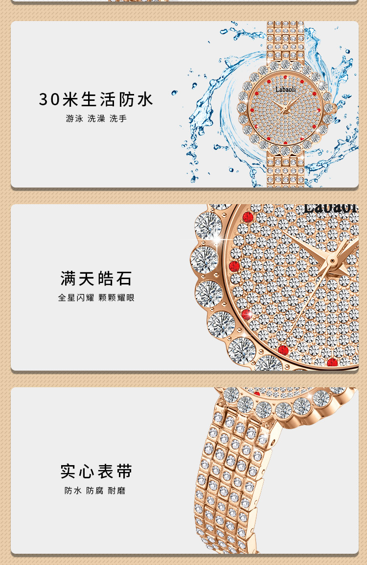 Chiếc đồng hồ nữ mới này có điểm nhấn là những viên đá lấp lánh được gắn tinh tế xung quanh mặt số. Sản phẩm có khả năng chống nước cơ bản, phù hợp đeo khi rửa tay hoặc gặp trời mưa nhẹ. Kiểu dáng thời trang, trẻ trung, dễ dàng phối hợp với nhiều loại trang phục khác nhau. Bạn chỉ cần đeo vào cổ tay và điều chỉnh khóa cho vừa vặn là có thể sử dụng ngay. | Tên sản phẩm: Đồng Hồ Nữ Chống Nước - Đồng Hồ Phụ Kiện Nữ | Mã sản phẩm: G4260 - Giá: 720.000đ | Mã nhà sản xuất: ZHDTC-G02Hình ảnh sản phẩm