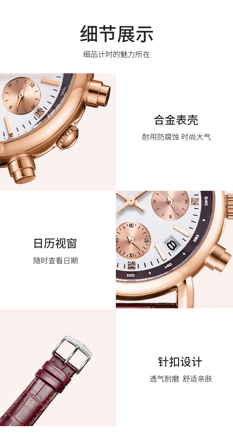 Chiếc đồng hồ dây đeo này có thiết kế ba vòng bezel tạo nên điểm nhấn tinh tế và đầy nữ tính. Dây đeo bằng da mềm mại, ôm vừa vặn và thoải mái cho cổ tay. Mặt số tròn với kim chỉ và vạch số rõ ràng giúp bạn xem giờ một cách dễ dàng. Sản phẩm phù hợp để sử dụng hàng ngày hoặc khi kết hợp với nhiều trang phục khác nhau. Bạn chỉ cần đeo vào cổ tay và điều chỉnh khóa cài cho vừa vặn là có thể sử dụng ngay. | Tên sản phẩm: Đồng Hồ Nữ - Đồng Hồ Phụ Kiện Nữ | Mã sản phẩm: G4269 - Giá: 670.000đ | Mã nhà sản xuất: ZHDTC-G02Hình ảnh sản phẩm