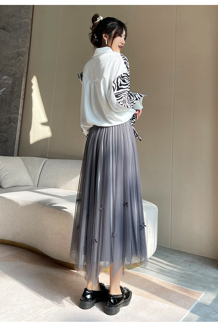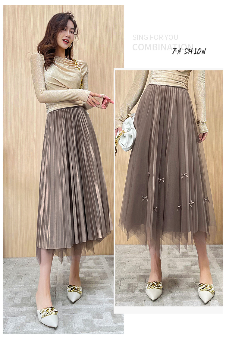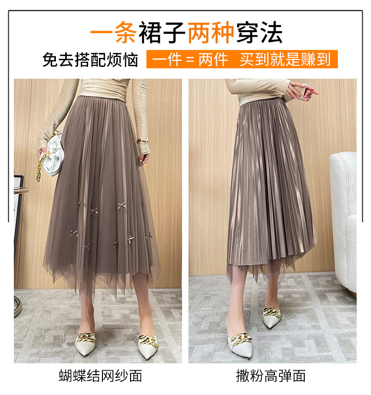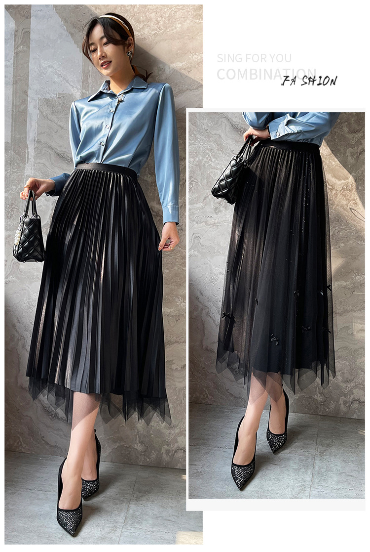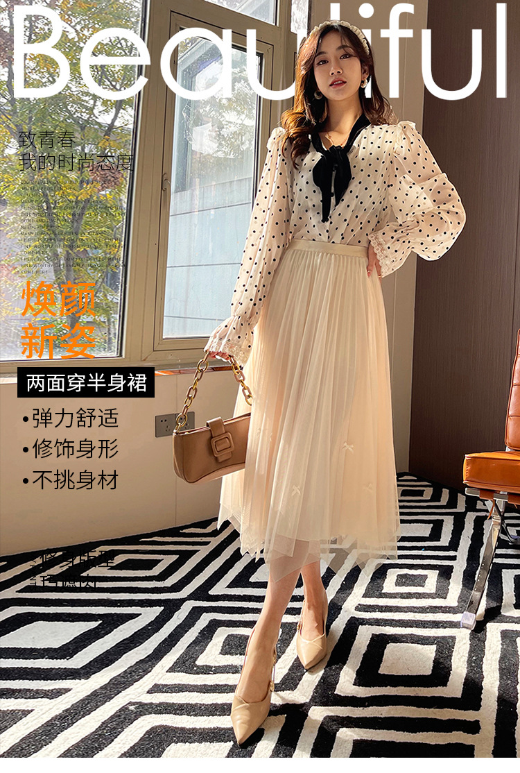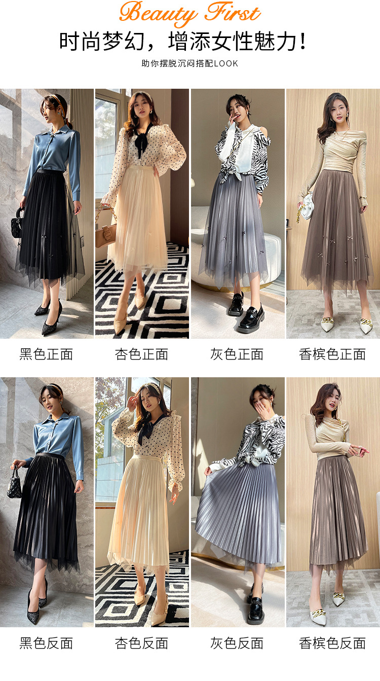 Chiếc váy này có điểm nhấn là nơ được thiết kế không đều, tạo nên vẻ đẹp mới lạ và duyên dáng. Đặc biệt, bạn có thể mặc được cả hai mặt, mỗi mặt mang đến một phong cách khác nhau để bạn thoải mái phối đồ. Chất vải lưới nhẹ nhàng kết hợp cùng kiểu dáng chữ A và các nếp xếp li, giúp tôn lên dáng vẻ thanh thoát. Sản phẩm phù hợp để mặc đi làm, đi chơi hoặc dự các buổi gặp mặt. | Tên sản phẩm: Chân Váy Đầm Nữ Thắt Nơ Bướm Dáng Chữ A Lưới Mỏng Hàng Mùa Xuân Thu Đông - Thời Trang Nữ | Mã sản phẩm: G5319 - Giá: 610.000đ | Mã nhà sản xuất: WUDAN-G02Hình ảnh sản phẩm