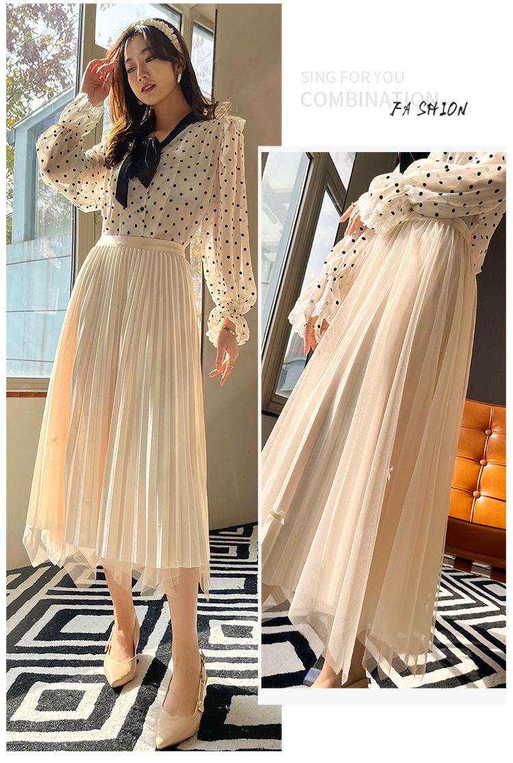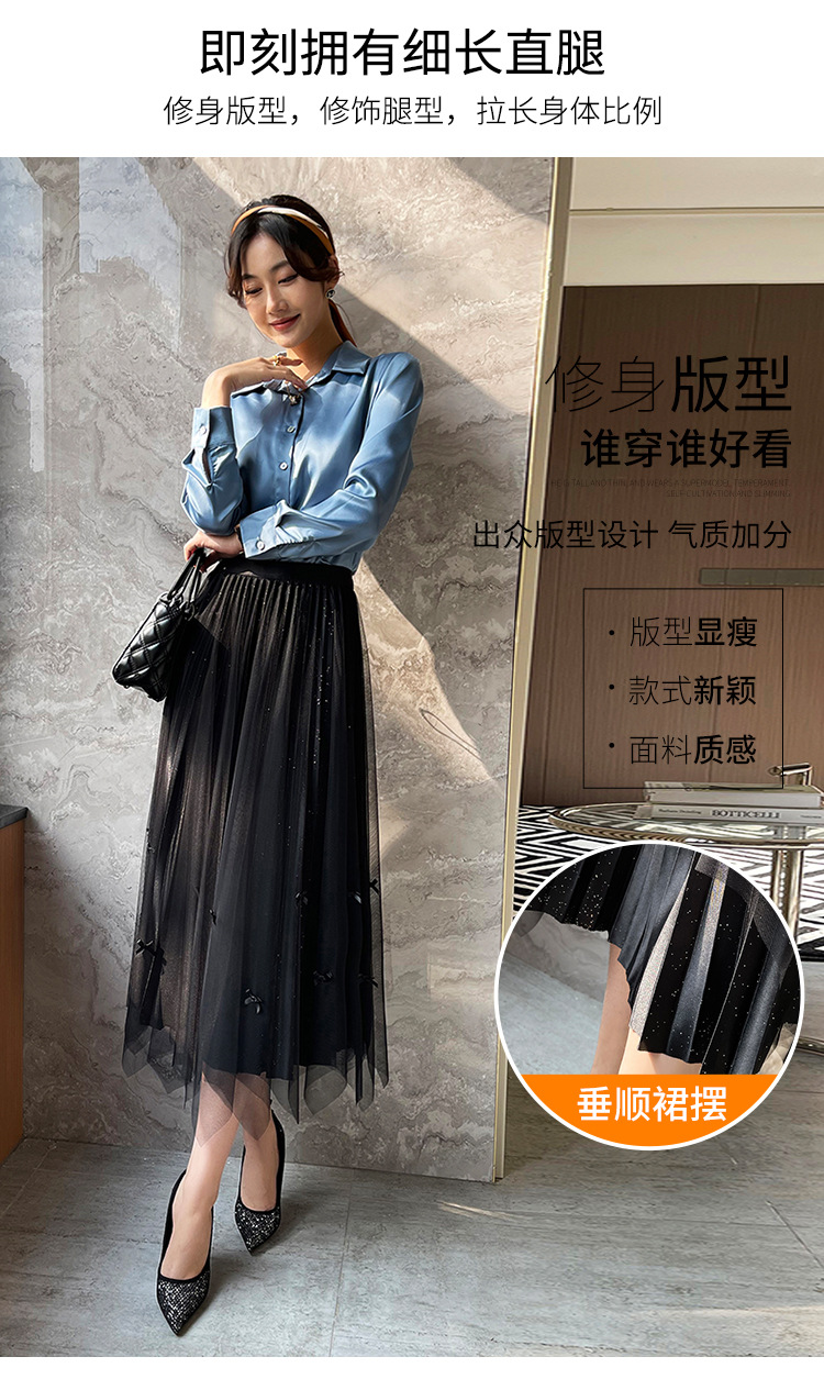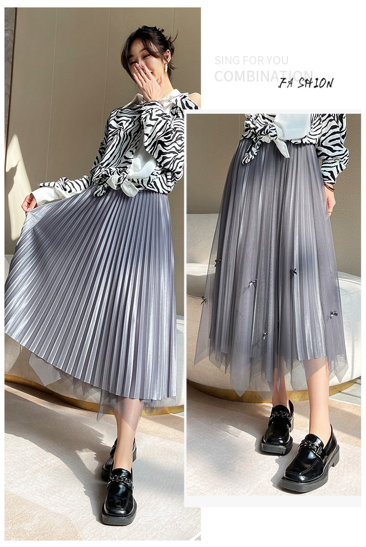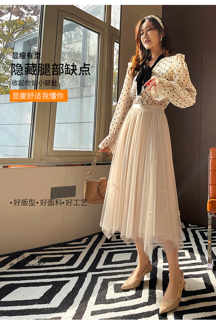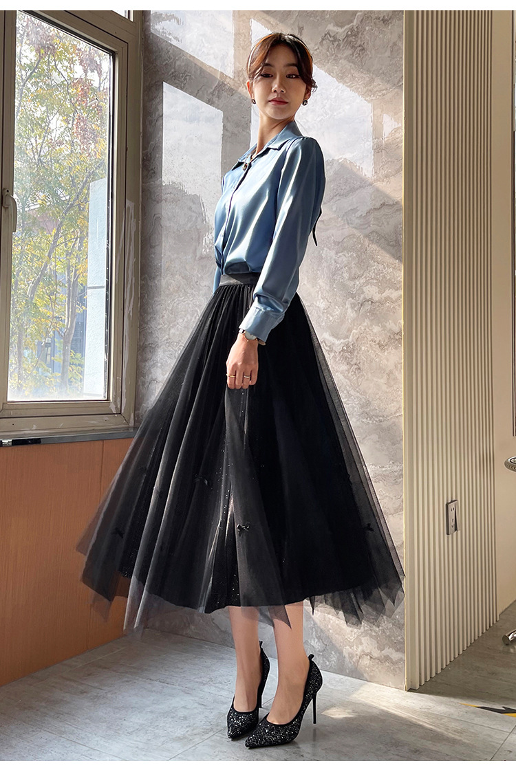 Chiếc váy này có điểm nhấn là nơ được thiết kế không đều, tạo nên vẻ đẹp mới lạ và duyên dáng. Đặc biệt, bạn có thể mặc được cả hai mặt, mỗi mặt mang đến một phong cách khác nhau để bạn thoải mái phối đồ. Chất vải lưới nhẹ nhàng kết hợp cùng kiểu dáng chữ A và các nếp xếp li, giúp tôn lên dáng vẻ thanh thoát. Sản phẩm phù hợp để mặc đi làm, đi chơi hoặc dự các buổi gặp mặt. | Tên sản phẩm: Chân Váy Đầm Nữ Thắt Nơ Bướm Dáng Chữ A Lưới Mỏng Hàng Mùa Xuân Thu Đông - Thời Trang Nữ | Mã sản phẩm: G5319 - Giá: 610.000đ | Mã nhà sản xuất: WUDAN-G02Hình ảnh sản phẩm