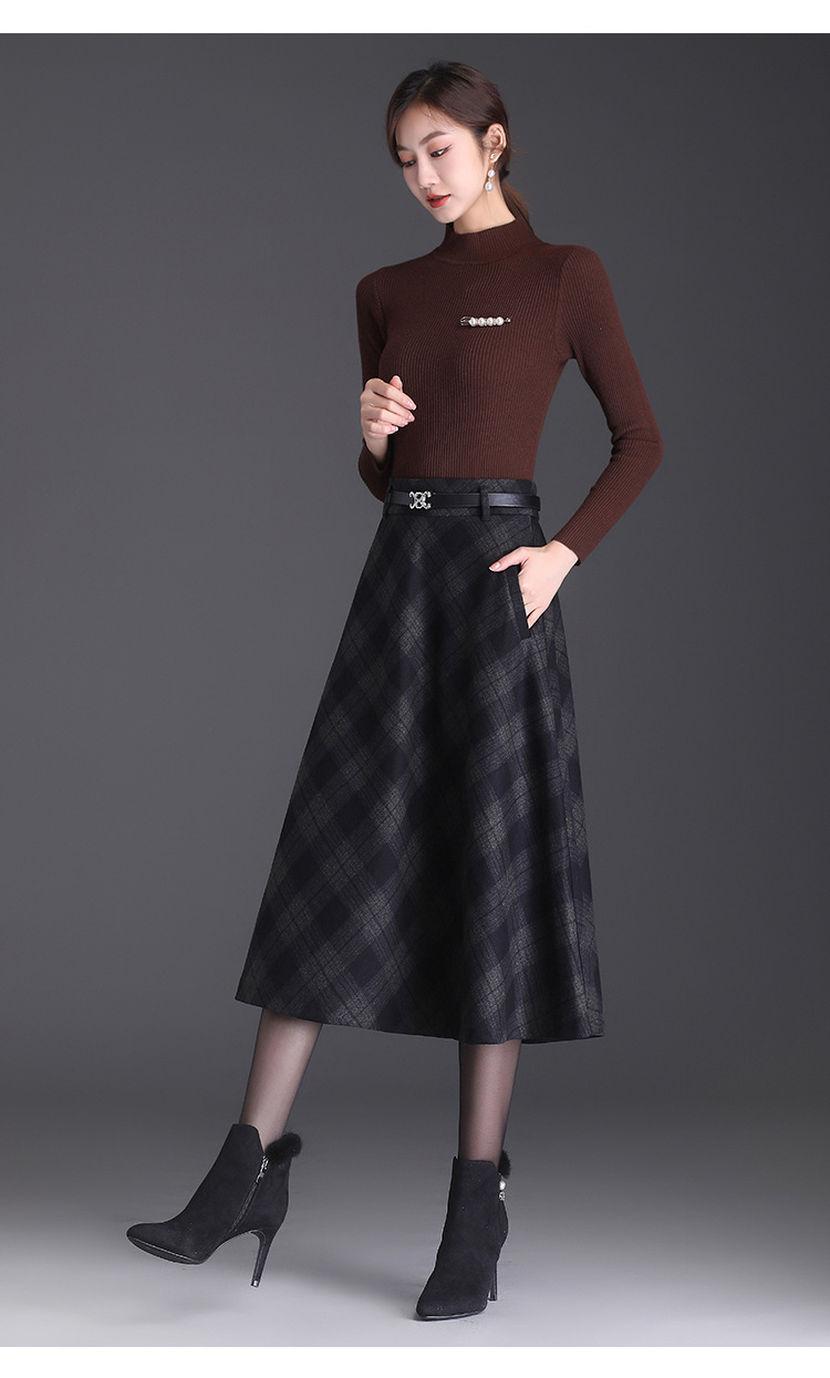 Chiếc váy dáng dài qua gối có form chữ A ôm nhẹ vòng eo, tôn dáng người mặc. Chất vải dệt kim dày dặn, ấm áp, phù hợp cho thời tiết se lạnh. Họa tiết kẻ ô vuông cổ điển mang đến vẻ đẹp nhẹ nhàng, thanh lịch. Sản phẩm dễ dàng phối cùng áo thun, áo len và giày bốt, tạo nên những bộ trang phục hàng ngày thoải mái mà vẫn giữ nét duyên dáng. | Tên sản phẩm: Chân Váy Đầm Nữ Kẻ Caro Kẻ Caro Hàng Mùa Xuân Thu Đông Phong Cách Hàn Quốc - Thời Trang Nữ | Mã sản phẩm: G5486 - Giá: 870.000đ | Mã nhà sản xuất: WUDAN-G03Hình ảnh sản phẩm