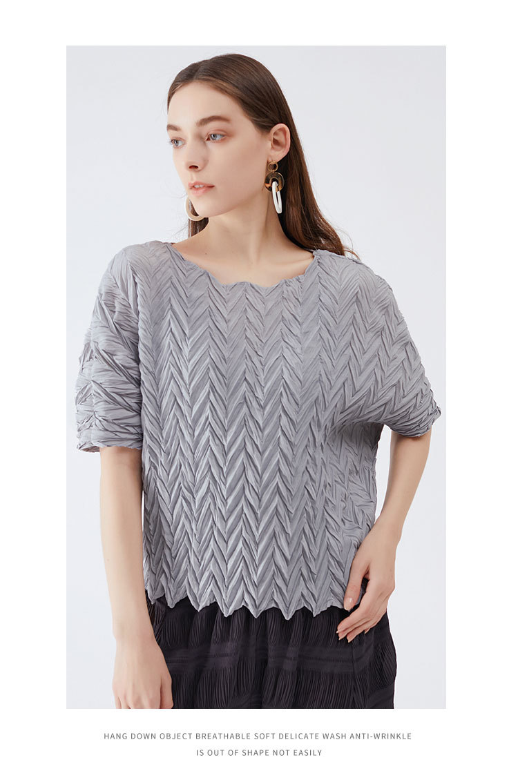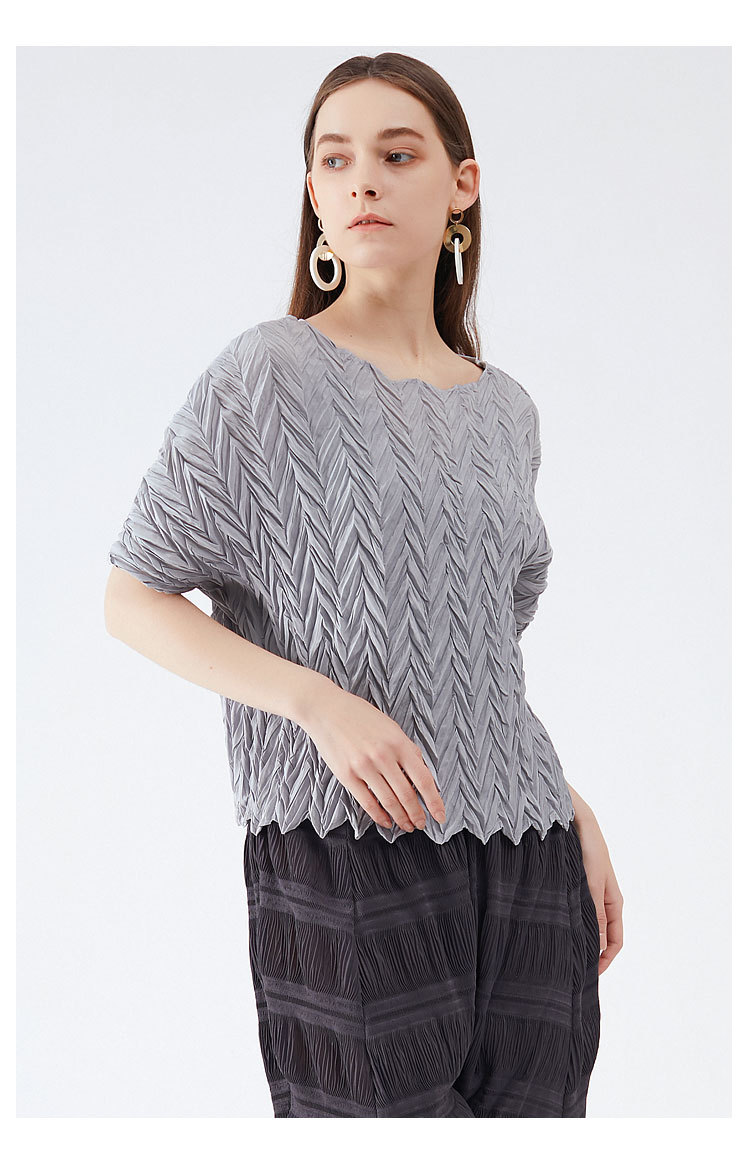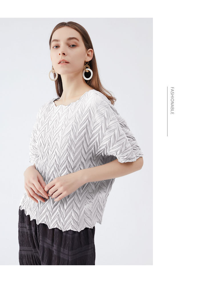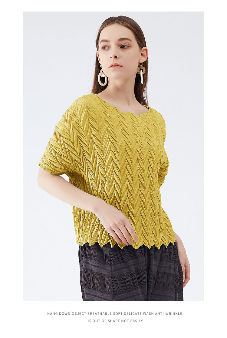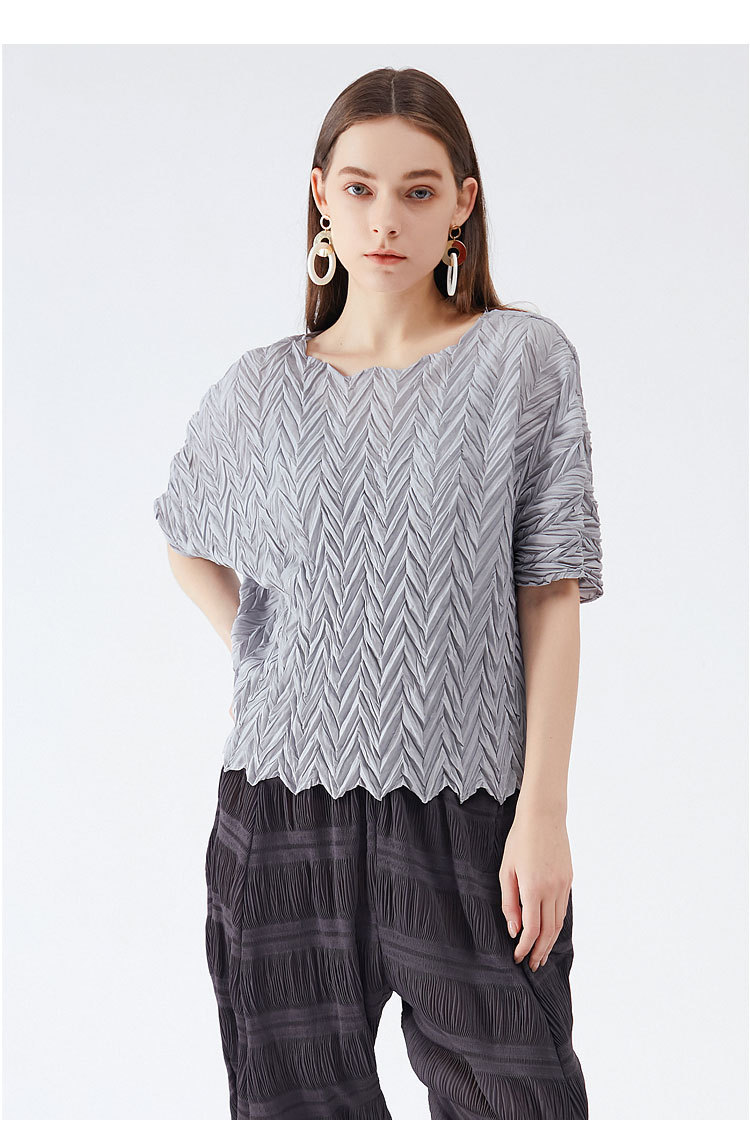 Áo thun nữ ngắn tay kiểu dáng rộng rãi, mang phong cách trẻ trung hiện đại. Điểm nhấn đặc biệt đến từ các đường vân nhún sóng mềm mại, tạo nên nét dịu dàng và thanh thoát cho người mặc. Chất vải co giãn nhẹ, thoáng mát, rất phù hợp cho những ngày hè oi bức. Bạn có thể kết hợp cùng quần jeans hoặc chân váy để tạo nên những bộ trang phục hàng ngày năng động và thoải mái. | Tên sản phẩm: Áo Thun Nữ Ngắn Tay Hàng Mùa Hè Phong Cách Hàn Quốc - Thời Trang Nữ | Mã sản phẩm: G6201 - Giá: 1.060.000đ | Mã nhà sản xuất: DODG-G03Hình ảnh sản phẩm