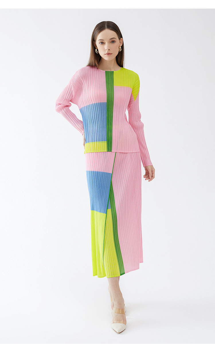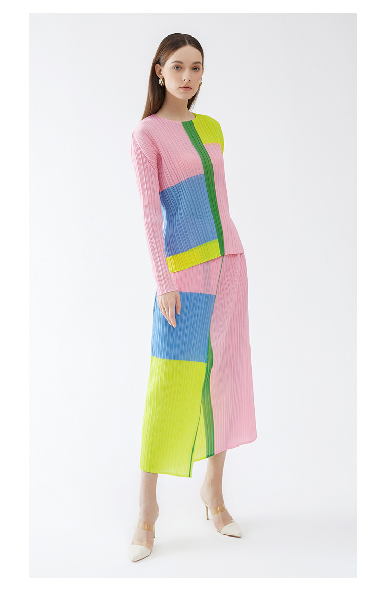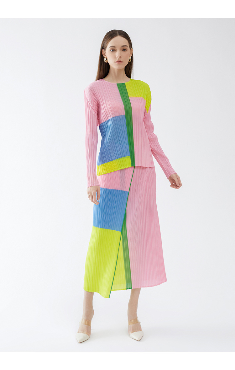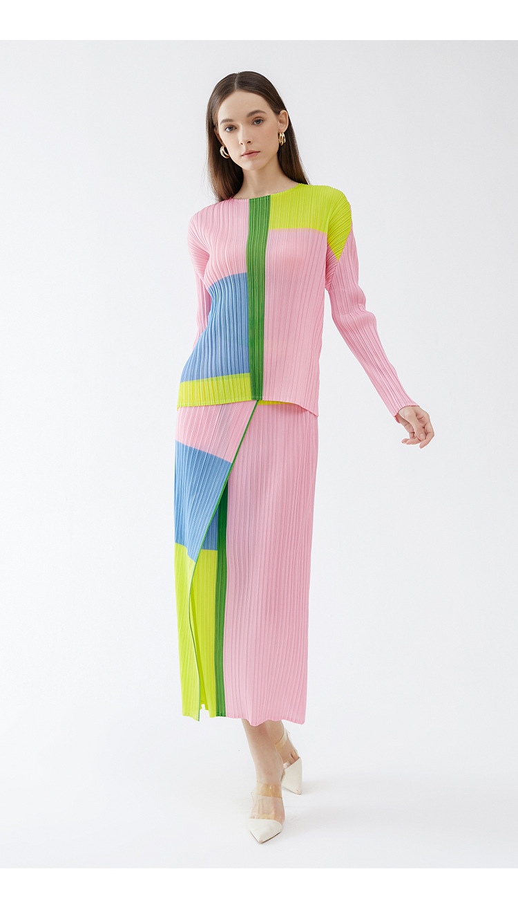 Bộ trang phục hai mảnh này gồm áo dài tay cổ tròn và chân váy xếp ly. Áo có họa tiết in nổi bật, phần l áo may cao, kết hợp cùng chân váy dáng thướt tha. Chất vải mềm mại, tạo cảm giác dễ chịu khi mặc. Bộ trang phục phù hợp cho những dịp đi chơi, gặp gỡ bạn bè. Có thể phối cùng giày thể thao hoặc giày bệt để tạo nên vẻ ngoại năng động, trẻ trung. | Tên sản phẩm: Đồ Bộ Nữ Dài Tay Họa Tiết Hoa Hàng Mùa Xuân Thu Đông - Thời Trang Nữ | Mã sản phẩm: G6211 - Giá: 1.070.000đ | Mã nhà sản xuất: DODG-G03Hình ảnh sản phẩm
