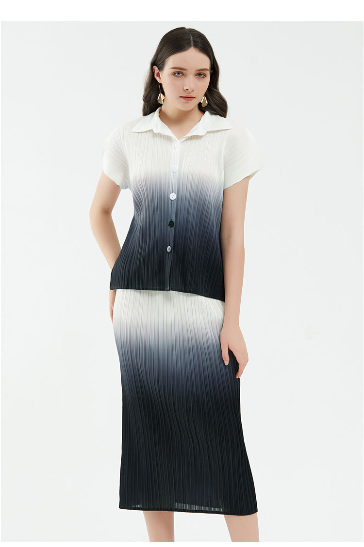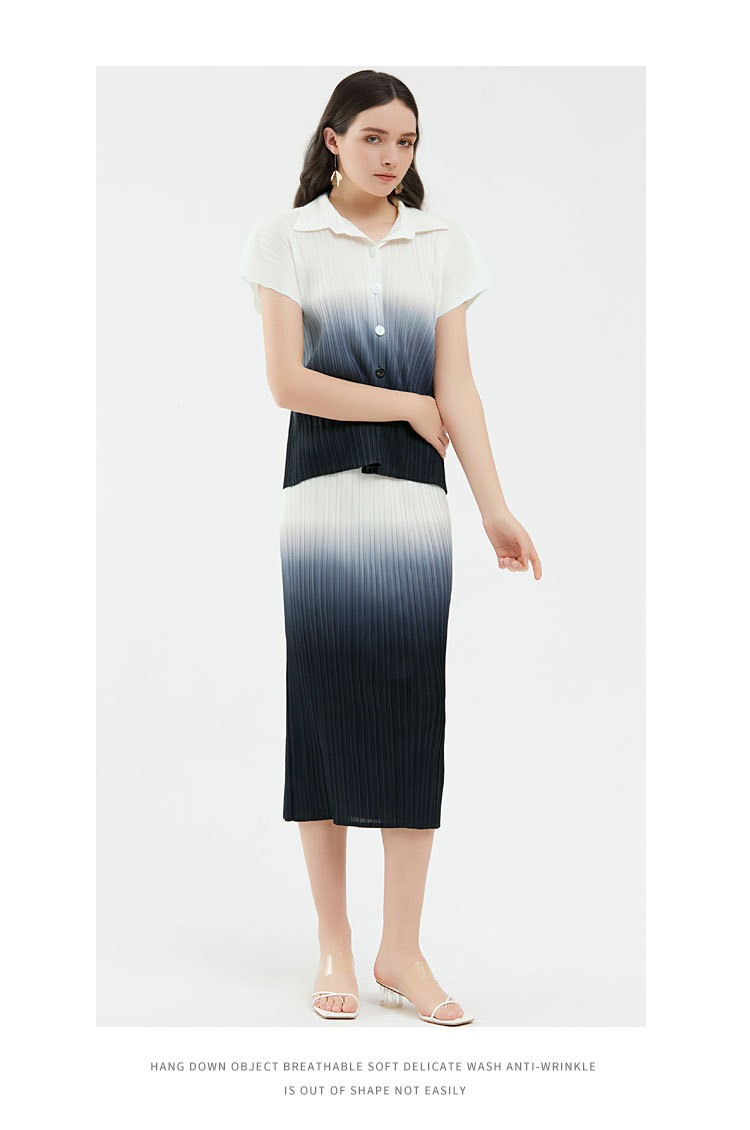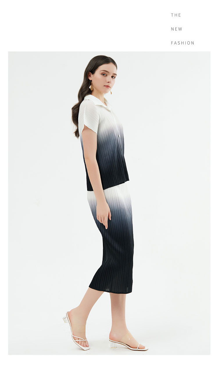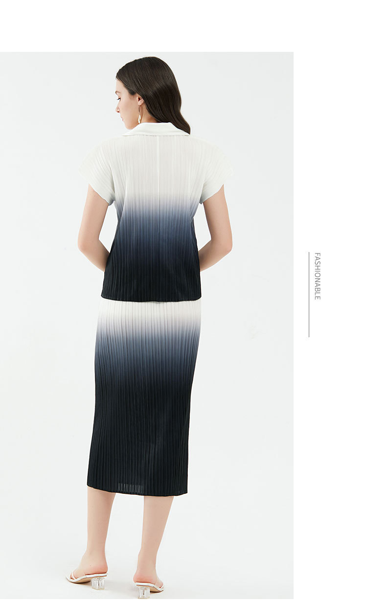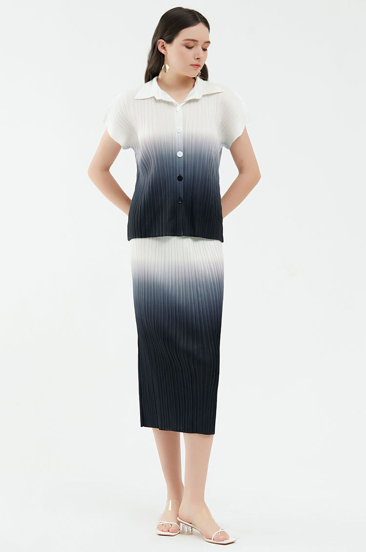 Bộ trang phục hai mảnh này gồm áo và chân váy, mang phong cách nhẹ nhàng phù hợp cho mùa hè. Áo có thiết kế độc đáo với hiệu ứng chuyển màu nhẹ nhàng từ trên xuống dưới. Chân váy dáng chữ A ôm vừa vặn ở eo và xòe nhẹ ở gấu, tôn lên vẻ duyên dáng. Chất vải mềm mại, thoáng mát giúp người mặc dễ chịu trong ngày nóng. Có thể mặc đi làm, dạo phố hay dự các buổi gặp mặt thông thường. Phối cùng dép mỏng hoặc giày thể thao đều phù hợp. | Tên sản phẩm: Đồ Bộ Nữ Cả Bộ 2 Món Hàng Mùa Hè - Thời Trang Nữ | Mã sản phẩm: G6212 - Giá: 1.250.000đ | Mã nhà sản xuất: DODG-G04Hình ảnh sản phẩm