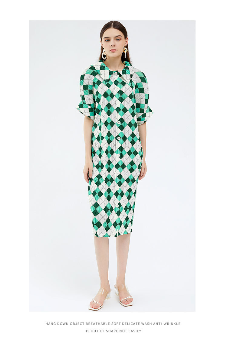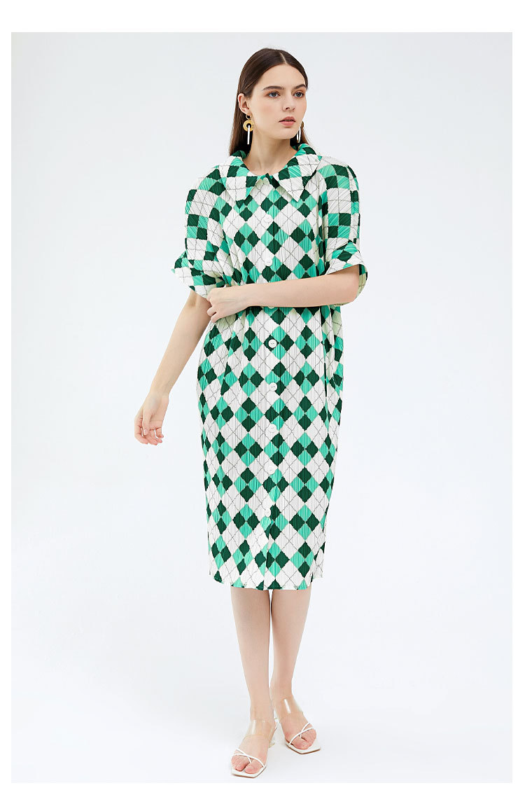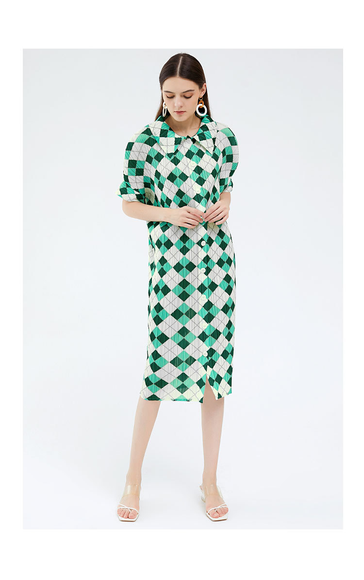 Chiếc váy dài mang phong cách trẻ trung với cổ bẻ và những đường nhún tinh tế. Họa tiết kẻ ô in nổi bật trên nền vải mềm mại, tạo điểm nhấn ấn tượng. Kiểu dáng dễ mặc, phù hợp cho những ngày hè. Có thể phối cùng giày bệt hoặc sandal để tạo vẻ ngoại năng động. Sản phẩm dễ dàng giặt bằng tay hoặc máy ở chế độ nhẹ, giúp giữ form váy bền đẹp theo thời gian. | Tên sản phẩm: Váy Đầm Liền Thân Dáng Dài Nữ Kẻ Caro Họa Tiết Hoa Kín Cổ Hàng Mùa Hè Phong Cách Hàn Quốc - Thời Trang Nữ | Mã sản phẩm: G6221 - Giá: 1.430.000đ | Mã nhà sản xuất: DODG-G04Hình ảnh sản phẩm