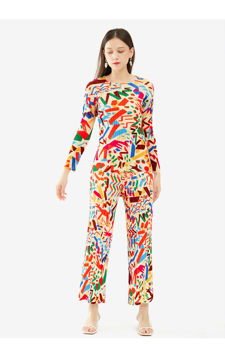 Bộ trang phục nữ tính này gồm áo dài tay và quần ống thẳng, được làm từ chất liệu co giãn nhẹ nhàng. Họa tiết in trên áo mang đến vẻ đẹp trẻ trung, năng động. Kiểu dáng đơn giản nhưng tinh tế, phù hợp cho những ngày xuân ấm áp. Bạn có thể mặc nguyên bộ để đi làm hoặc phối cùng phụ kiện khác khi dạo phố. Thiết kế tiện lợi giúp bạn dễ dàng vận động mà vẫn giữ được sự thoải mái suốt ngày dài. | Tên sản phẩm: Đồ Bộ Nữ Dài Tay Cả Bộ 2 Món Họa Tiết Hoa Hàng Mùa Xuân Thu Đông - Thời Trang Nữ | Mã sản phẩm: G6356 - Giá: 1.090.000đ | Mã nhà sản xuất: DODG-G03Hình ảnh sản phẩm
