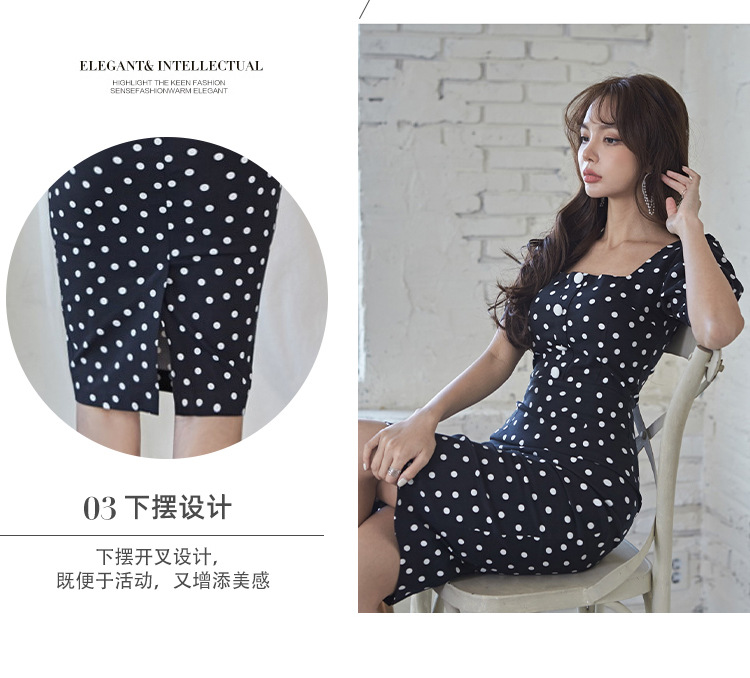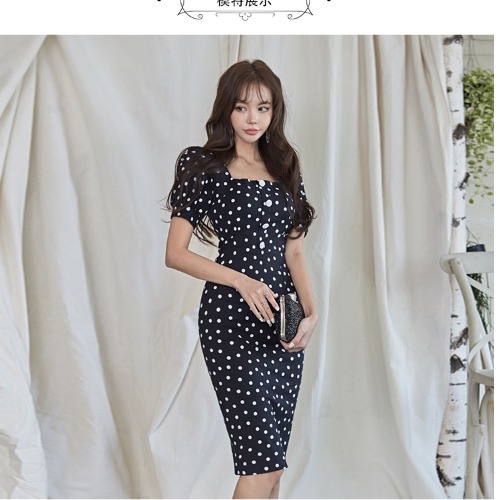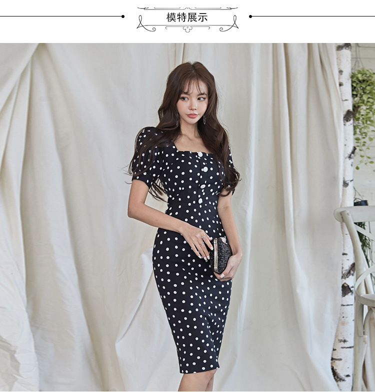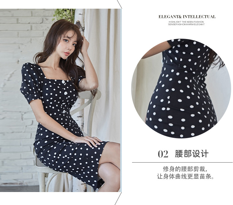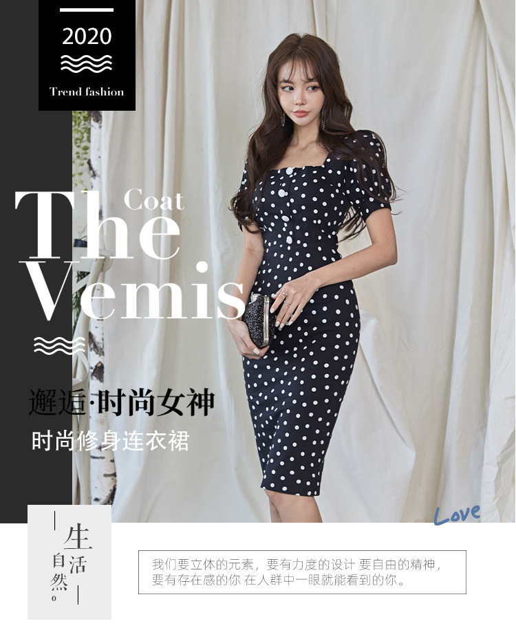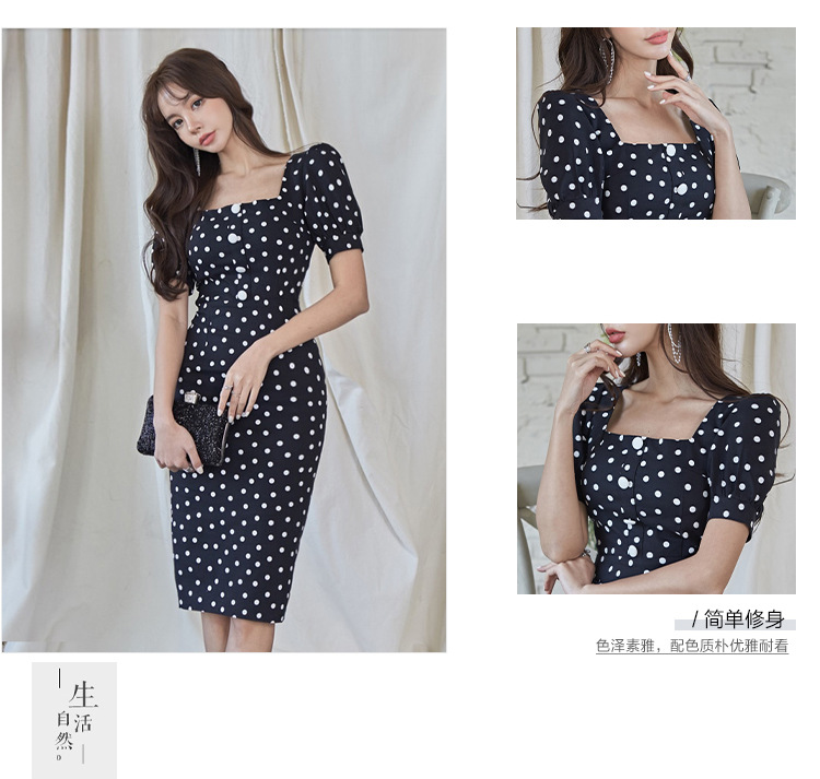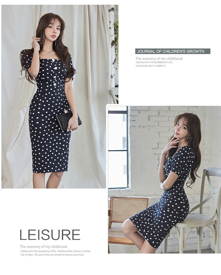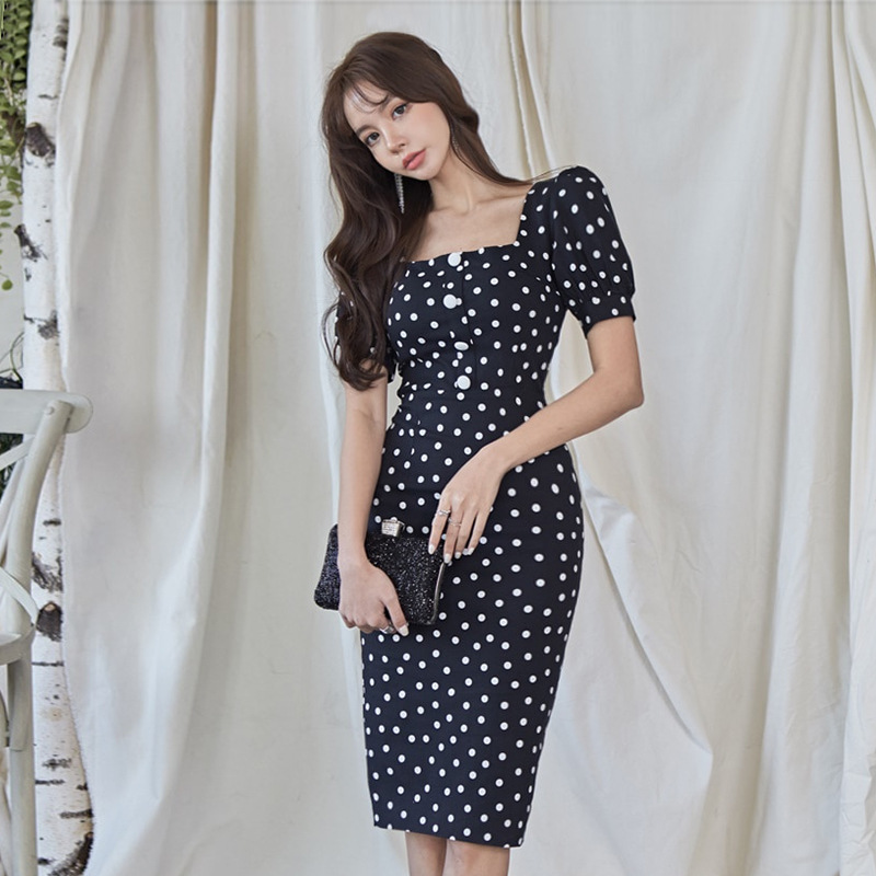 Chiếc đầm chì với điểm nhấn ở cổ vuông và phần tay bồng tinh tế. Họa tiết chấm bi nhẹ nhàng kết hợp cùng thiết kế ôm eo tạo nên một tổng thể thanh thoát và nhẹ nhàng. Kiểu dáng này phù hợp cho những dịp đi chơi, gặp gỡ bạn bè. Bạn chỉ cần phối cùng một đôi giày đơn giản là đã có một set đồ hoàn chỉnh. | Tên sản phẩm: Váy Đầm Liền Thân Nữ Dáng Ôm Tay Phồng Hàng Mùa Hè Phong Cách Hàn Quốc - Thời Trang Nữ | Mã sản phẩm: G8697 - Giá: 750.000đ | Mã nhà sản xuất: ZHOUT-G02Hình ảnh sản phẩm