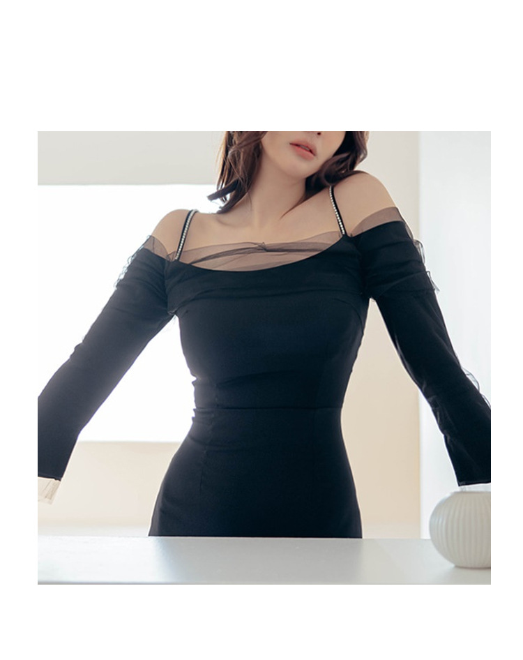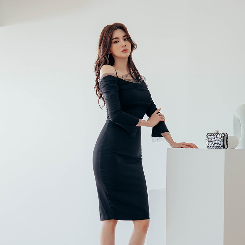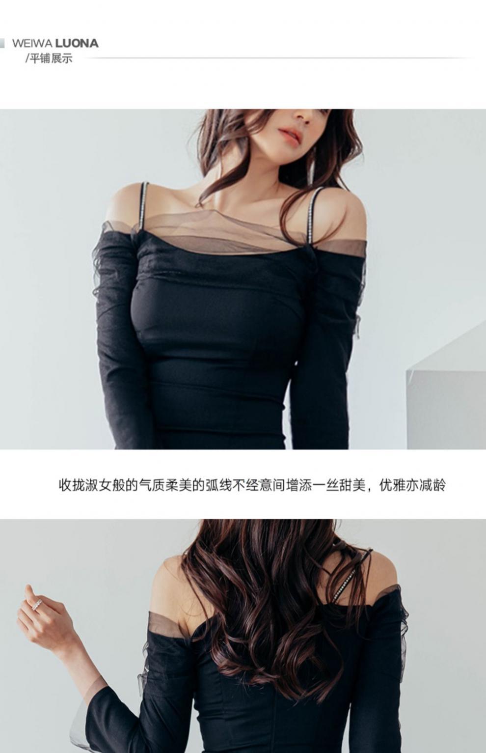 Chiếc đầm dáng dài với thiết kế cổ khoét ngang v tôn dáng. Chất vải mềm mại kết hợp điểm nhấn là phần voan mỏng tạo nên vẻ thanh thoát. Kiểu dáng ôm vừa phải giúp tôn lên những đường nét cơ thể. Sản phẩm phù hợp cho nhiều dịp đi chơi, dạo phố. Có thể mặc một mình hoặc kết hợp cùng áo khoác mỏng tùy thích. | Tên sản phẩm: Áo Hai Dây Nữ Dáng Ôm Lưới Mỏng Hai Dây Hở Vai Hàng Mùa Xuân Thu Đông - Thời Trang Nữ | Mã sản phẩm: G8706 - Giá: 780.000đ | Mã nhà sản xuất: ZHOUT-G02Hình ảnh sản phẩm