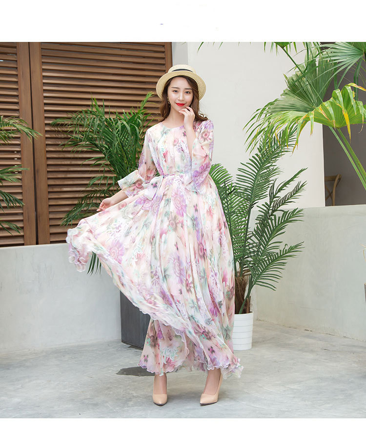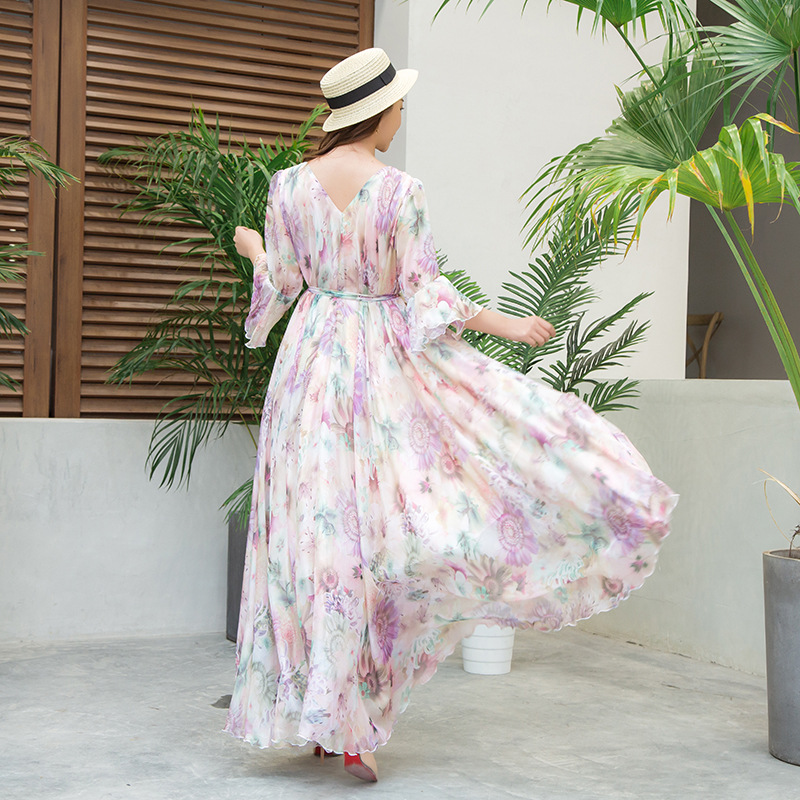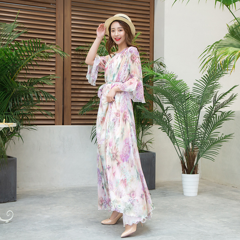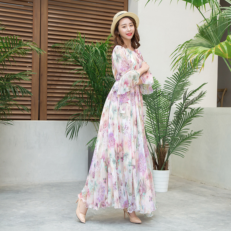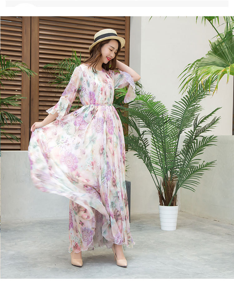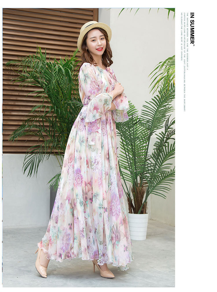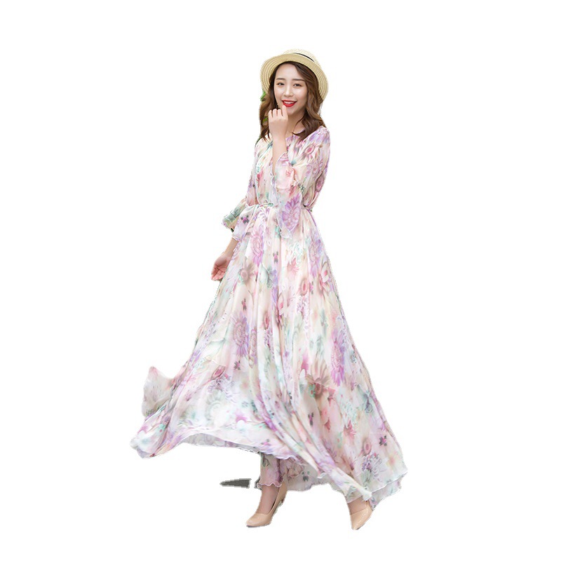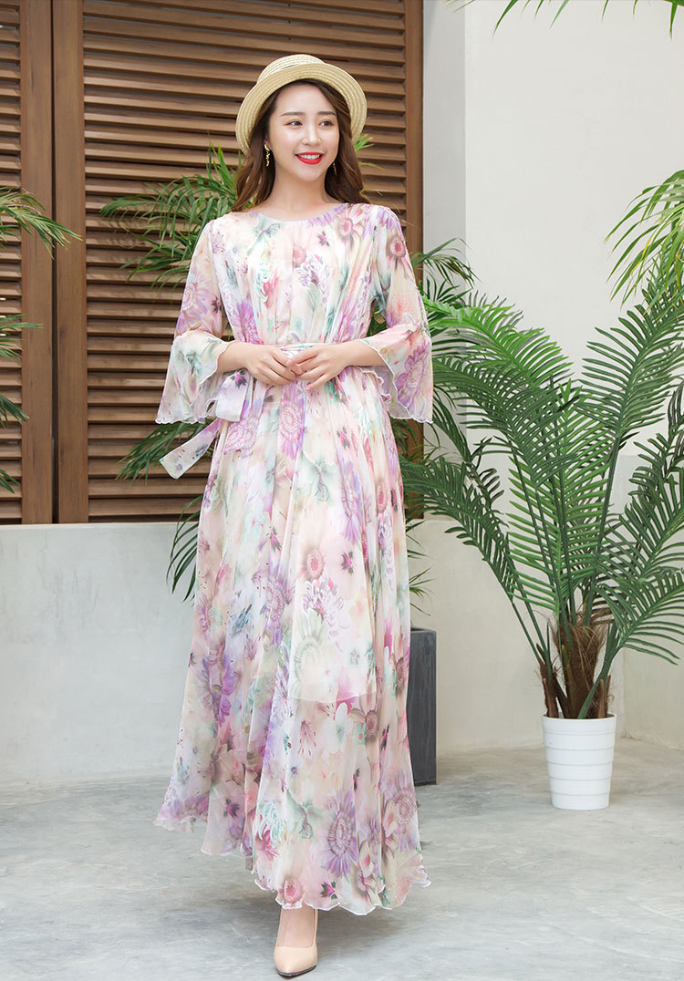 Chiếc đầm dành cho kỳ nghỉ xuân hè này có điểm nhấn là phần tay loe phồng duyên dáng. Chất vải mỏng nhẹ tạo cảm giác thoải mái, in họa tiết hoa nổi bật. Thiết kế eo cao kết hợp với phần chân váy xòe rộng, giúp tôn dáng người mặc một cách tự nhiên. Sản phẩm phù hợp để đi chơi, dạo phố. Có thể giặt bằng tay hoặc máy với chế độ nhẹ để giữ form váy đẹp lâu. | Tên sản phẩm: Váy Đầm Liền Thân Dáng Dài Nữ Chất Liệu Vải Voan Họa Tiết Hoa Hàng Mùa Xuân Thu Đông - Thời Trang Nữ | Mã sản phẩm: G9251 - Giá: 830.000đ | Mã nhà sản xuất: TARYUN-G03Hình ảnh sản phẩm