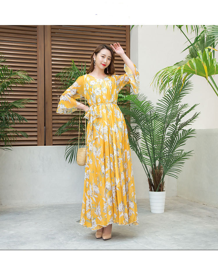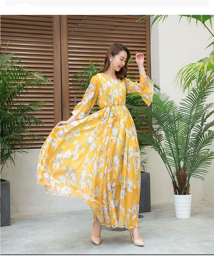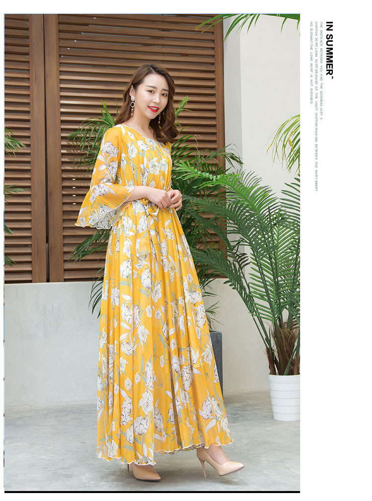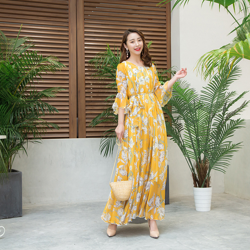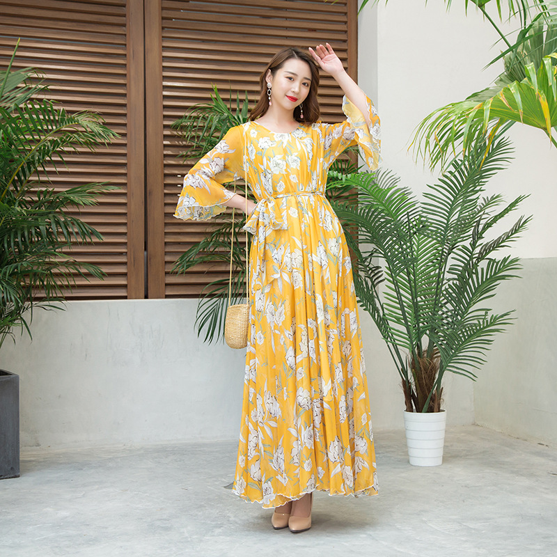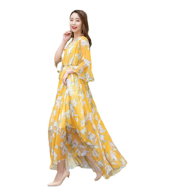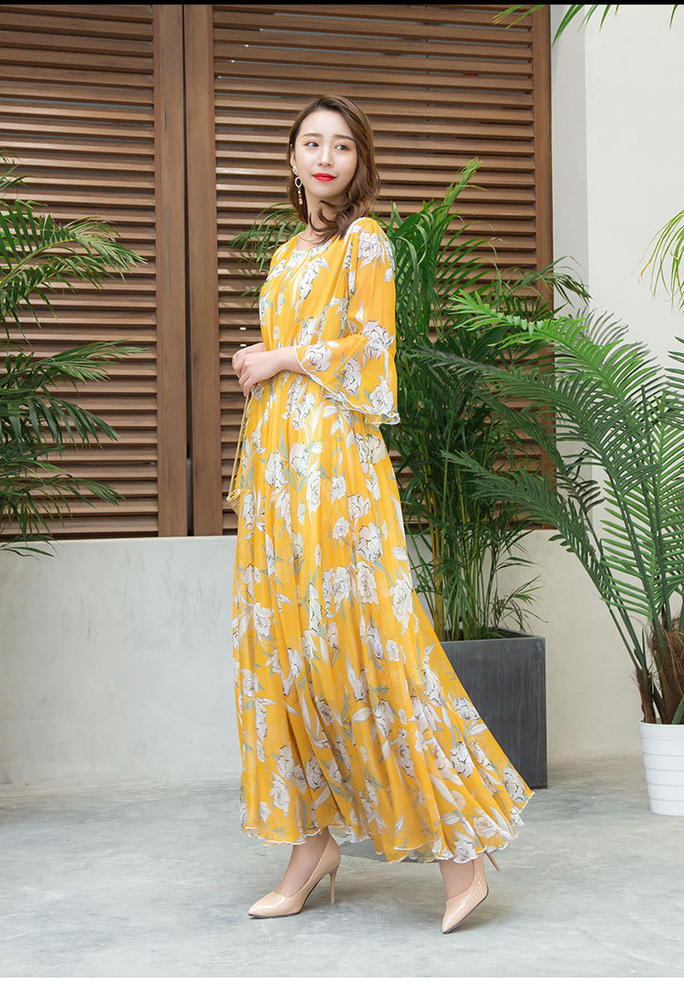 Chiếc đầm dành cho kỳ nghỉ xuân hè, với chất vải voan mỏng nhẹ in họa tiết phong cách dân gian. Tay áo thiết kế loe rộng như chiếc kèn, duyên dáng và thoải mái. Đầm có phần eo được nâng cao, tôn dáng người mặc. Váy xòe rộng và dài thướt tha, tạo cảm giác bay bổng, phù hợp cho những buổi dạo phố hay đi chơi. Dễ dàng phối cùng dép mỏng và mũ rộng vành. | Tên sản phẩm: Váy Đầm Liền Thân Dáng Dài Nữ Chất Liệu Vải Voan Họa Tiết Hoa Hàng Mùa Xuân Thu Đông - Thời Trang Nữ | Mã sản phẩm: G9269 - Giá: 830.000đ | Mã nhà sản xuất: TARYUN-G03Hình ảnh sản phẩm