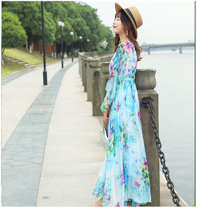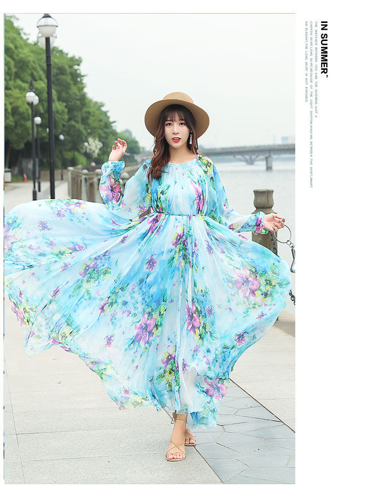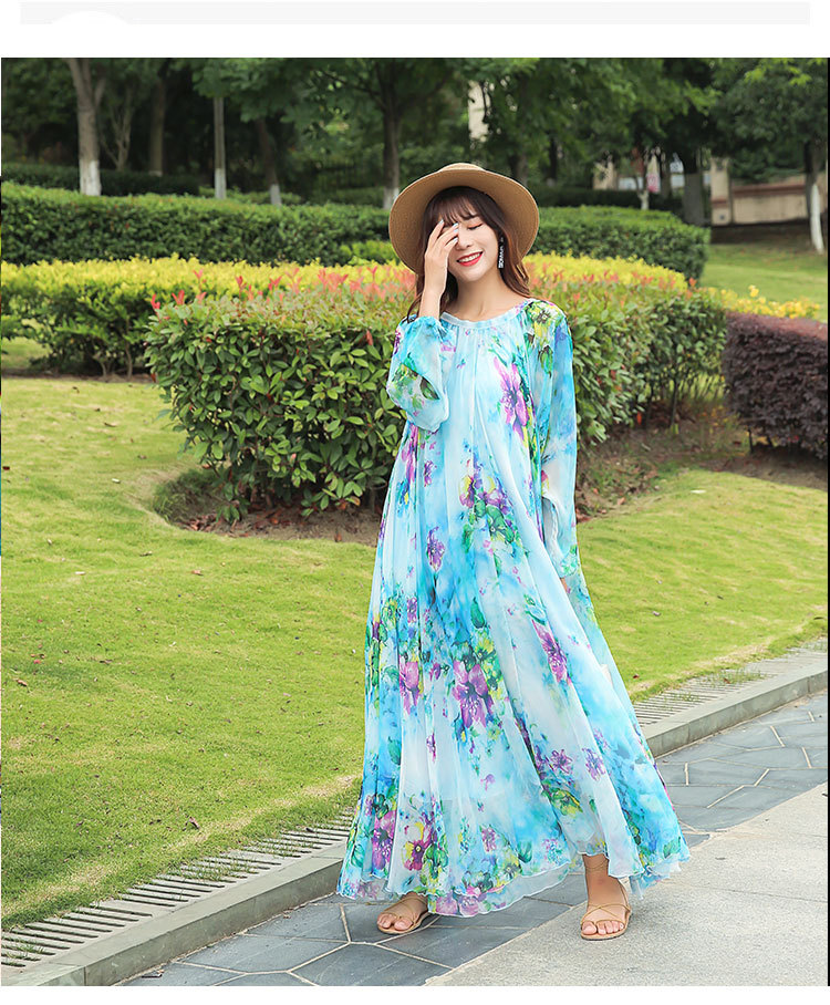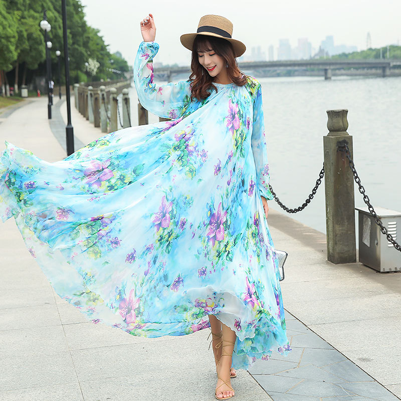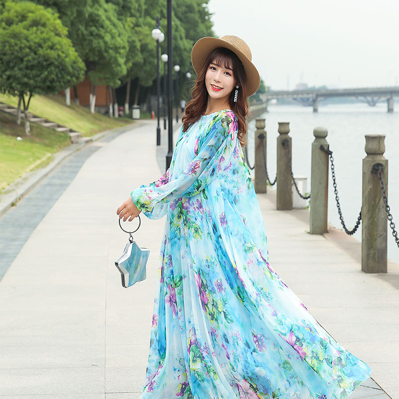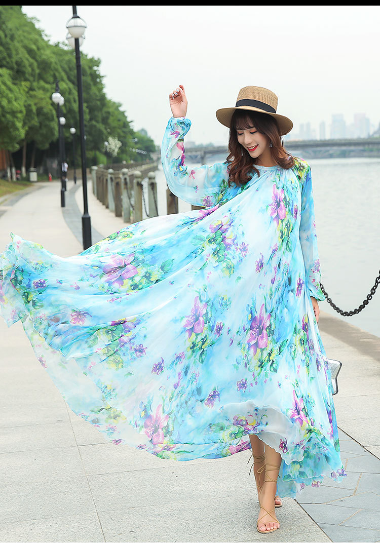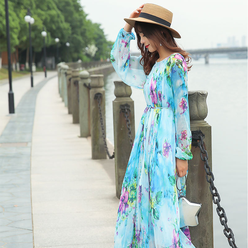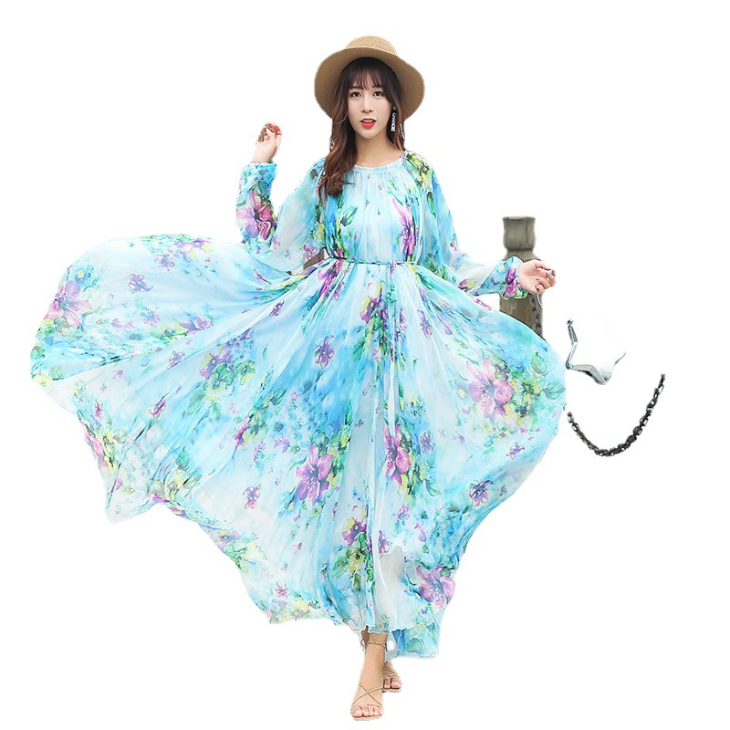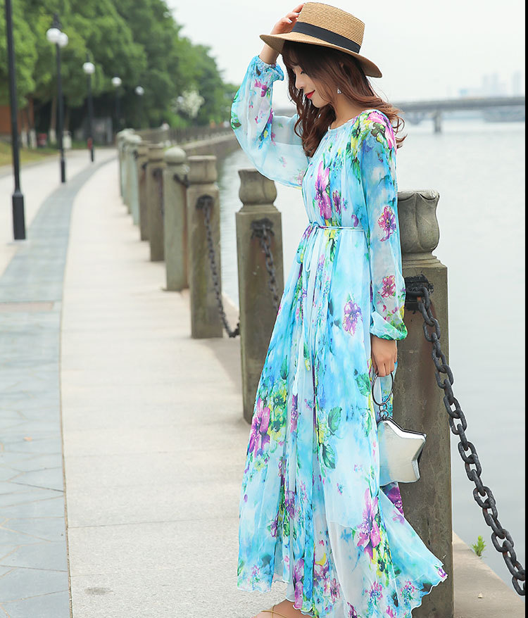 Chiếc váy dài tay cổ tròn này được làm từ chất liệu vải mỏng nhẹ có đường nhăn mịn, giúp tôn lên những đường nét cơ thể một cách tinh tế. Kiểu dáng theo phong cách du lịch thoải mái, mang đến cảm giác thư thái như đang nghỉ dưỡng. Bạn có thể mặc nó một mình hoặc kết hợp cùng giày sandal và mũ rộng vành để tạo nên một vẻ ngoại hoàn chỉnh, phù hợp cho nhiều dịp khác nhau. | Tên sản phẩm: Váy Đầm Liền Thân Nữ Dài Tay Hàng Mùa Xuân Thu Đông - Thời Trang Nữ | Mã sản phẩm: G9328 - Giá: 1.060.000đ | Mã nhà sản xuất: TARYUN-G03Hình ảnh sản phẩm