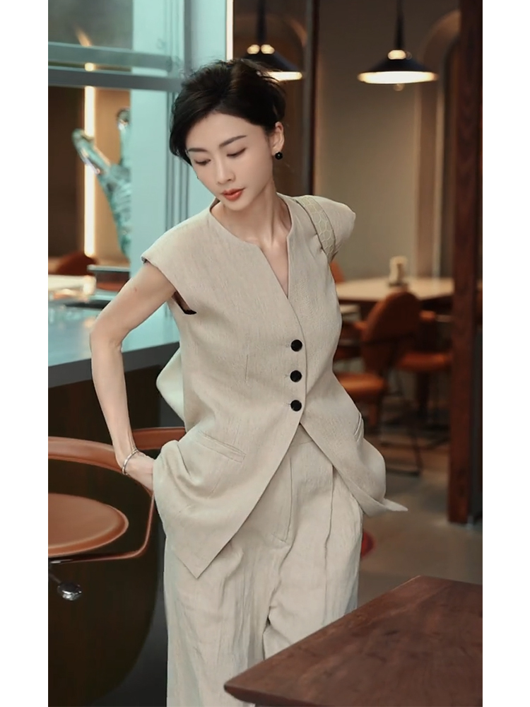 Bộ trang phục hai mảnh này gồm áo không tay và quần ống rộng, tạo nên một tổng thể chỉn chu và lịch sự. Kiểu dáng mảnh m giúp tôn lên vẻ ngoại gọn gàng, năng động. Chất vải mềm mại, thoáng mát, phù hợp cho môi trường làm việc hoặc những dịp cần sự gọn gàng. Bạn có thể phối cùng giày cao gót hoặc giày đế bằng để hoàn thiện phong cách. | Tên sản phẩm: Áo Vest Nữ Vest Cả Bộ 2 Món Đồ Công Sở - Thời Trang Nữ | Mã sản phẩm: H3040 - Giá: 3.680.000đ | Mã nhà sản xuất: SWREF-G06Hình ảnh sản phẩm